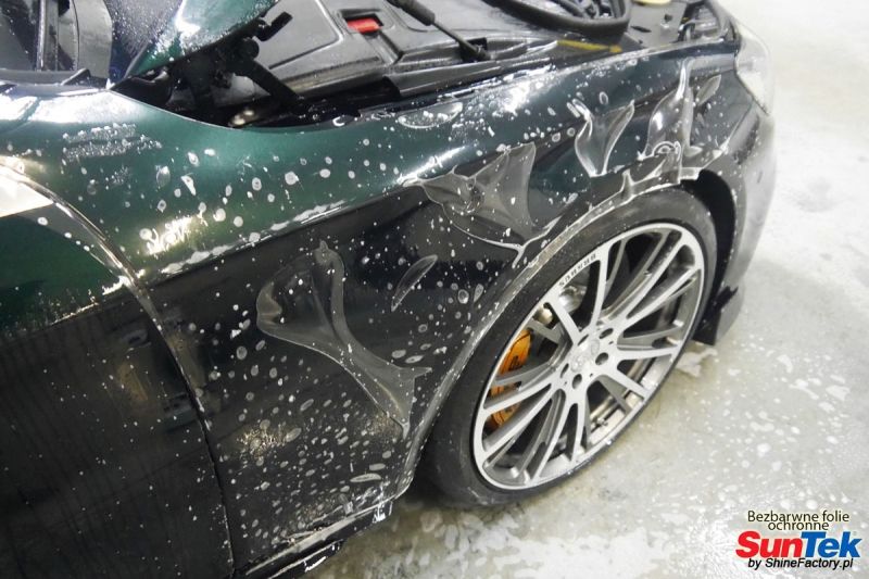 Oklejony został praktycznie każdy centymetr auta w celu ochrony przed wszelkimi uszkodzeniami jak np. odpryski od kamieni, piaskowanie od żwiru drogowego, mocniejszymi rysami czy nawet drobnymi obcierkami parkingowymi. Dokładnie oklejone zostały: