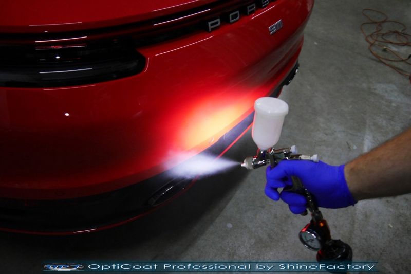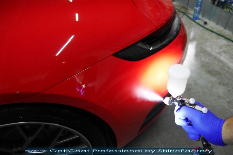 Oczywiście prace rozpoczęliśmy od dokładnego oczyszczenia całego nadwozia z naleciałości. Przeprowadziliśmy korektę aby usunąć delikatne posalonowe niedoskonałości. Następnie przystąpiliśmy do aplikacji bezbarwnych folii ochronnych na najbardziej narażone na mocne uszkodzenia el. auta, oczywiście zdecydowaliśmy się jak zawsze wybrać produkt bezkonkurencyjny i nowoczesny na rynku, czyli folie regeneracyjne SunTek Ultra PPF. Po aplikacji folii przeszliśmy do zabezpieczania wszelkich el. auta powłokami, zaaplikowaliśmy w natryskowy sposób grubą warstwę powłoki 9H+ Optimum OptiCoat Professional potwierdzoną testami TUV, pokrywając ją dla maksymalnego efektu wizualnego powłoką GlossCoat, która na końcu została utwardzona w odpowiedniej temp. lampami IR. Oczywiście zajęliśmy się, także zabezpieczeniem pakietem powłok wszelkich innych elementów jak szyby (Gtechniq G1), felgi (DLUX), lampy czy elementy nielakierowane . Nie pominęliśmy zajęcia się wnętrzem aby zabezpieczyć je w każdym detalu różnymi kosmetykami skupiając się na impregnacji delikatnych skór. Po kilkudziesięciu godzinach pracy Porsche nabrało perfekcyjnego wyglądu, połysku oraz co najważniejsze najmocniejszej praktycznie pancernej ochrony na lata. Zapraszamy do szerokiej fotorelacji!
