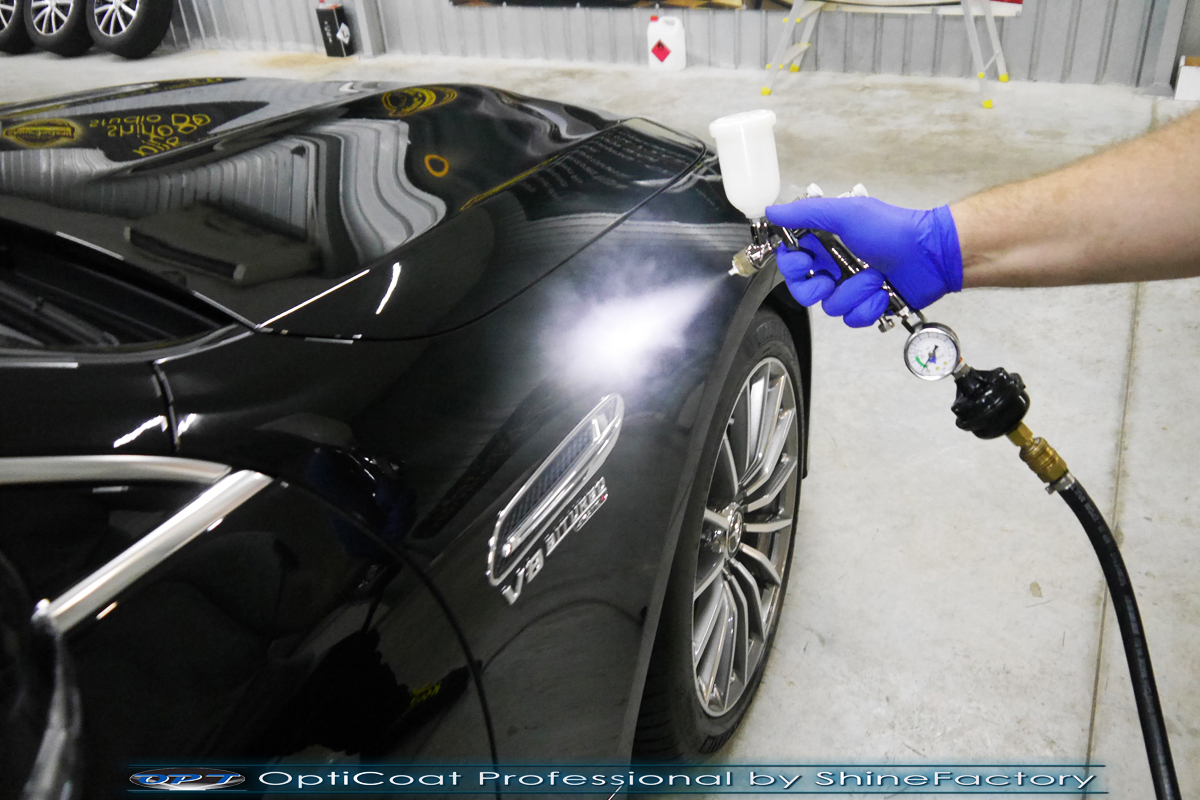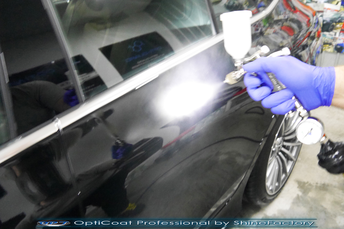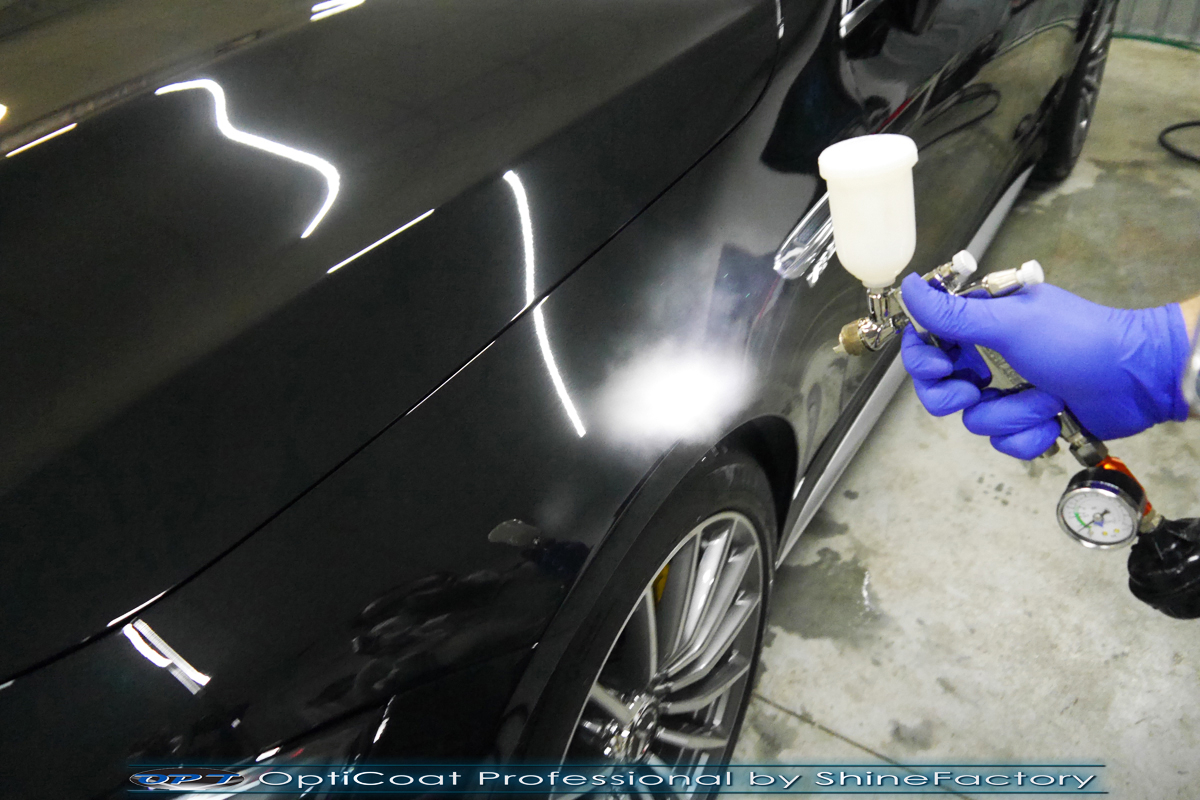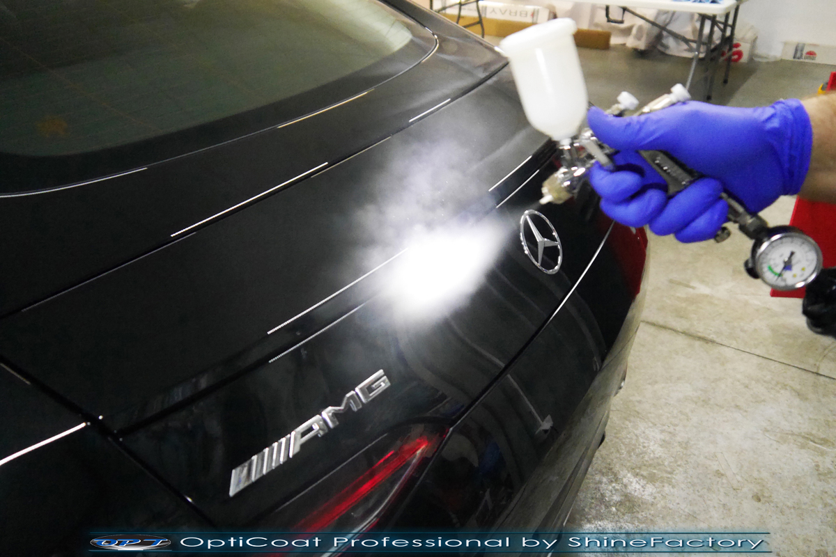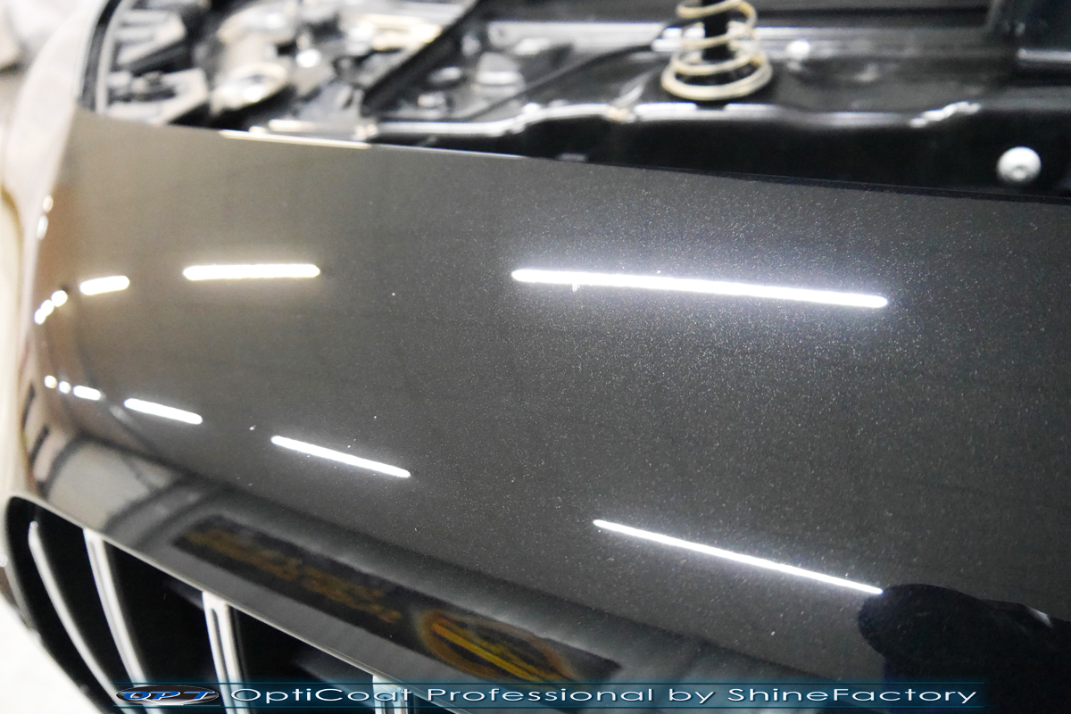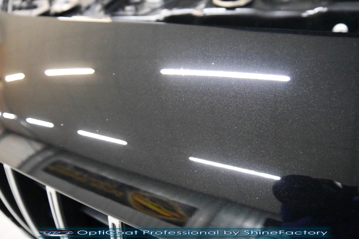 Oczywiście prace rozpoczęliśmy od dokładnego oczyszczenia całego nadwozia z naleciałości. Przeprowadziliśmy korektę aby usunąć delikatne posalonowe niedoskonałości. Następnie przystąpiliśmy do aplikacji bezbarwnych folii ochronnych na najbardziej narażone na mocne uszkodzenia el. auta, oczywiście zdecydowaliśmy się jak zawsze wybrać produkt bezkonkurencyjny i nowoczesny na rynku, czyli folie regeneracyjne SunTek Ultra PPF. Po aplikacji folii przeszliśmy do zabezpieczania wszelkich el. auta powłokami, zaaplikowaliśmy w natryskowy sposób grubą warstwę powłoki 9H+ Optimum OptiCoat Professional potwierdzoną testami TUV, pokrywając ją dla maksymalnego efektu wizualnego powłoką GlossCoat, która na końcu została utwardzona w odpowiedniej temp. lampami IR. Oczywiście zajęliśmy się, także zabezpieczeniem pakietem powłok wszelkich innych elementów jak szyby (Gtechniq G1), felgi (DLUX), lampy czy elementy nielakierowane. Po kilkudziesięciu godzinach pracy Mercedes nabrał perfekcyjnego wyglądu, połysku oraz co najważniejsze najmocniejszej praktycznie pancernej ochrony na lata. Zapraszamy do szerokiej fotorelacji!
