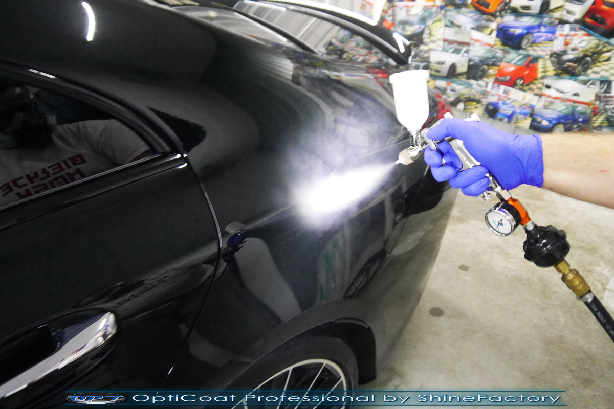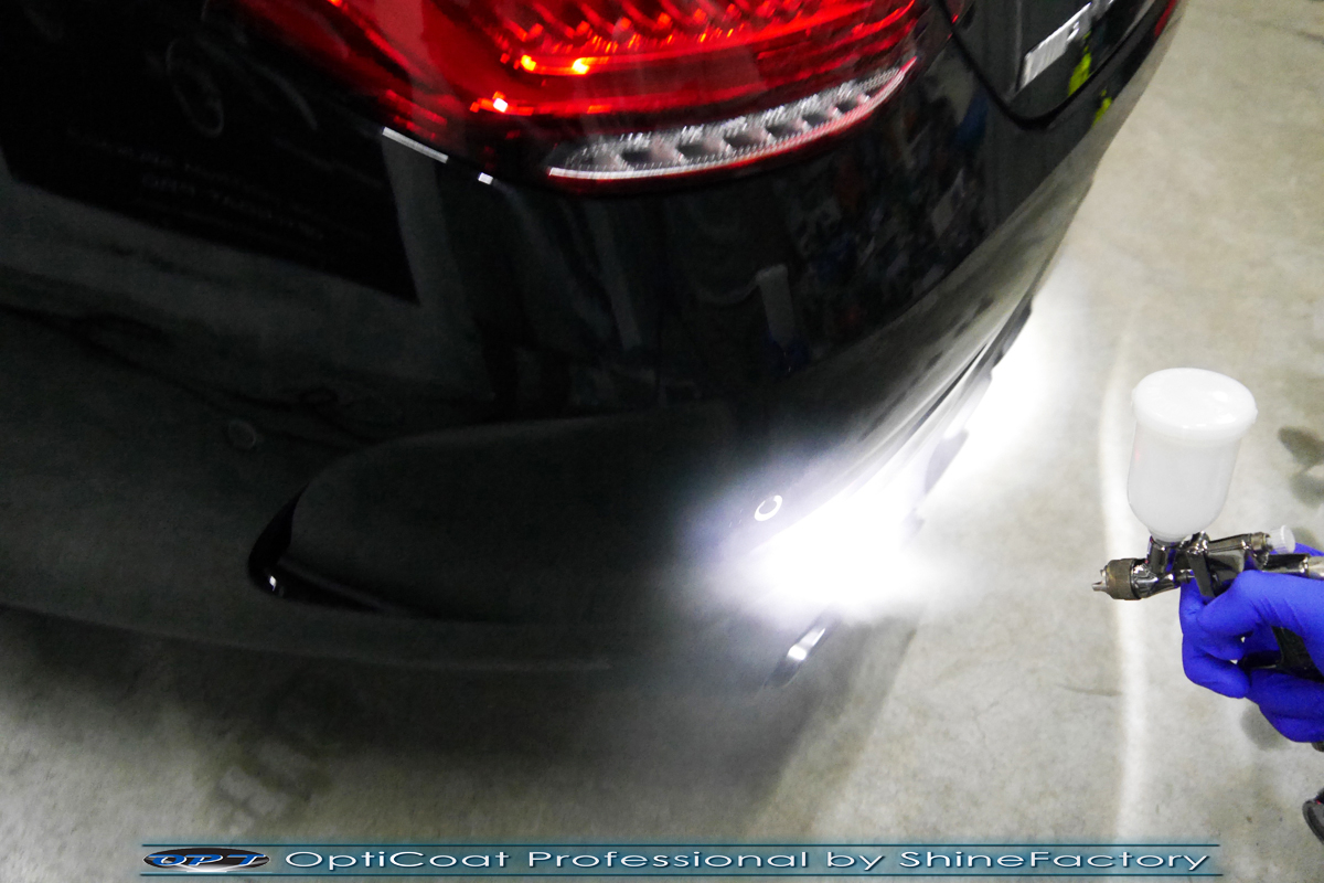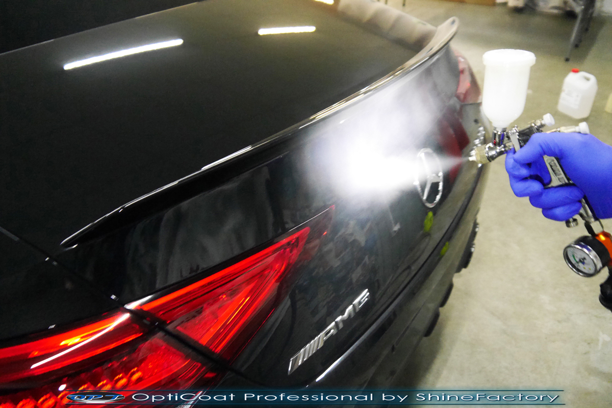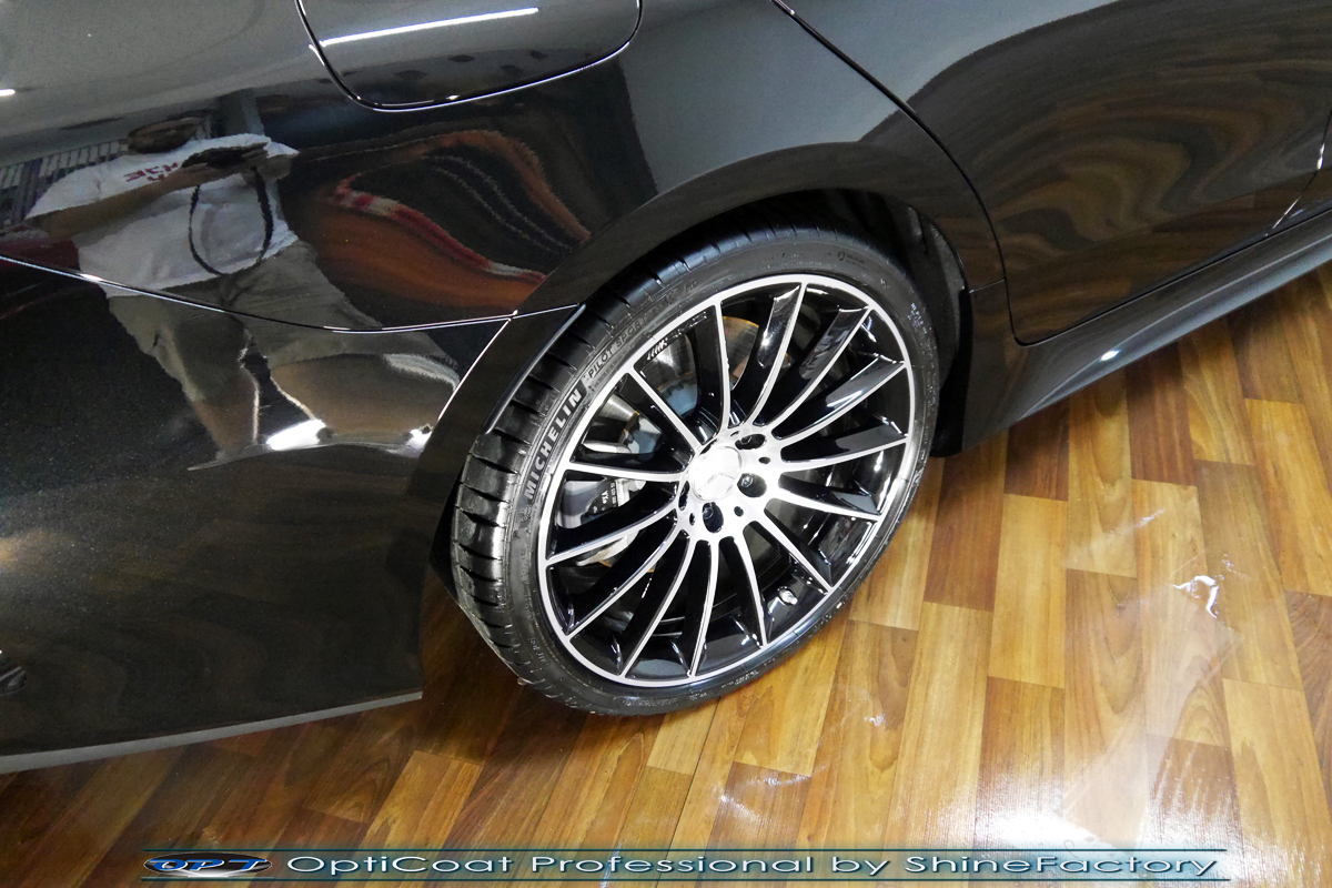 Oczywiście prace rozpoczęliśmy od dokładnego oczyszczenia całego nadwozia z naleciałości. Przeprowadziliśmy korektę aby usunąć delikatne posalonowe niedoskonałości. Następnie przystąpiliśmy do aplikacji bezbarwnych folii ochronnych na najbardziej narażone na mocne uszkodzenia el. auta, oczywiście zdecydowaliśmy się jak zawsze wybrać produkt bezkonkurencyjny i nowoczesny na rynku, czyli folie regeneracyjne SunTek Ultra PPF. Po aplikacji folii przeszliśmy do zabezpieczania wszelkich el. auta powłokami, zaaplikowaliśmy w natryskowy sposób grubą warstwę powłoki 9H+ Optimum OptiCoat Professional potwierdzoną testami TUV, pokrywając ją dla maksymalnego efektu wizualnego powłoką GlossCoat, która na końcu została utwardzona w odpowiedniej temp. lampami IR. Oczywiście zajęliśmy się, także zabezpieczeniem pakietem powłok wszelkich innych elementów jak szyby (Gtechniq G1), felgi (DLUX), lampy czy elementy nielakierowane. Po kilkudziesięciu godzinach pracy Mercedes nabrał perfekcyjnego wyglądu, połysku oraz co najważniejsze najmocniejszej praktycznie pancernej ochrony na lata. Zapraszamy do szerokiej fotorelacji!