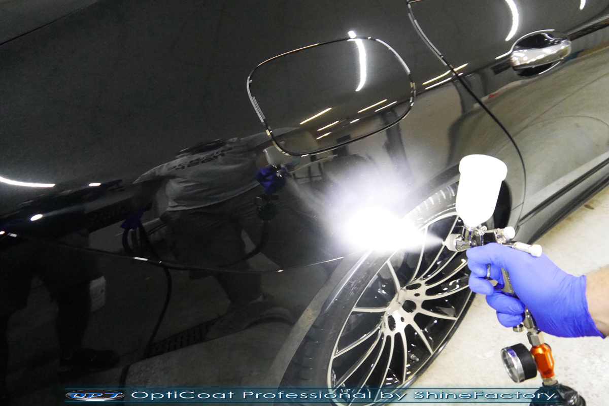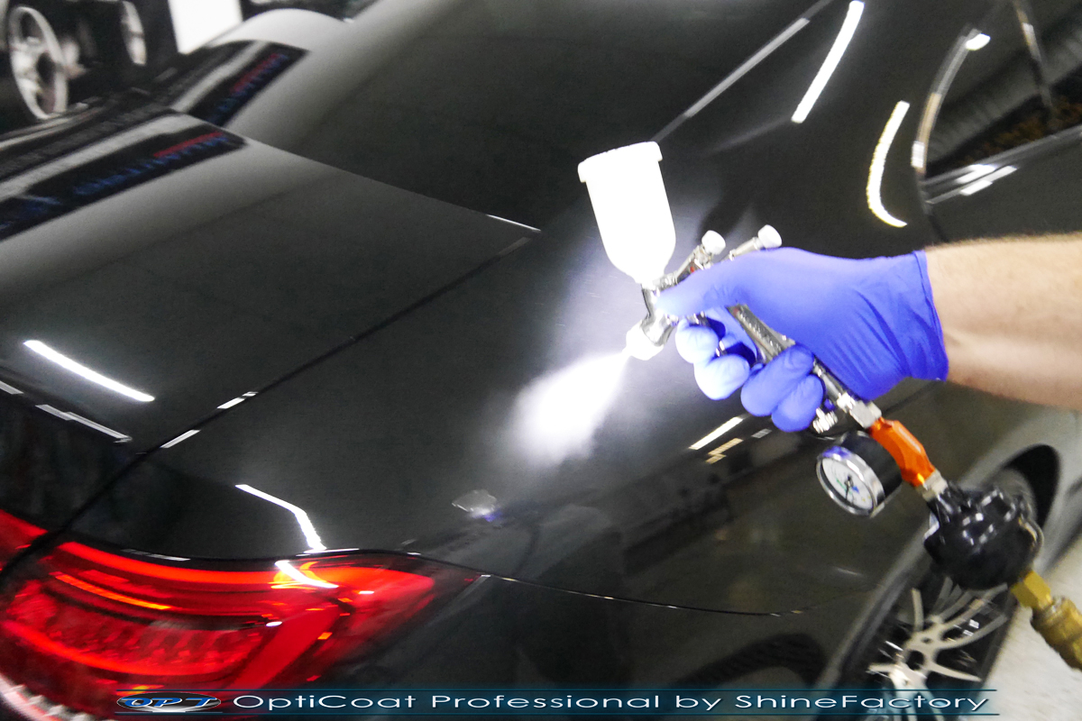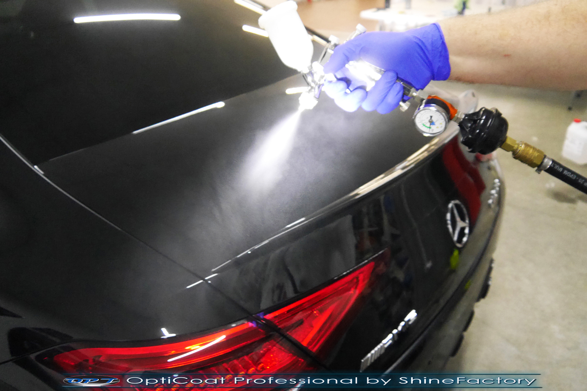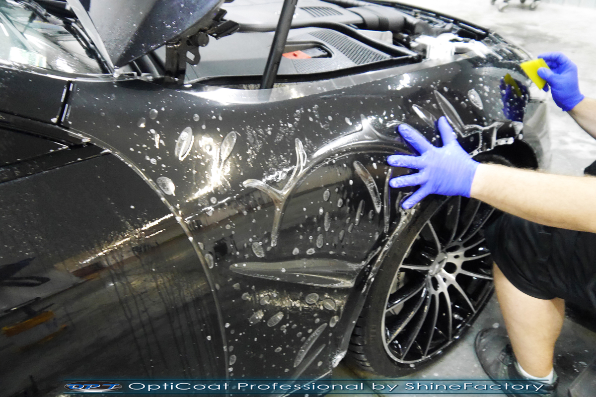 Oczywiście prace rozpoczęliśmy od dokładnego oczyszczenia całego nadwozia z naleciałości. Przeprowadziliśmy korektę aby usunąć delikatne posalonowe niedoskonałości. Następnie przystąpiliśmy do aplikacji bezbarwnych folii ochronnych na najbardziej narażone na mocne uszkodzenia el. auta, oczywiście zdecydowaliśmy się jak zawsze wybrać produkt bezkonkurencyjny i nowoczesny na rynku, czyli folie regeneracyjne SunTek Ultra PPF. Po aplikacji folii przeszliśmy do zabezpieczania wszelkich el. auta powłokami, zaaplikowaliśmy w natryskowy sposób grubą warstwę powłoki 9H+ Optimum OptiCoat Professional potwierdzoną testami TUV, pokrywając ją dla maksymalnego efektu wizualnego powłoką GlossCoat, która na końcu została utwardzona w odpowiedniej temp. lampami IR. Oczywiście zajęliśmy się, także zabezpieczeniem pakietem powłok wszelkich innych elementów jak szyby (Gtechniq G1), felgi (DLUX), lampy czy elementy nielakierowane. Po kilkudziesięciu godzinach pracy Mercedes nabrał perfekcyjnego wyglądu, połysku oraz co najważniejsze najmocniejszej praktycznie pancernej ochrony na lata. Zapraszamy do szerokiej fotorelacji!