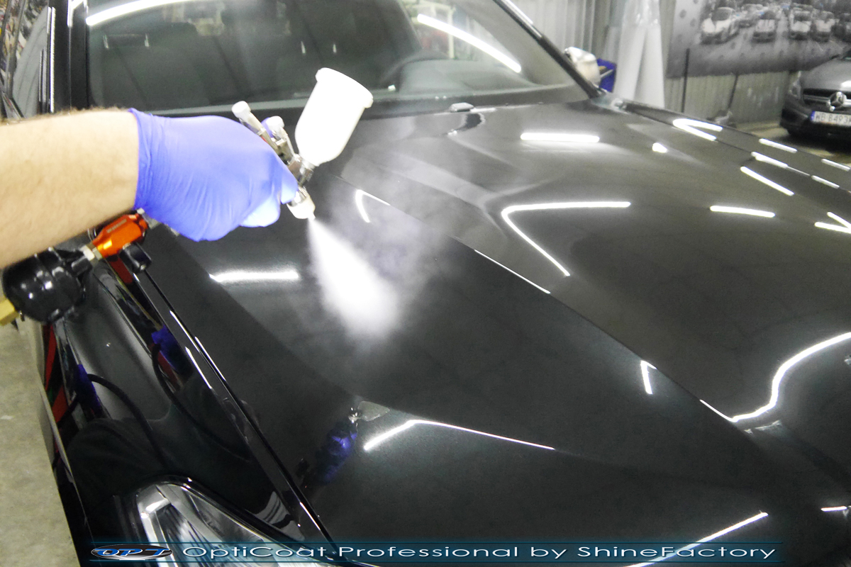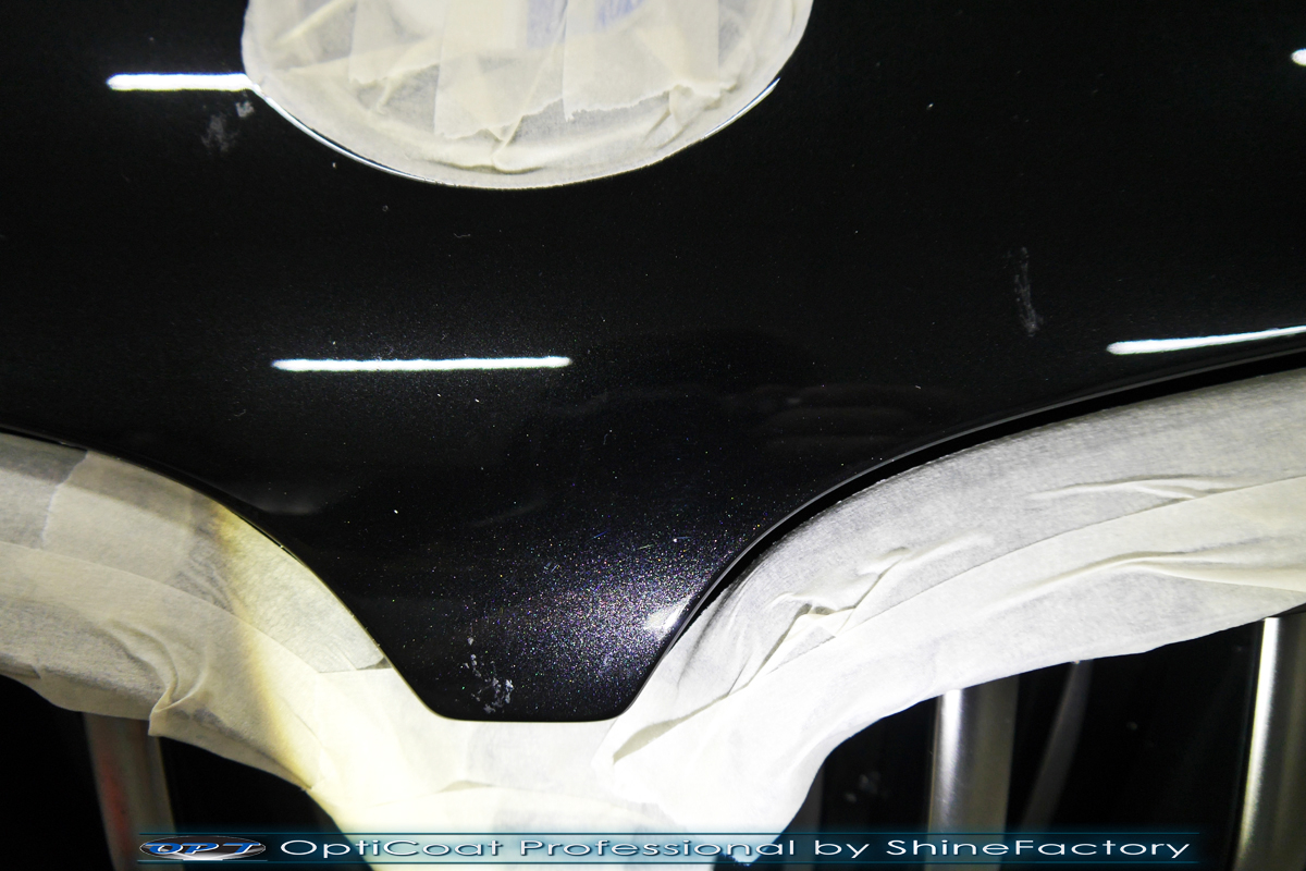 Zapraszamy Państwa do fotorelacji z prac nad BMW X5, które zostało nam oddane praktycznie prosto po wyjeździe z salonu w celu jak najgrubszego i jak najmocniejszego możliwego zabezpieczenia pakietem powłok ceramicznych. BMW przeszło nasz szeroki pakiet prac, zaczęliśmy od dokładnego detailingu kół oraz oczyszczenia nadwozia. Całe wnętrze zostało oczyszczone i zaimpregnowane kosmetykami najwyższej ligi, z naciskiem na el. plastikowe, delikatne skóry i el. z alkantary. Prace nad nadwoziem rozpoczęliśmy od dokładnego oczyszczenia i odtłuszczenia, następnie lakier przeszedł delikatną korektę w celu usunięcia po salonowych niedoskonałości i już powstałych mocnych wżerów po owadach na przodzie. Po tych czynnościach przeszliśmy do aplikacji powłok na wszelkie elementy jak lakier, szyby (bezapelacyjnie najlepszą powłoką Gtechniq G1), felgi (pancerny CQ DLUX), detale itp itd. Najważniejsze, na sam lakier zaaplikowaliśmy maksymalnie grubą natryskową warstwę kompozytu ceramicznego (100% powłoki na aucie) opartego na SiC- OptiCoat Professional połączoną z powłoką GlossCoat, która zapewni ochronę, zminimalizowane brudzenie oraz ułatwione do maksimum mycie. Finalnie całe auto zostało wygrzane lampami IR w odpowiedniej temperaturze w celu utwardzenia. Zapraszamy do szerokiej fotorelacji!