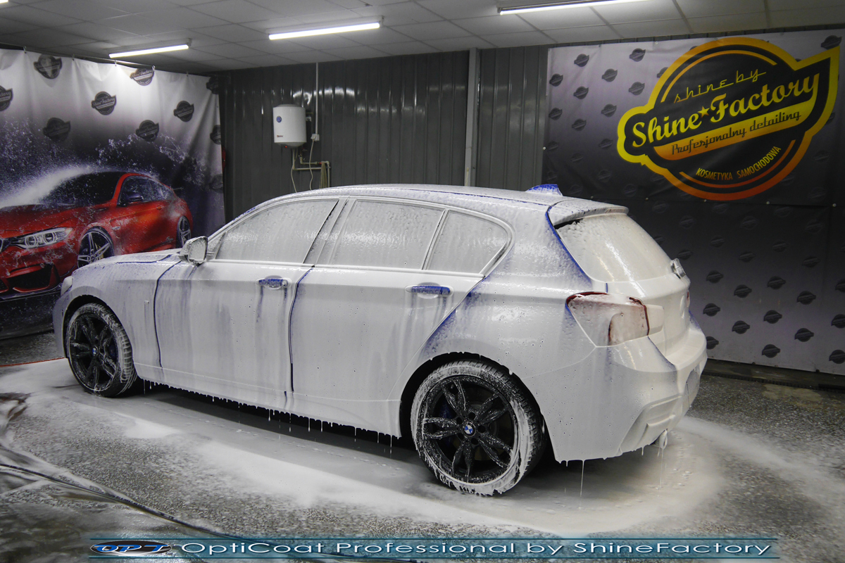 Zapraszamy Państwa do fotorelacji z prac nad BMW M140i, które zostało nam oddane praktycznie prosto po wyjeździe z salonu w celu jak najgrubszego i jak najmocniejszego możliwego zabezpieczenia pakietem powłok ceramicznych. BMW przeszło nasz szeroki pakiet prac, zaczęliśmy od dokładnego detailingu kół oraz oczyszczenia nadwozia. Całe wnętrze zostało oczyszczone i zaimpregnowane kosmetykami najwyższej ligi, z naciskiem na el. plastikowe, delikatne skóry i el. z alkantary. Prace nad nadwoziem rozpoczęliśmy od dokładnego oczyszczenia i odtłuszczenia, następnie lakier przeszedł delikatną korektę w celu usunięcia po salonowych niedoskonałości i już powstałych mocnych wżerów po owadach na przodzie. Po tych czynnościach przeszliśmy do aplikacji powłok na wszelkie elementy jak lakier, szyby (bezapelacyjnie najlepszą powłoką Gtechniq G1), felgi (pancerny CQ DLUX), detale itp itd. Najważniejsze, na sam lakier zaaplikowaliśmy maksymalnie grubą natryskową warstwę kompozytu ceramicznego (100% powłoki na aucie) opartego na SiC- OptiCoat Professional połączoną z powłoką GlossCoat, która zapewni ochronę, zminimalizowane brudzenie oraz ułatwione do maksimum mycie. Finalnie całe auto zostało wygrzane lampami IR w odpowiedniej temperaturze w celu utwardzenia. Zapraszamy do szerokiej fotorelacji!