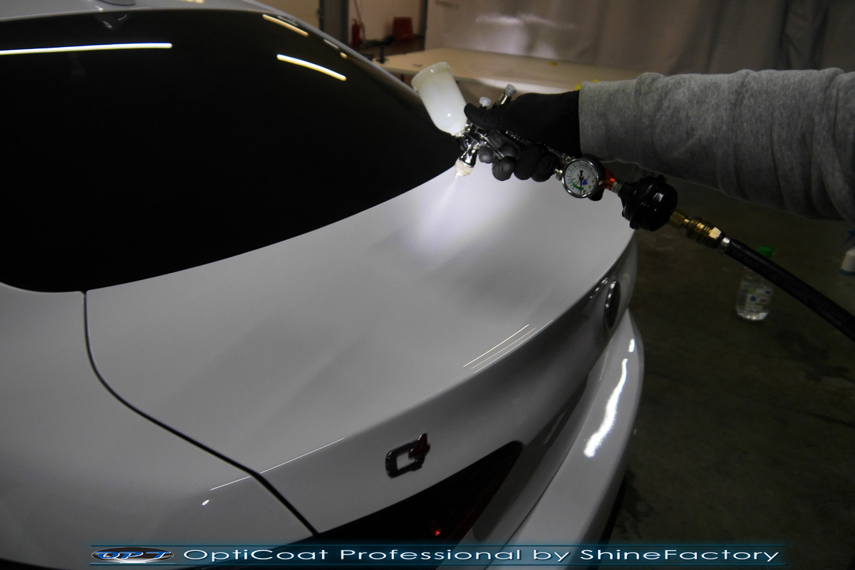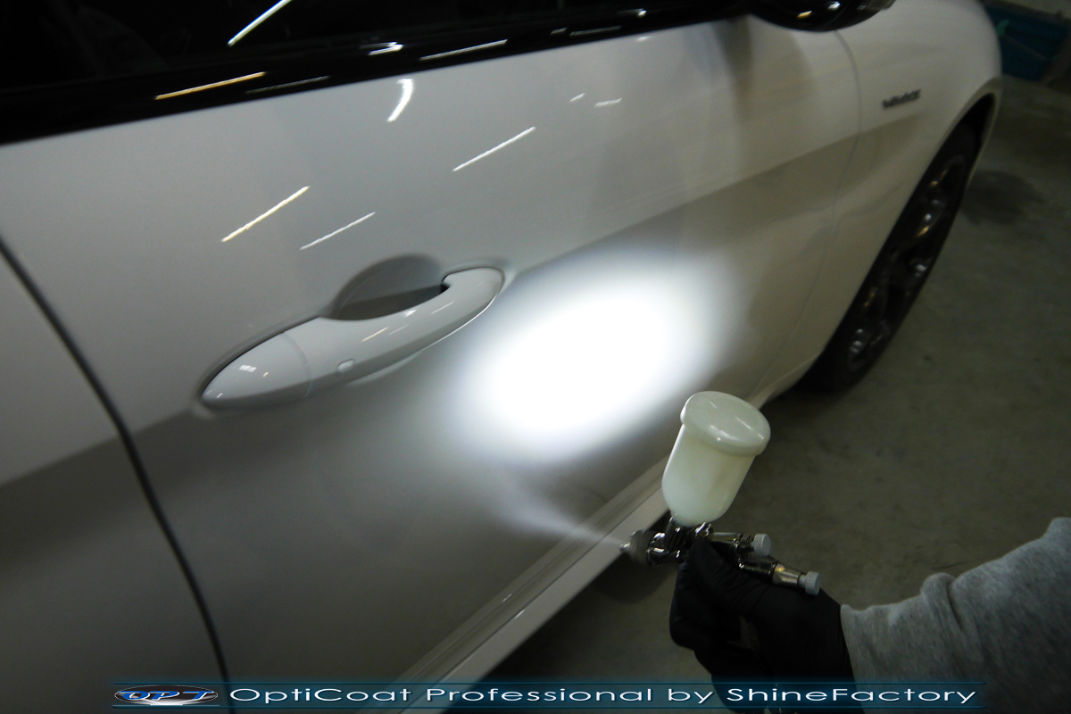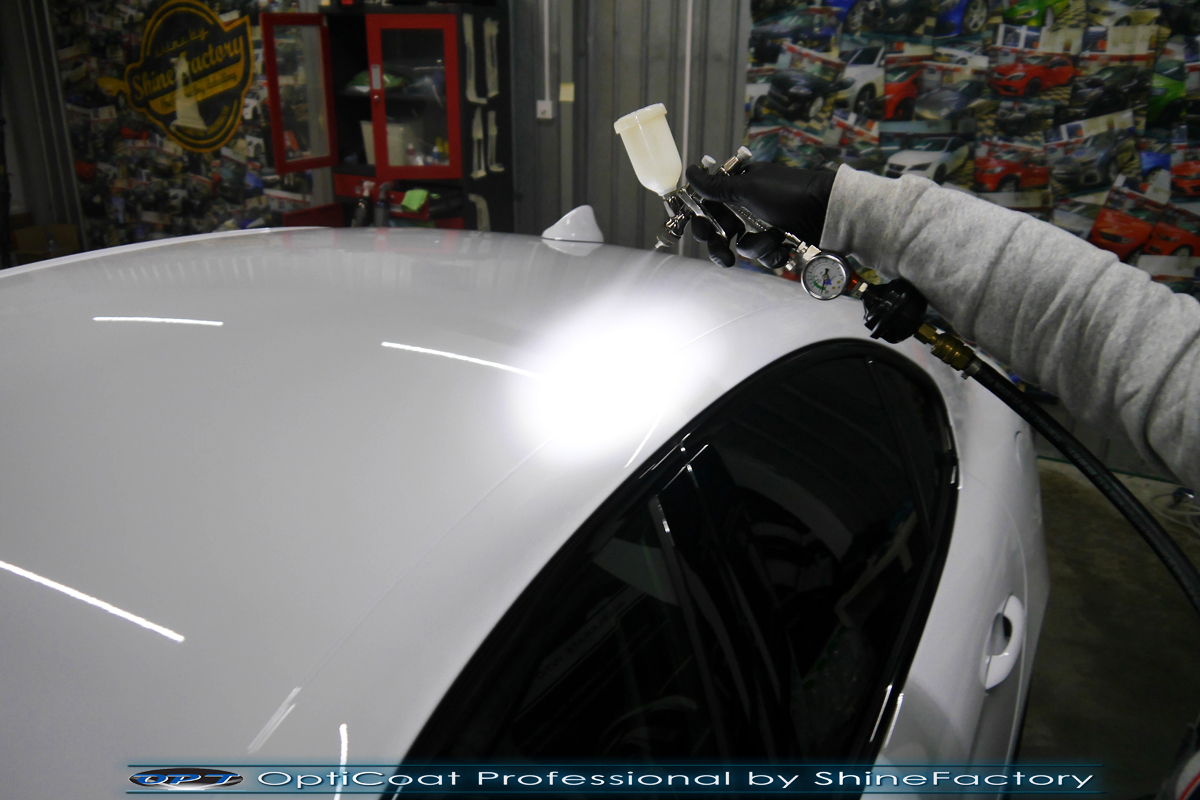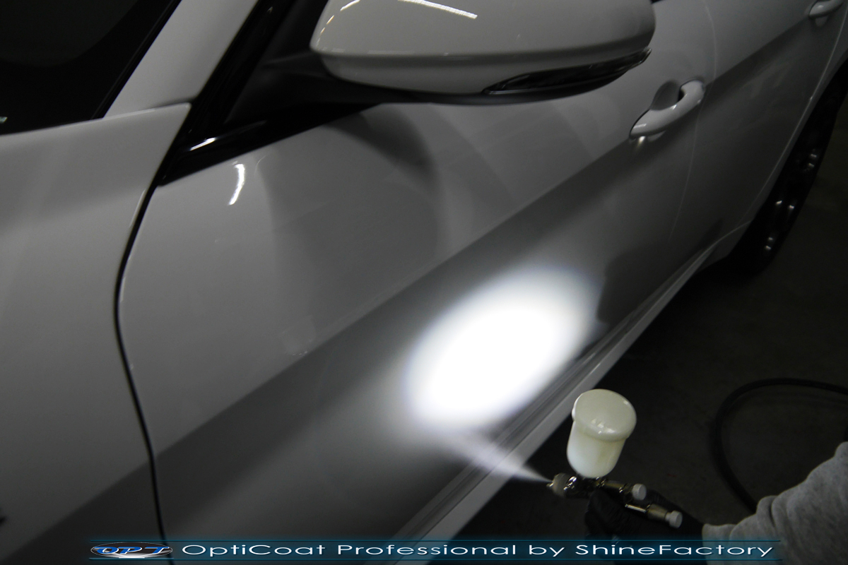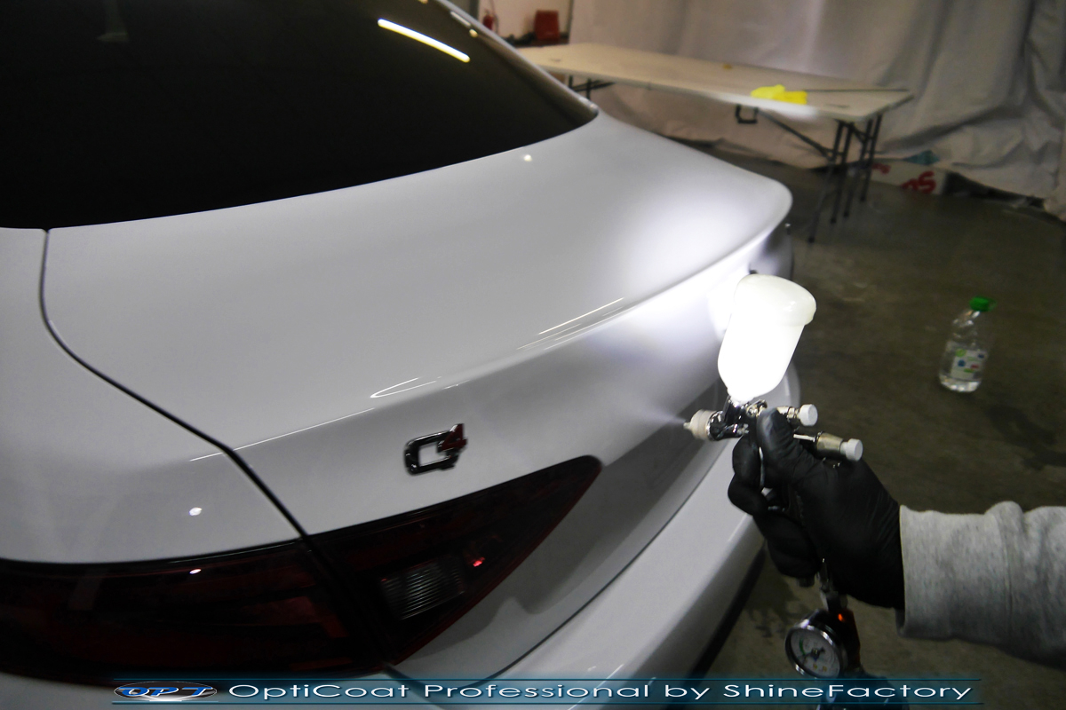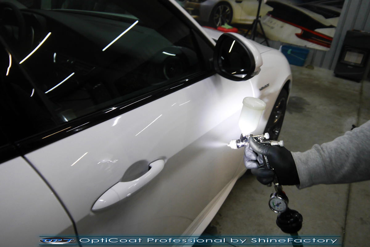 Połączenie bezbarwnych samo-regeneracyjnych folii oraz powłok ceramicznych staje się powoli standardem w idealnym zabezpieczeniu nowego auta. Tym razem mieliśmy przyjemność zająć się nową piękną Alfa Romeo Giulia, która trafiła do nas wprost po wyjeździe z salonu. Auto zostało maksymalnie zabezpieczone przed wszystkimi możliwymi uszkodzeniami. Wykorzystane do tego zostały najlepsze na rynku bezbarwne folie ochronne SunTek Ultra PPF oraz natryskowa ceramika OptiCoat PRO. Oczywiście prace rozpoczęliśmy od dokładnego oczyszczenia całego nadwozia z naleciałości a następnie przeprowadziliśmy korektę aby usunąć delikatne posalonowe niedoskonałości. Następnie przystąpiliśmy do aplikacji bezbarwnych folii ochronnych na najbardziej narażone na mocne uszkodzenia el. auta, oczywiście zdecydowaliśmy się jak zawsze wybrać produkt bezkonkurencyjny i nowoczesny na rynku, czyli folie regeneracyjne SunTek Ultra PPF. Po aplikacji folii przeszliśmy do zabezpieczania wszelkich el. auta powłokami, zaaplikowaliśmy w natryskowy sposób grubą warstwę powłoki 9H+ Optimum OptiCoat Professional potwierdzoną testami TUV, pokrywając ją dla maksymalnego efektu wizualnego powłoką GlossCoat, która na końcu została utwardzona w odpowiedniej temp. lampami IR. Oczywiście zajęliśmy się, także zabezpieczeniem pakietem powłok wszelkich innych elementów jak szyby (Gtechniq G1), felgi (DLUX), lampy czy elementy nielakierowane . Nie pominęliśmy zajęcia się wnętrzem aby zabezpieczyć je w każdym detalu różnymi kosmetykami skupiając się na impregnacji delikatnych skór. Po kilkudziesięciu godzinach pracy Giulia nabrała perfekcyjnego wyglądu, połysku oraz co najważniejsze najmocniejszej praktycznie pancernej ochrony na lata. Zapraszamy do szerokiej fotorelacji!