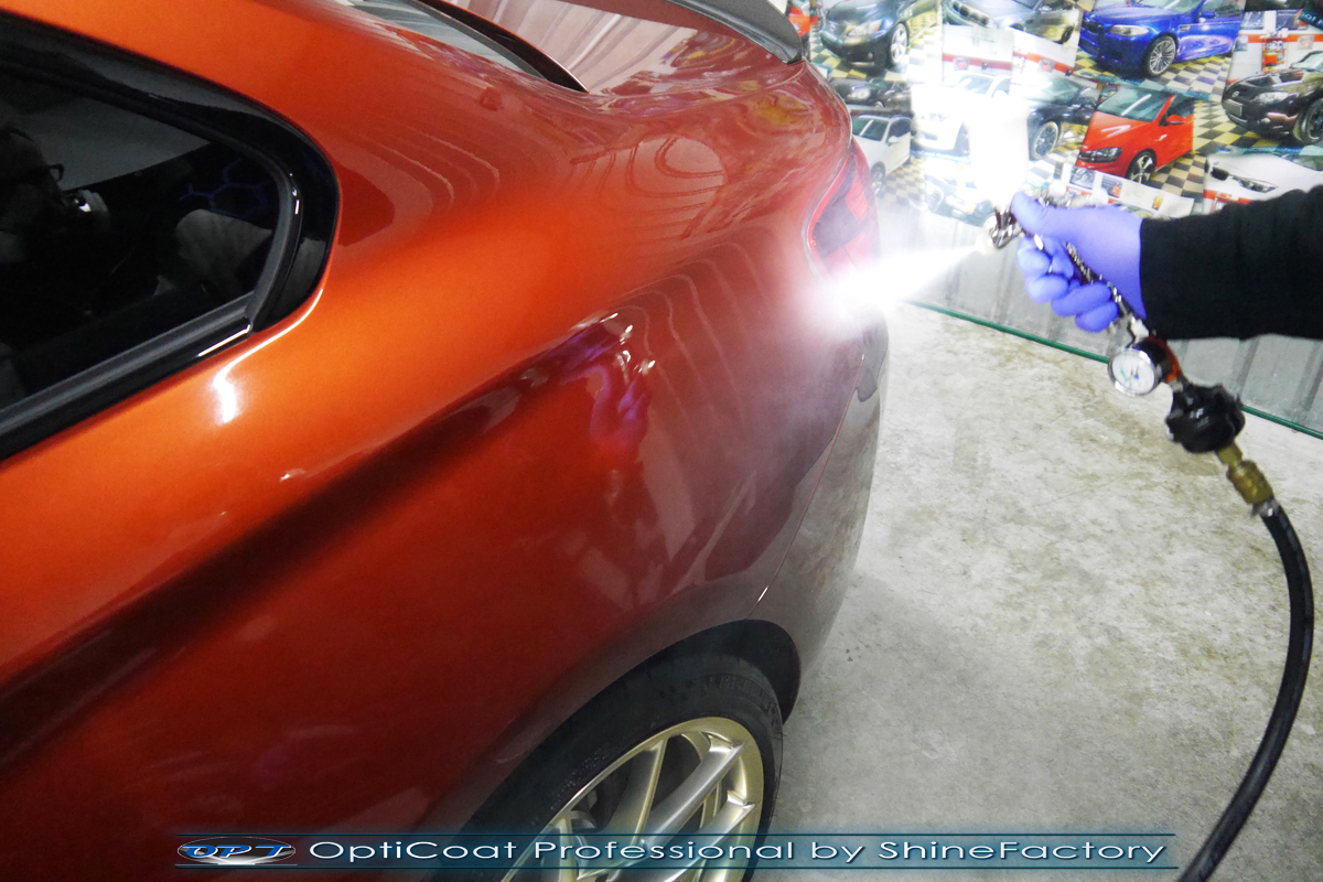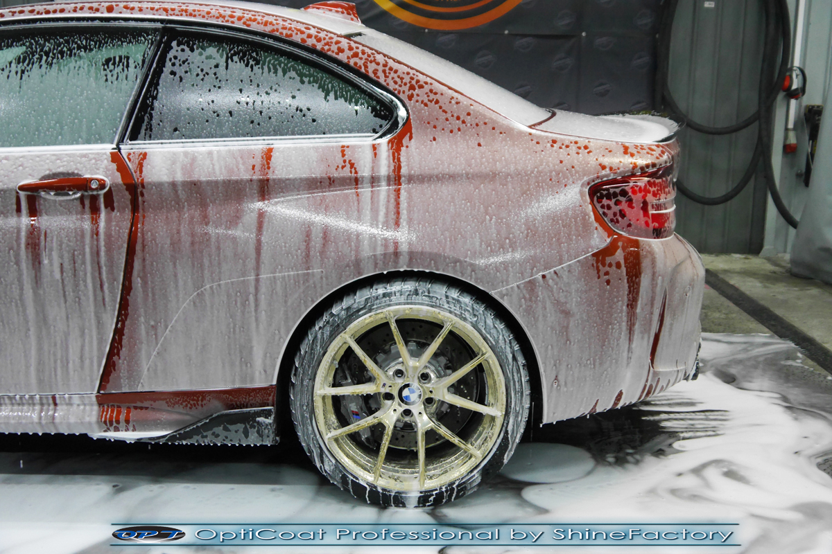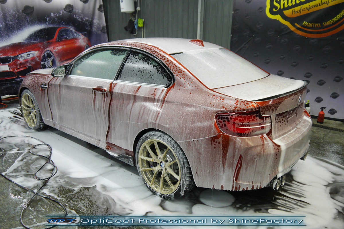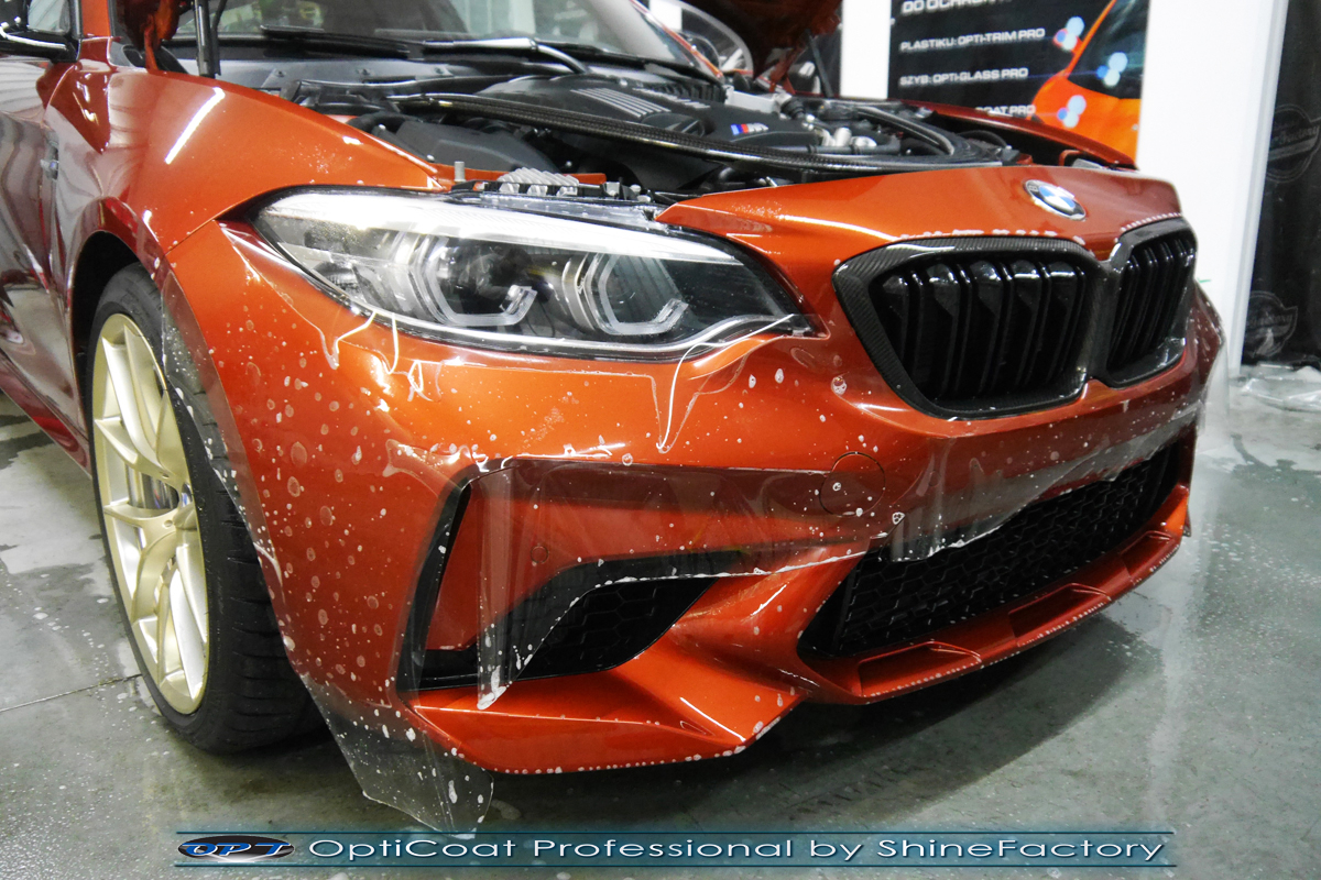 Połączenie bezbarwnych samo-regeneracyjnych folii oraz powłok ceramicznych staje się powoli standardem w idealnym zabezpieczeniu nowego auta. Tym razem mieliśmy przyjemność zająć się nowym BMW M2 Competition z dodatkowym pakietem Mperformance, które trafiło do nas wprost po wyjeździe z salonu. Auto zostało maksymalnie zabezpieczone przed wszystkimi możliwymi uszkodzeniami. Wykorzystane do tego zostały najlepsze na rynku bezbarwne folie ochronne SunTek Ultra PPF oraz natryskowa ceramika OptiCoat PRO. Oczywiście prace rozpoczęliśmy od dokładnego oczyszczenia całego nadwozia z naleciałości a następnie przeprowadziliśmy korektę aby usunąć delikatne posalonowe niedoskonałości. Następnie przystąpiliśmy do aplikacji bezbarwnych folii ochronnych na najbardziej narażone na mocne uszkodzenia el. auta, oczywiście zdecydowaliśmy się jak zawsze wybrać produkt bezkonkurencyjny i nowoczesny na rynku, czyli folie regeneracyjne SunTek Ultra PPF. Po aplikacji folii przeszliśmy do zabezpieczania wszelkich el. auta powłokami, zaaplikowaliśmy w natryskowy sposób grubą warstwę powłoki 9H+ Optimum OptiCoat Professional potwierdzoną testami TUV, pokrywając ją dla maksymalnego efektu wizualnego powłoką GlossCoat, która na końcu została utwardzona w odpowiedniej temp. lampami IR. Oczywiście zajęliśmy się, także zabezpieczeniem pakietem powłok wszelkich innych elementów jak szyby (Gtechniq G1), felgi (DLUX), lampy czy elementy nielakierowane. Nie pominęliśmy zajęcia się wnętrzem aby zabezpieczyć je w każdym detalu różnymi kosmetykami skupiając się na impregnacji delikatnych skór i alkantary. Po kilkudziesięciu godzinach pracy BMW nabrało perfekcyjnego wyglądu, połysku oraz co najważniejsze najmocniejszej praktycznie pancernej ochrony na lata. Zapraszamy do szerokiej fotorelacji!