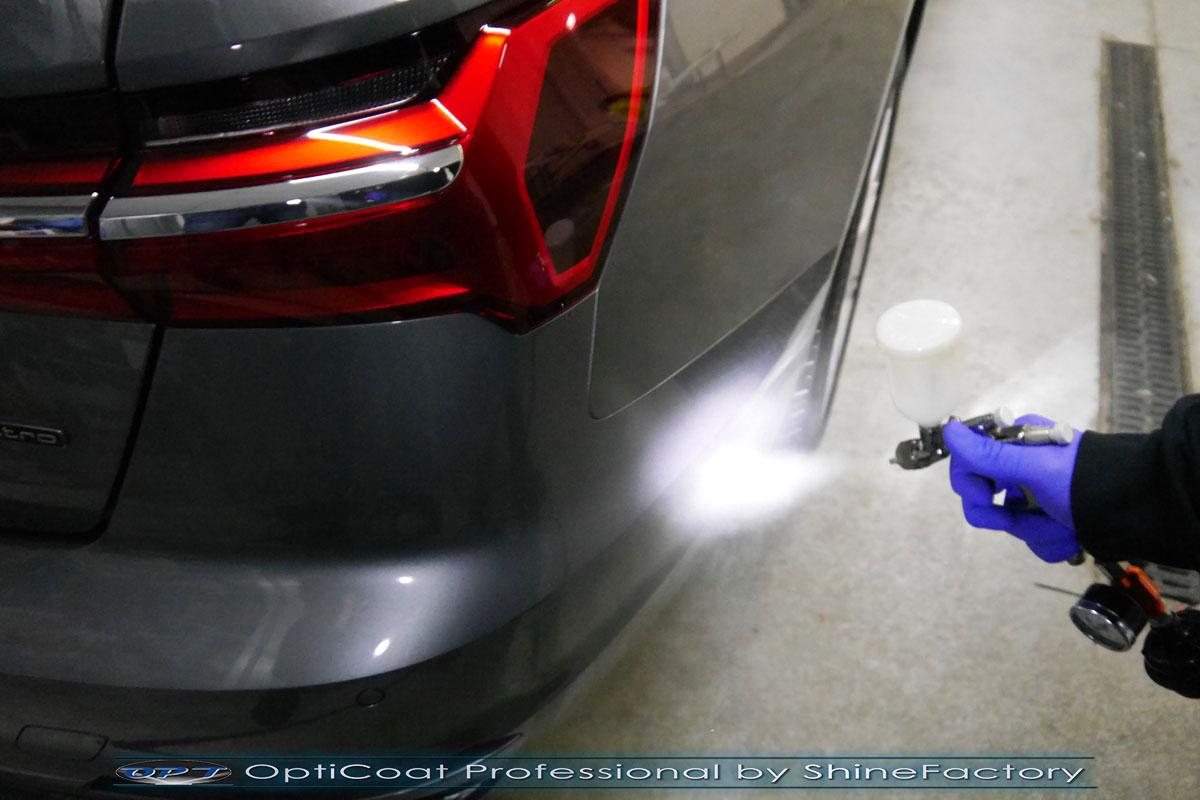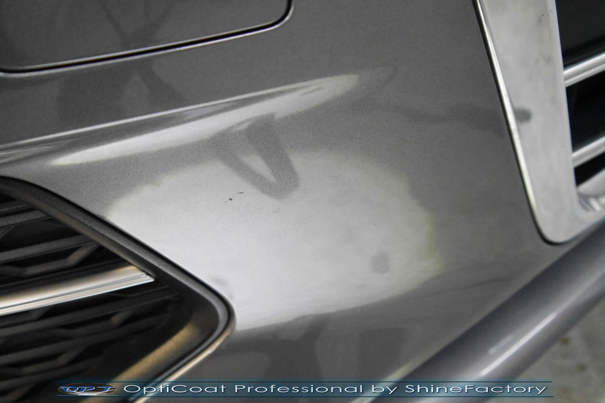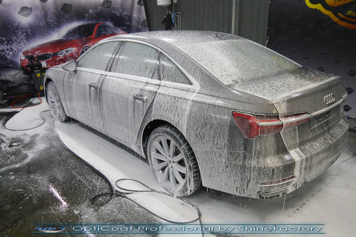 Połączenie bezbarwnych samo-regeneracyjnych folii oraz powłok ceramicznych staje się powoli standardem w idealnym zabezpieczeniu nowego auta. Tym razem mieliśmy przyjemność zająć się nowym Audi A6, które trafiło do nas po niewielkim przebiegu, kiedy właściciel zauważył już powstające odpryski na przodzie i słabą jakość lakieru auta. Auto zostało maksymalnie zabezpieczone przed wszystkimi możliwymi uszkodzeniami. Wykorzystane do tego zostały najlepsze na rynku bezbarwne folie ochronne SunTek Ultra PPF oraz natryskowa ceramika OptiCoat PRO. Oczywiście prace rozpoczęliśmy od dokładnego oczyszczenia całego nadwozia z naleciałości a następnie przeprowadziliśmy korektę aby usunąć niedoskonałości. Następnie przystąpiliśmy do aplikacji bezbarwnych folii ochronnych na najbardziej narażone na mocne uszkodzenia el. auta, oczywiście zdecydowaliśmy się jak zawsze wybrać produkt bezkonkurencyjny i nowoczesny na rynku, czyli folie regeneracyjne SunTek Ultra PPF. Po aplikacji folii przeszliśmy do zabezpieczania wszelkich el. auta powłokami, zaaplikowaliśmy w natryskowy sposób grubą warstwę powłoki 9H+ Optimum OptiCoat Professional potwierdzoną testami TUV, pokrywając ją dla maksymalnego efektu wizualnego powłoką GlossCoat, która na końcu została utwardzona w odpowiedniej temp. lampami IR. Oczywiście zajęliśmy się, także zabezpieczeniem pakietem powłok wszelkich innych elementów jak szyby (Gtechniq G1), felgi (DLUX), lampy czy elementy nielakierowane. Nie pominęliśmy zajęcia się wnętrzem aby zabezpieczyć je w każdym detalu różnymi kosmetykami skupiając się na impregnacji delikatnych skór. Po kilkudziesięciu godzinach pracy Audi nabrało perfekcyjnego wyglądu, połysku oraz co najważniejsze najmocniejszej praktycznie pancernej ochrony na lata. Zapraszamy do szerokiej fotorelacji!