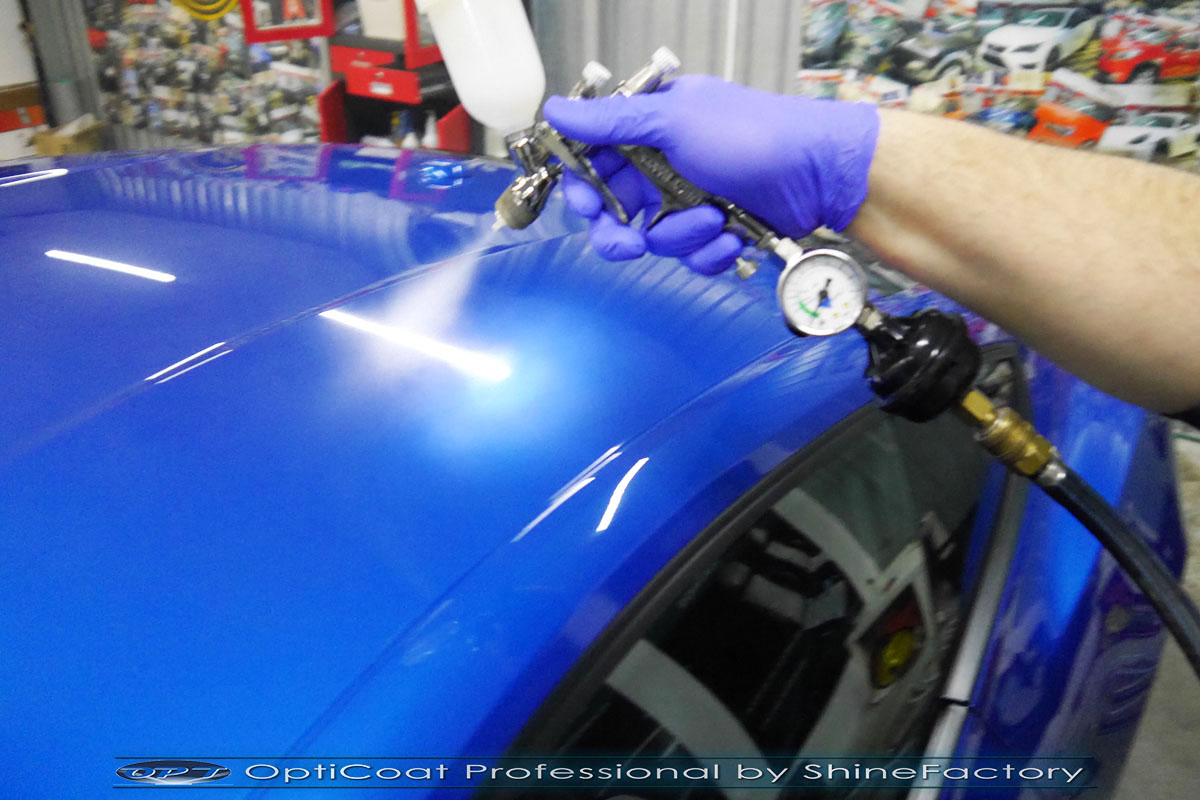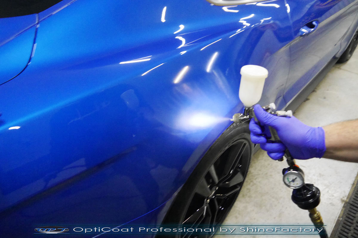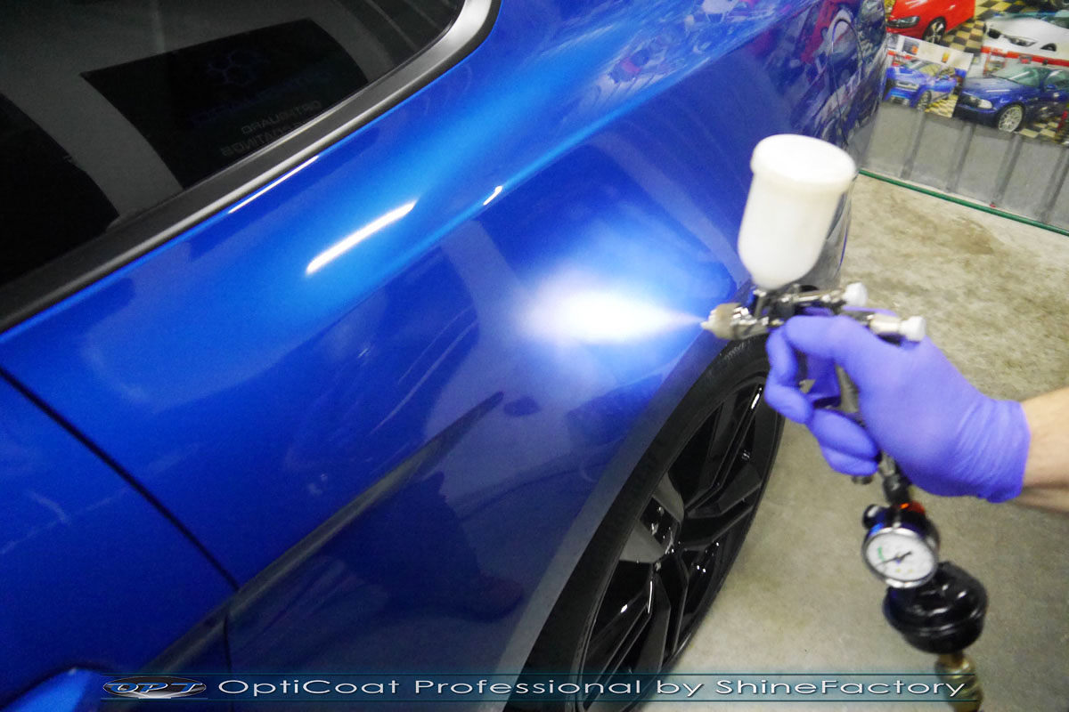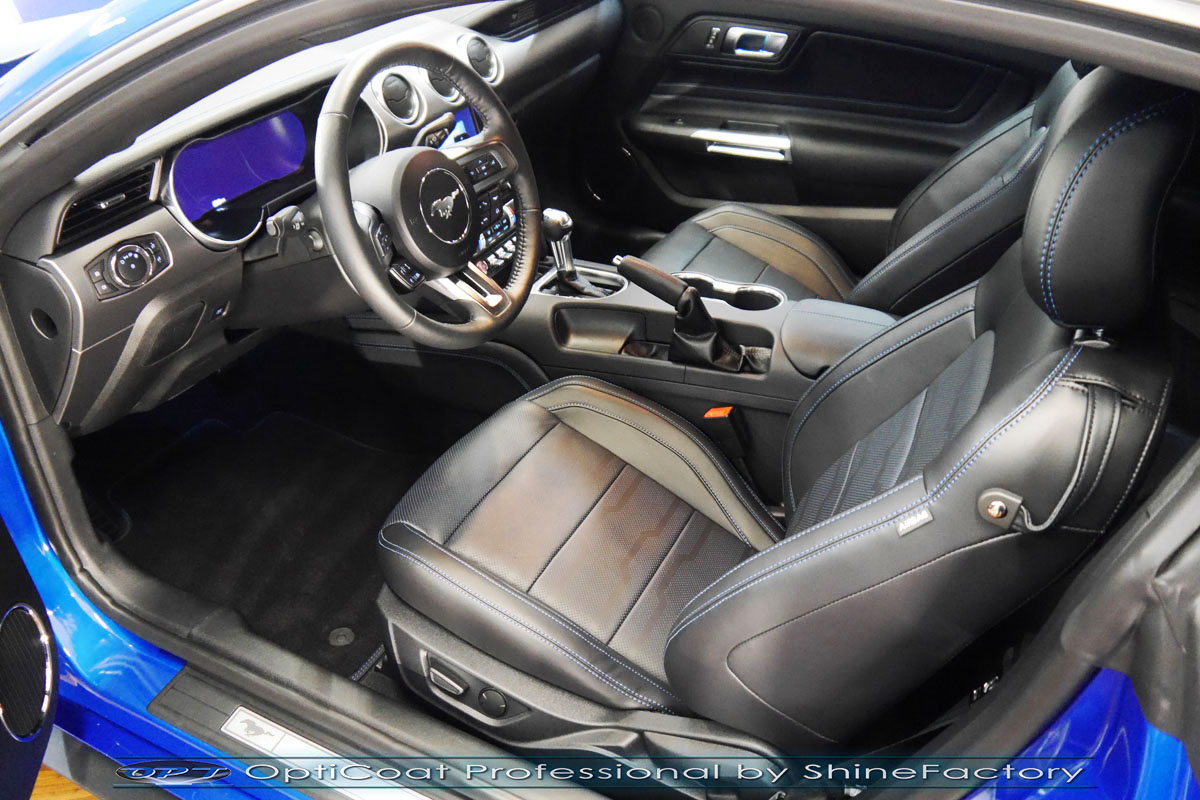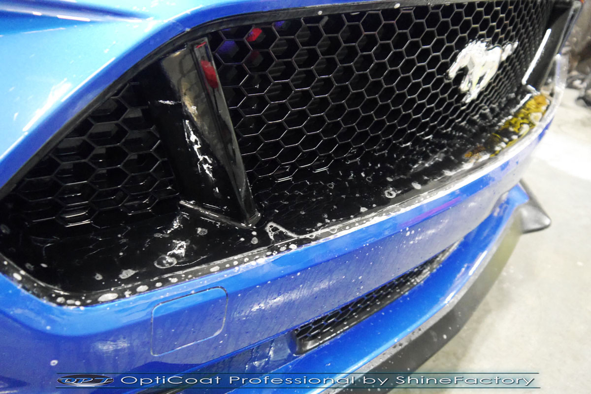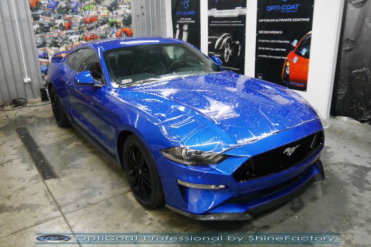 Połączenie bezbarwnych samo-regeneracyjnych folii oraz powłok ceramicznych staje się powoli standardem w idealnym zabezpieczeniu nowego auta. Tym razem mieliśmy przyjemność zająć się nowym Fordem Mustangiem GT, który trafił do nas prosto z salonu. Auto zostało maksymalnie zabezpieczone przed wszystkimi możliwymi uszkodzeniami. Wykorzystane do tego zostały najlepsze na rynku bezbarwne folie ochronne SunTek Ultra PPF oraz natryskowa ceramika OptiCoat PRO. Oczywiście prace rozpoczęliśmy od dokładnego oczyszczenia całego nadwozia z naleciałości a następnie przeprowadziliśmy korektę aby usunąć lekkie niedoskonałości pofabryczne. Następnie przystąpiliśmy do aplikacji bezbarwnych folii ochronnych na najbardziej narażone na mocne uszkodzenia el. auta, oczywiście zdecydowaliśmy się jak zawsze wybrać produkt bezkonkurencyjny i nowoczesny na rynku, czyli folie regeneracyjne SunTek Ultra PPF. Po aplikacji folii przeszliśmy do zabezpieczania wszelkich el. auta powłokami, zaaplikowaliśmy w natryskowy sposób grubą warstwę powłoki 9H+ Optimum OptiCoat Professional potwierdzoną testami TUV, pokrywając ją dla maksymalnego efektu wizualnego powłoką GlossCoat, która na końcu została utwardzona w odpowiedniej temp. lampami IR. Oczywiście zajęliśmy się, także zabezpieczeniem pakietem powłok wszelkich innych elementów jak szyby (Gtechniq G1), felgi (DLUX), lampy czy elementy nielakierowane. Nie pominęliśmy zajęcia się wnętrzem aby zabezpieczyć je w każdym detalu różnymi kosmetykami skupiając się na impregnacji delikatnych skór. Po kilkudziesięciu godzinach pracy Mustang nabrał perfekcyjnego wyglądu, połysku oraz co najważniejsze najmocniejszej praktycznie pancernej ochrony na lata. Zapraszamy do szerokiej fotorelacji!