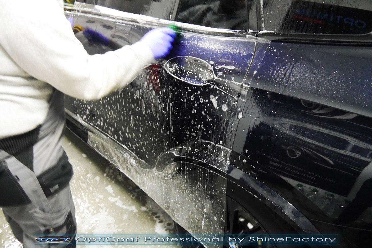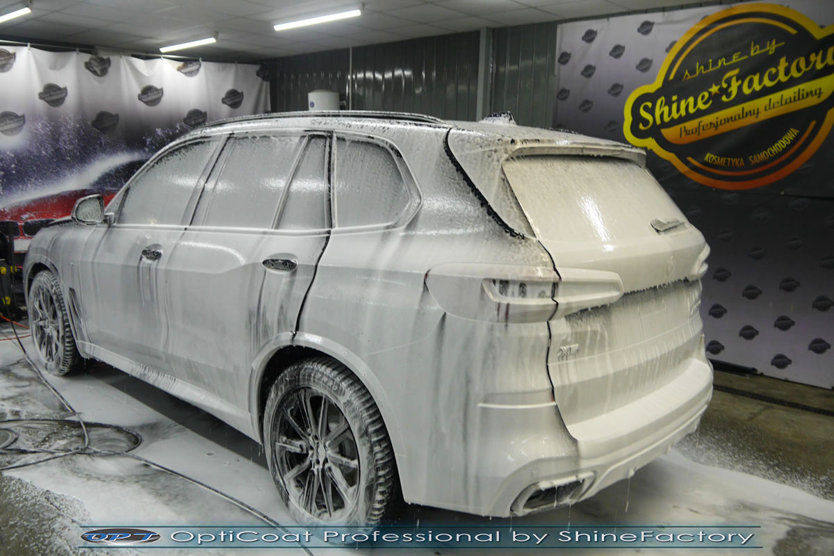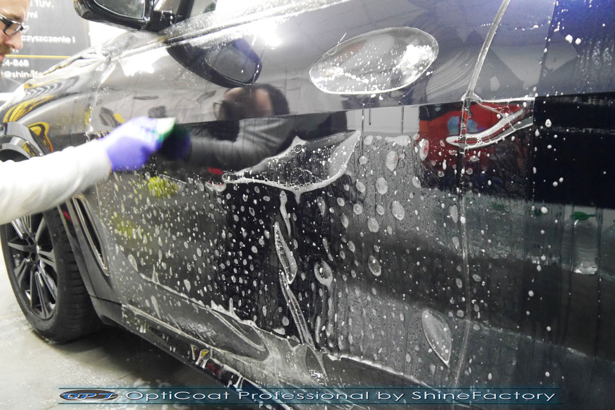 Połączenie bezbarwnych samo-regeneracyjnych folii oraz powłok ceramicznych staje się powoli standardem w idealnym zabezpieczeniu nowego auta. Tym razem mieliśmy przyjemność zająć się najnowszym modelem BMW X5, które trafiło do nas po symbolicznym przebiegu. Auto zostało maksymalnie zabezpieczone przed wszystkimi możliwymi uszkodzeniami. Wykorzystane do tego zostały najlepsze na rynku bezbarwne folie ochronne SunTek Ultra PPF oraz natryskowa ceramika OptiCoat PRO. Oczywiście prace rozpoczęliśmy od dokładnego oczyszczenia całego nadwozia z naleciałości. Musieliśmy już niestety przeprowadzić mocniejszą korektę w celu usunięcia wżerów w lakierze które pojawiły się na większości elementów. Następnie przystąpiliśmy do aplikacji bezbarwnych folii ochronnych na najbardziej narażone na mocne uszkodzenia el. auta, oczywiście zdecydowaliśmy się jak zawsze wybrać produkt bezkonkurencyjny i nowoczesny na rynku, czyli folie regeneracyjne SunTek Ultra PPF. Po aplikacji folii przeszliśmy do zabezpieczania wszelkich el. auta powłokami, zaaplikowaliśmy w natryskowy sposób grubą warstwę powłoki 9H+ Optimum OptiCoat Professional potwierdzoną testami TUV, pokrywając ją dla maksymalnego efektu wizualnego powłoką GlossCoat, która na końcu została utwardzona w odpowiedniej temp. lampami IR. Oczywiście zajęliśmy się, także zabezpieczeniem pakietem powłok wszelkich innych elementów jak szyby (Gtechniq G1), felgi (DLUX), lampy czy elementy nielakierowane . Nie pominęliśmy zajęcia się wnętrzem aby zabezpieczyć je w każdym detalu różnymi kosmetykami skupiając się na impregnacji delikatnych skór. Po kilkudziesięciu godzinach pracy BMW nabrało perfekcyjnego wyglądu, połysku oraz co najważniejsze najmocniejszej praktycznie pancernej ochrony na lata. Zapraszamy do szerokiej fotorelacji!
