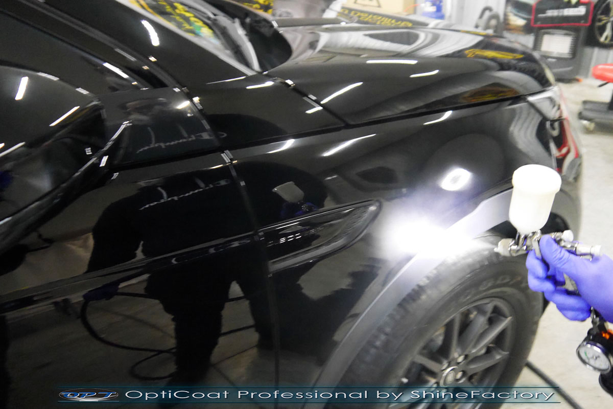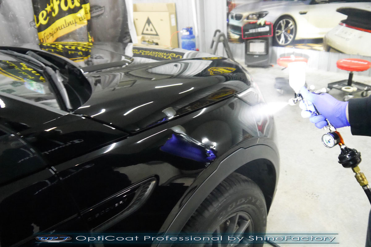 Zapraszamy Państwa do fotorelacji z prac nad Land Rover Discovery Sport w czarnym niemetalicznym lakierze. Auto zostało nam oddane niedługo po wyjeździe z salonu w celu jak najgrubszego i jak najmocniejszego możliwego zabezpieczenia pakietem powłok ceramicznych. Prace nad nadwoziem rozpoczęliśmy od dokładnego oczyszczenia i odtłuszczenia, następnie lakier w celu uzyskania perfekcyjnego efektu finalnego niestety musiał już przejść dość mocną korektę ponieważ zastaliśmy na nim mnóstwo mikrorys oraz zmatowień potransportowych oraz posalonowych. Po tych czynnościach przeszliśmy do aplikacji powłok na wszelkie elementy jak lakier, szyby (bezapelacyjnie najlepszą powłoką Gtechniq G1), lampy, felgi (pancerny CQ DLUX), detale itp itd. Najważniejsze, na sam lakier zaaplikowaliśmy maksymalnie grubą natryskową warstwę kompozytu ceramicznego (100% powłoki na aucie) opartego na SiC- OptiCoat Professional połączoną z powłoką GlossCoat, która zapewni ochronę, zminimalizowane brudzenie oraz ułatwione do maksimum mycie. Przyciemnieliśmy tylne szyby auta. Finalnie całe auto zostało wygrzane lampami IR w odpowiedniej temperaturze w celu utwardzenia. Zapraszamy do szerokiej fotorelacji!