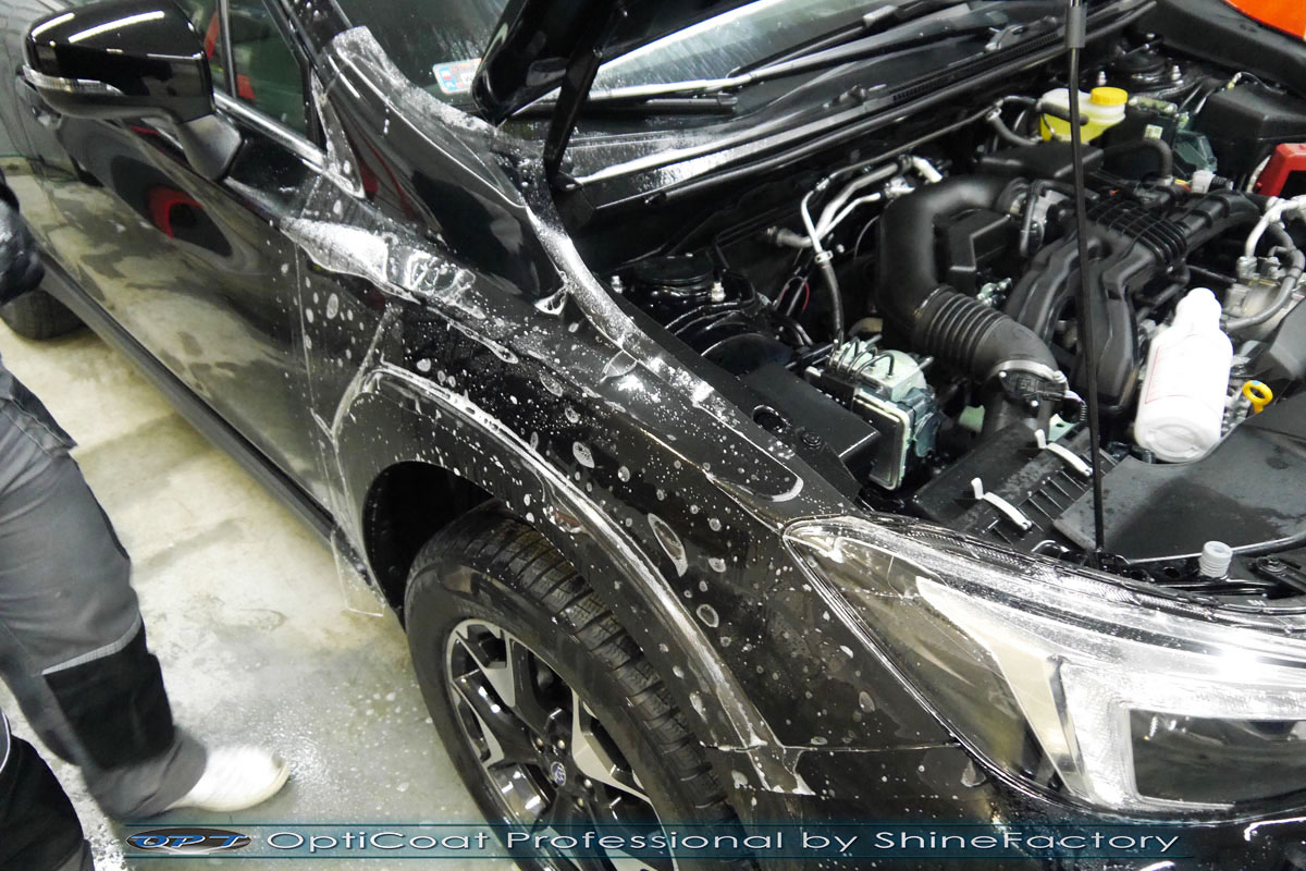 Połączenie bezbarwnych samo-regeneracyjnych folii oraz powłok ceramicznych staje się powoli standardem w idealnym zabezpieczeniu nowego auta. Tym razem mieliśmy przyjemność zająć się nowym Subaru XV. Auto zostało przez nas maksymalnie zabezpieczone przed wszystkimi możliwymi uszkodzeniami. Wykorzystane do tego zostały najlepsze na rynku bezbarwne folie ochronne SunTek Ultra PPF oraz natryskowa ceramika OptiCoat PRO. Oczywiście prace rozpoczęliśmy od dokładnego oczyszczenia całego nadwozia z naleciałości oraz delikatnej korekty lakieru. Następnie przystąpiliśmy do aplikacji bezbarwnych folii ochronnych na najbardziej narażone na mocne uszkodzenia el. auta, oczywiście zdecydowaliśmy się jak zawsze wybrać produkt bezkonkurencyjny i nowoczesny na rynku, czyli folie regeneracyjne SunTek Ultra PPF. Po aplikacji folii przeszliśmy do zabezpieczania wszelkich el. auta powłokami, zaaplikowaliśmy w natryskowy sposób grubą warstwę powłoki 9H+ Optimum OptiCoat Professional potwierdzoną testami TUV, pokrywając ją dla maksymalnego efektu wizualnego powłoką GlossCoat, która na końcu została utwardzona w odpowiedniej temp. lampami IR. Oczywiście zajęliśmy się, także zabezpieczeniem pakietem powłok wszelkich innych elementów jak szyby (Gtechniq G1), felgi (DLUX), lampy czy elementy nielakierowane. Po kilkudziesięciu godzinach pracy Subaru nabrało perfekcyjnego wyglądu, połysku oraz co najważniejsze najmocniejszej praktycznie pancernej ochrony na lata. Zapraszamy do szerokiej fotorelacji!