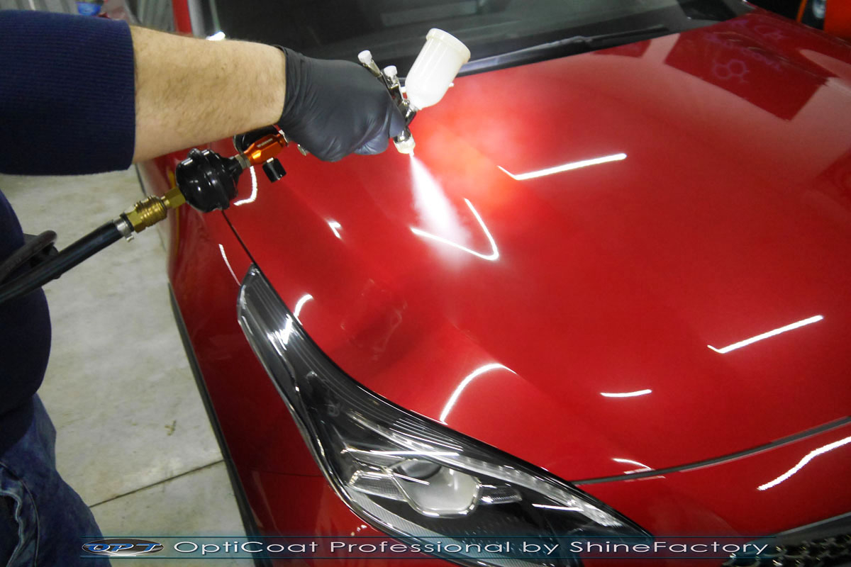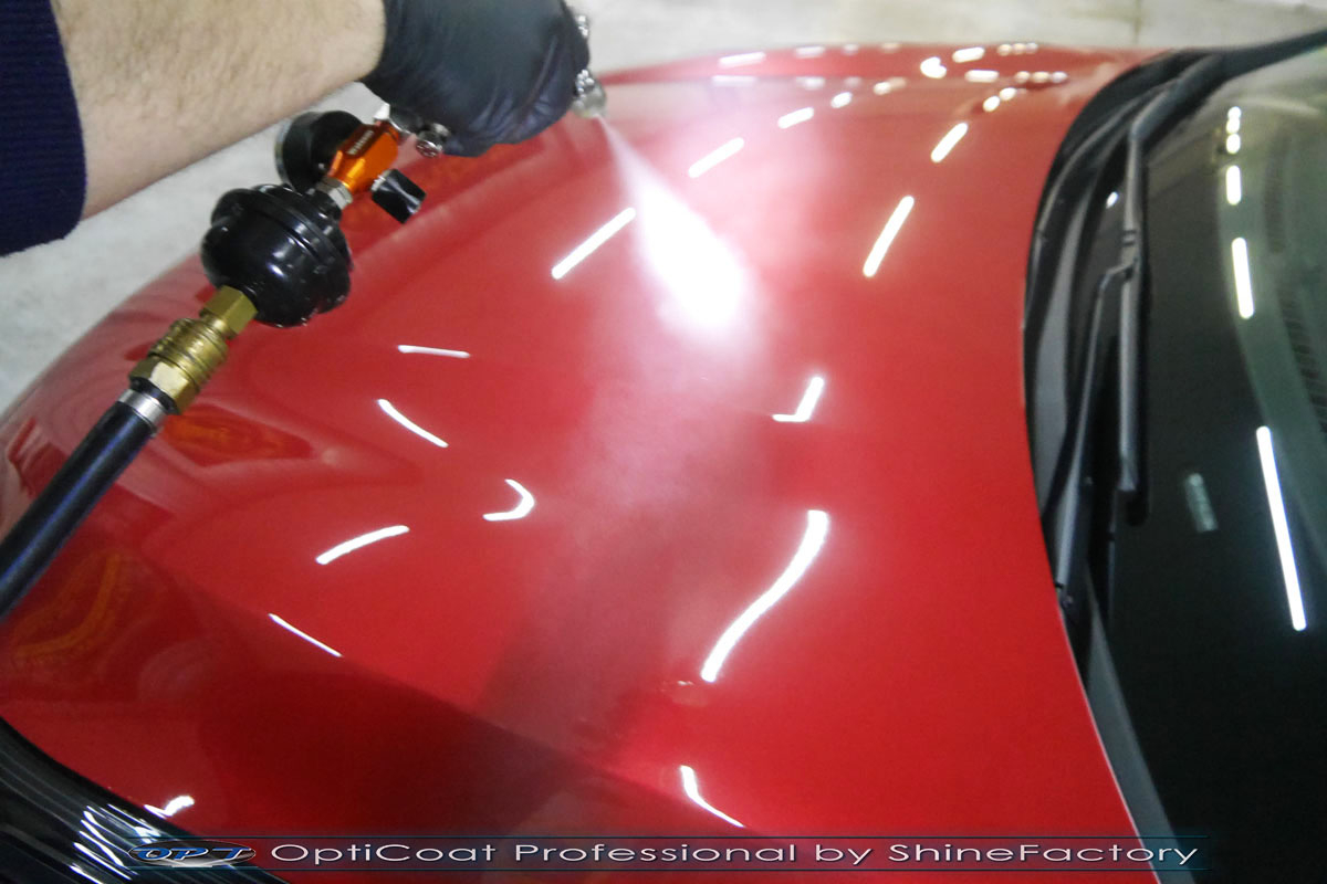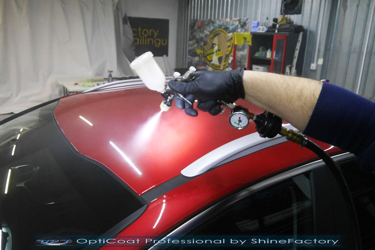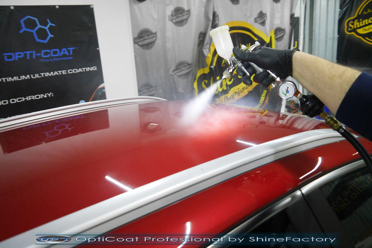 Zapraszamy Państwa do fotorelacji z naszego najczęściej wykonywanego pakietu prac dla nowego auta czyli zabezpieczenia nadwozia pakietem powłok ceramicznych. KIA w czerwonym metalicznym lakierze została nam oddana praktycznie prosto po wyjeździe z salonu. Prace nad nadwoziem rozpoczęliśmy od dokładnego oczyszczenia i odtłuszczenia, następnie lakier przeszedł delikatną korektę w celu usunięcia po fabrycznych oraz po salonowych niedoskonałości. Po tych czynnościach przeszliśmy do aplikacji powłok na wszelkie elementy jak lakier, szyby (bezapelacyjnie najlepszą powłoką Gtechniq G1), felgi (pancerny CQ DLUX), detale itp itd. Najważniejsze, na sam lakier zaaplikowaliśmy maksymalnie grubą natryskową warstwę kompozytu ceramicznego (100% powłoki na aucie) opartego na SiC- OptiCoat Professional połączoną z powłoką GlossCoat, która wzmocni lakier oraz zapewni ochronę, zminimalizowane brudzenie oraz ułatwione do maksimum mycie. Zapraszamy do szerokiej fotorelacji.