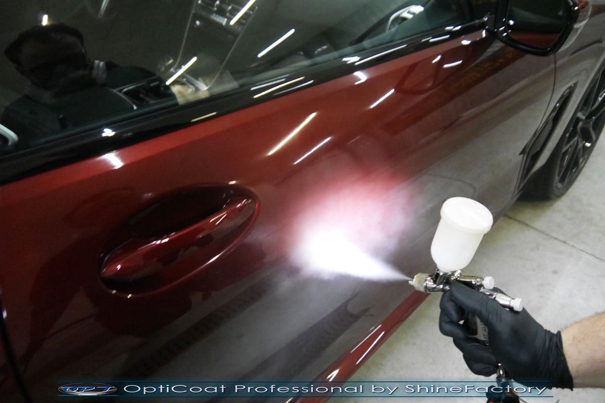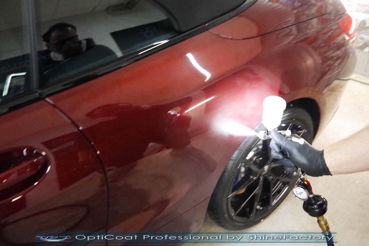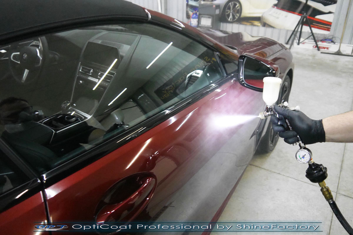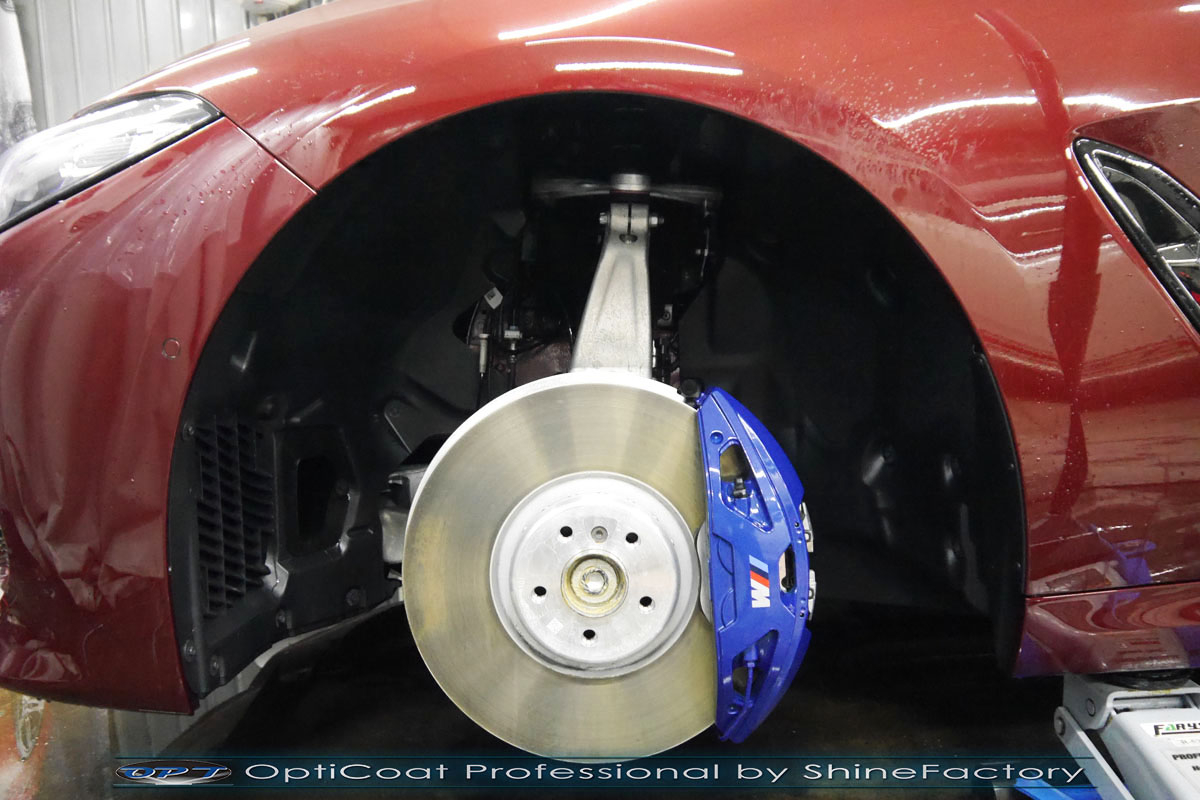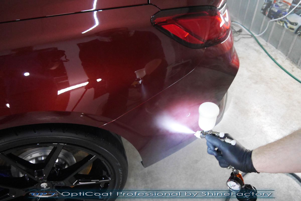 Połączenie bezbarwnych samo-regeneracyjnych folii oraz powłok ceramicznych staje się powoli standardem w idealnym zabezpieczeniu nowego auta. Tym razem mieliśmy przyjemność zająć się nowym autem naszego stałego klienta, BMW 8 cabrio w indywidualnym kolorze lakieru. Auto zostało przez nas maksymalnie zabezpieczone przed wszystkimi możliwymi uszkodzeniami. Wykorzystane do tego zostały najlepsze na rynku bezbarwne folie ochronne SunTek Ultra PPF oraz natryskowa ceramika OptiCoat PRO. Oczywiście prace rozpoczęliśmy od dokładnego oczyszczenia całego nadwozia z naleciałości oraz delikatnej korekty lakieru w celu usunięcia posaloowych i potransportowych niedoskonałości (mikrorysy, wżery). Następnie przystąpiliśmy do aplikacji bezbarwnych folii ochronnych na najbardziej narażone na mocne uszkodzenia el. auta, oczywiście zdecydowaliśmy się jak zawsze wybrać produkt bezkonkurencyjny i nowoczesny na rynku, czyli folie regeneracyjne SunTek Ultra PPF. Po aplikacji folii przeszliśmy do zabezpieczania wszelkich el. auta powłokami, zaaplikowaliśmy w natryskowy sposób grubą warstwę powłoki 9H+ Optimum OptiCoat Professional potwierdzoną testami TUV, pokrywając ją dla maksymalnego efektu wizualnego powłoką GlossCoat, która na końcu została utwardzona w odpowiedniej temp. lampami IR. Oczywiście zajęliśmy się, także zabezpieczeniem pakietem powłok wszelkich innych elementów jak szyby (Gtechniq G1), felgi (DLUX), lampy czy elementy nielakierowane. W celu uzupełnienia kompleksowego detailingu zdjęliśmy z auta koła i zabezpieczyliśmy dokładnie zaciski hamulcowe, felgi oraz nadkola. Zajęliśmy się także wnętrzem, które zostało całościowo zabezpieczone wraz z impregnacją skór. Po kilkudziesięciu godzinach pracy BMW nabrało perfekcyjnego wyglądu, połysku oraz co najważniejsze najmocniejszej praktycznie pancernej ochrony na lata. Zapraszamy do szerokiej fotorelacji!