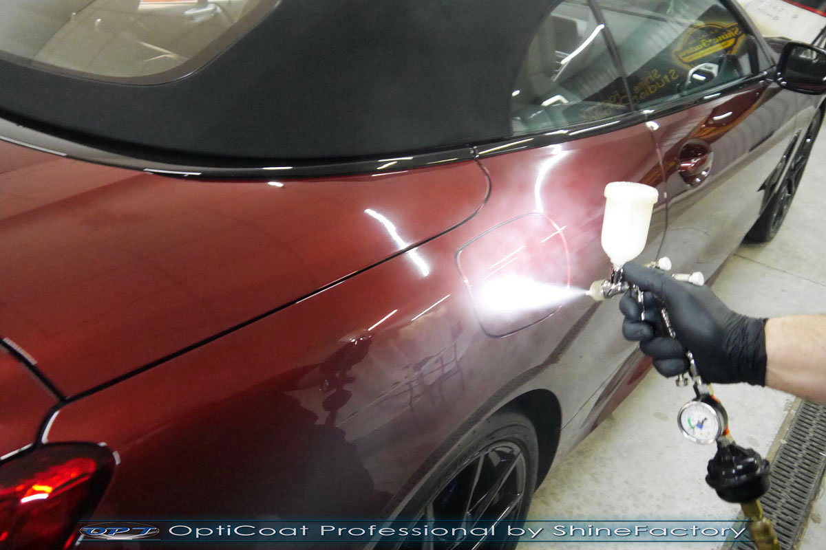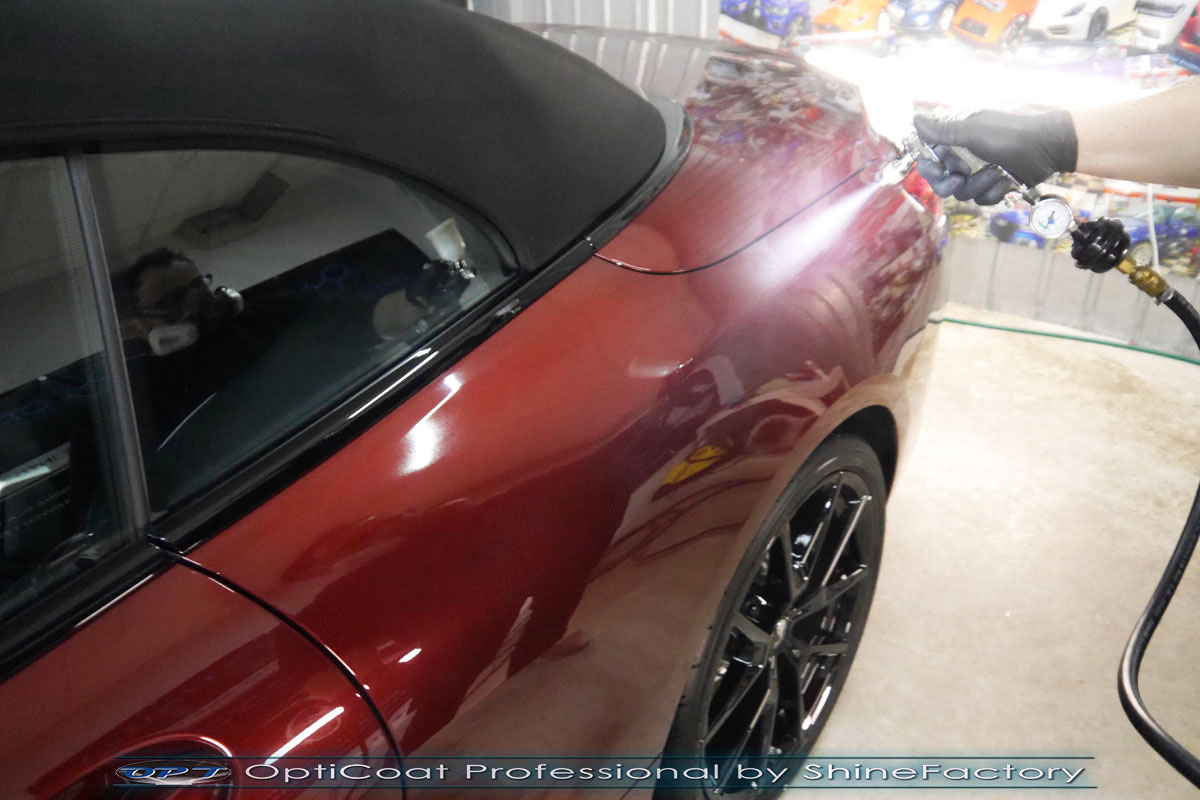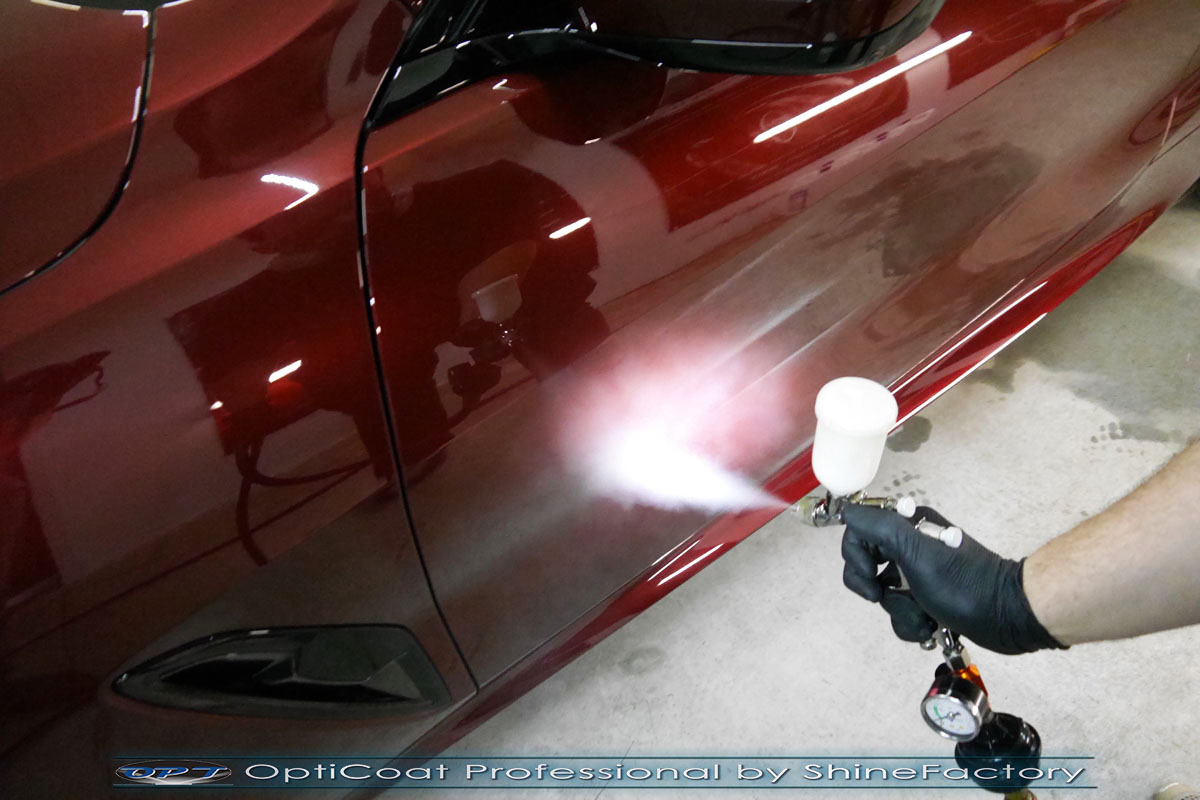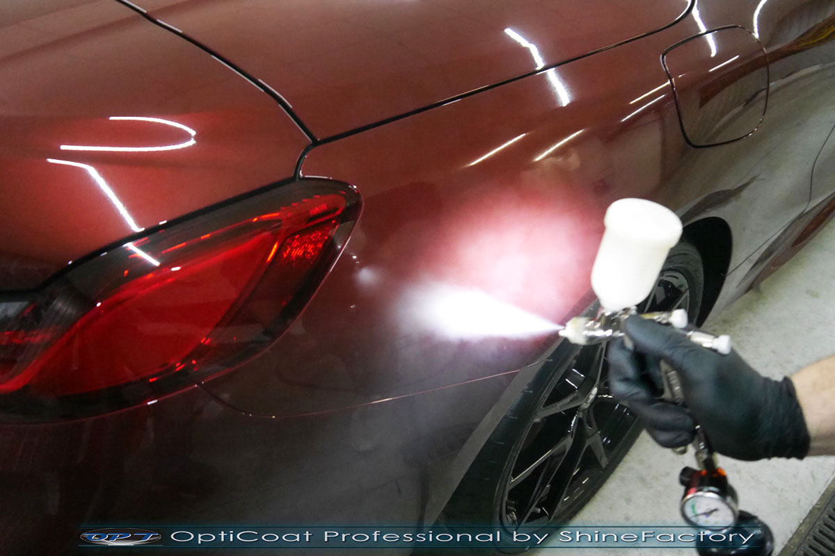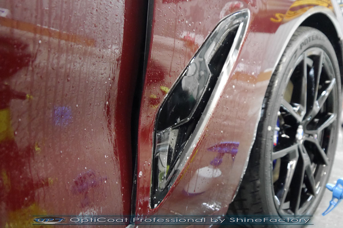 Połączenie bezbarwnych samo-regeneracyjnych folii oraz powłok ceramicznych staje się powoli standardem w idealnym zabezpieczeniu nowego auta. Tym razem mieliśmy przyjemność zająć się nowym autem naszego stałego klienta, BMW 8 cabrio w indywidualnym kolorze lakieru. Auto zostało przez nas maksymalnie zabezpieczone przed wszystkimi możliwymi uszkodzeniami. Wykorzystane do tego zostały najlepsze na rynku bezbarwne folie ochronne SunTek Ultra PPF oraz natryskowa ceramika OptiCoat PRO. Oczywiście prace rozpoczęliśmy od dokładnego oczyszczenia całego nadwozia z naleciałości oraz delikatnej korekty lakieru w celu usunięcia posaloowych i potransportowych niedoskonałości (mikrorysy, wżery). Następnie przystąpiliśmy do aplikacji bezbarwnych folii ochronnych na najbardziej narażone na mocne uszkodzenia el. auta, oczywiście zdecydowaliśmy się jak zawsze wybrać produkt bezkonkurencyjny i nowoczesny na rynku, czyli folie regeneracyjne SunTek Ultra PPF. Po aplikacji folii przeszliśmy do zabezpieczania wszelkich el. auta powłokami, zaaplikowaliśmy w natryskowy sposób grubą warstwę powłoki 9H+ Optimum OptiCoat Professional potwierdzoną testami TUV, pokrywając ją dla maksymalnego efektu wizualnego powłoką GlossCoat, która na końcu została utwardzona w odpowiedniej temp. lampami IR. Oczywiście zajęliśmy się, także zabezpieczeniem pakietem powłok wszelkich innych elementów jak szyby (Gtechniq G1), felgi (DLUX), lampy czy elementy nielakierowane. W celu uzupełnienia kompleksowego detailingu zdjęliśmy z auta koła i zabezpieczyliśmy dokładnie zaciski hamulcowe, felgi oraz nadkola. Zajęliśmy się także wnętrzem, które zostało całościowo zabezpieczone wraz z impregnacją skór. Po kilkudziesięciu godzinach pracy BMW nabrało perfekcyjnego wyglądu, połysku oraz co najważniejsze najmocniejszej praktycznie pancernej ochrony na lata. Zapraszamy do szerokiej fotorelacji!