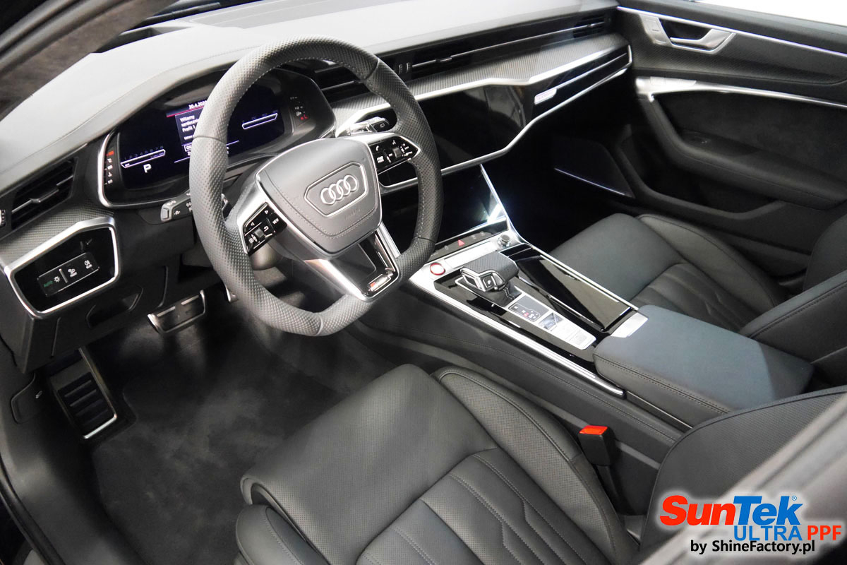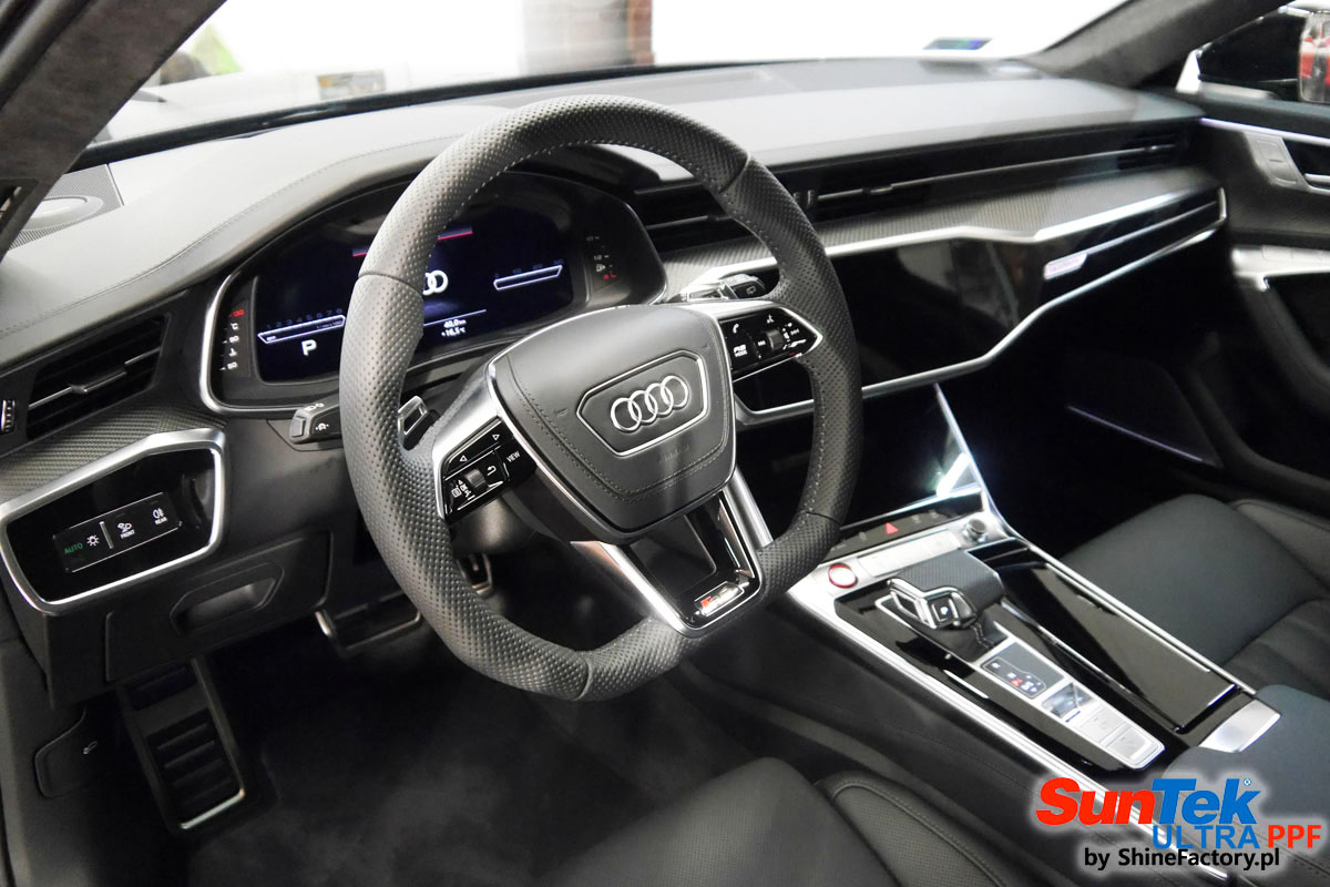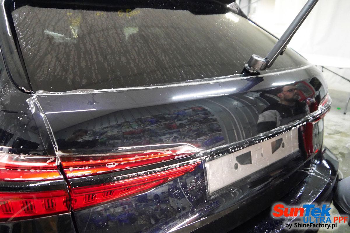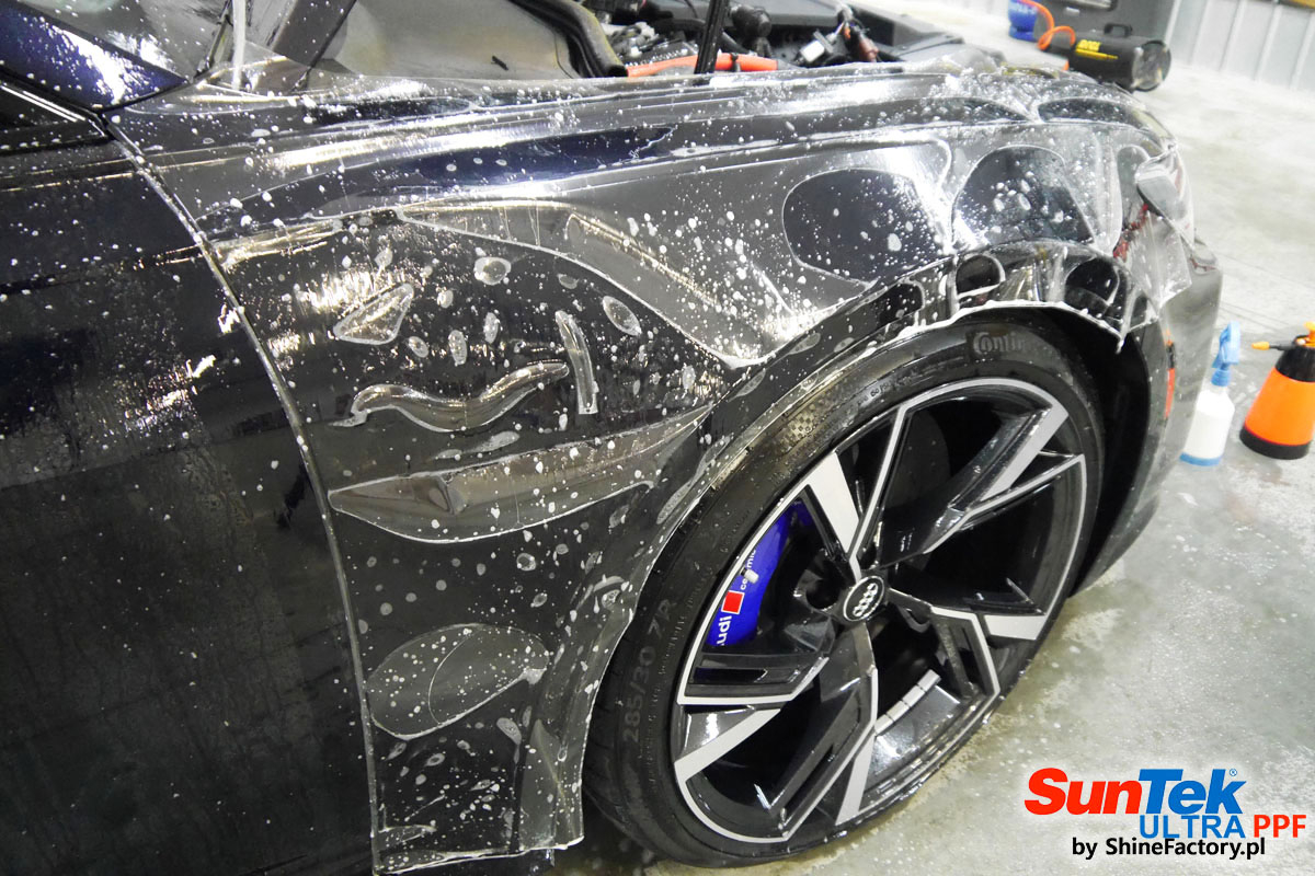 Zabezpieczenie frontów aut bezbarwnymi foliami ochronnymi staje się powoli standardem, coraz częściej także zabezpieczane w ten sposób są auta w całości co daje do tego czasu nieosiągalne perfekcyjne zabezpieczenie i efekt wizualny. Tym razem mieliśmy przyjemność zająć się najnowszą odsłoną Audi RS6, auto trafiło do nas z zerowym przebiegiem w celu najlepszego na świecie zabezpieczenia całego auta. Decyzja padła oczywiście na połączanie znakomitych bezbarwnych folii ochronnych SunTek Ultra PPF z 10 letnią gwarancją oraz pakietu powłok ceramicznych. Standardowo prace zaczęliśmy od bardzo dokładnego oczyszczenia nadwozia z wszelkich naleciałości. Kolejno zajęliśmy się inspekcją lakieru i skorygowaniem oraz doprowadzeniem go do perfekcji. (trzeba pamiętać iż auto od momentu produkcji do wydania klientowi przechodzi naprawdę dłuugą drogę). Po przygotowaniu przeszliśmy do zabezpieczenia auta, najpierw aplikując bezbarwne folie ochronne. Folie zazwyczaj aplikuje się na najbardziej narażone el. auta jak przód, tym razem zdecydowaliśmy się całe auto pokryć najlepszymi na świecie regeneracyjnymi foliami SunTek Ultra aby uzyskać 100% ochronę lakieru, który będzie całkowicie izolowany od środowiska zewnętrznego i nic nie będzie wstanie go uszkodzić. Po aplikacji folii przeszliśmy do zabezpieczania wszelkich el. auta powłokami, zaaplikowaliśmy pakiet powłok na całe auto, folie, szyby (Gtechniq G1), felgi (DLUX), elementy nielakierowane, a także całe wnętrze wraz z zaimpregnowaniem delikatnych skór. Po kilkudziesięciu godzinach pracy Audi nabrało perfekcyjnego wyglądu, połysku oraz co najważniejsze najmocniejszej praktycznie pancernej ochrony na lata. Zapraszamy do szerokiej fotorelacji!