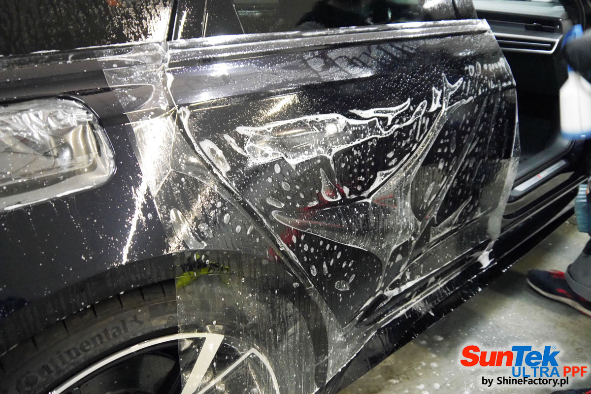 Oklejone zostało dokładnie całe auto w celu ochrony przed wszelkimi uszkodzeniami jak np. odpryski od kamieni, piaskowanie od żwiru drogowego, mocniejszymi rysami, obiciami czy nawet drobnymi obcierkami parkingowymi. Dokładnie oklejone zostały: