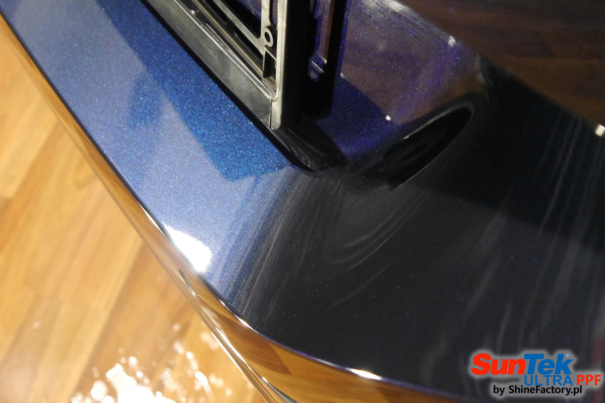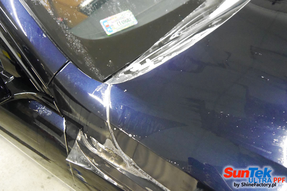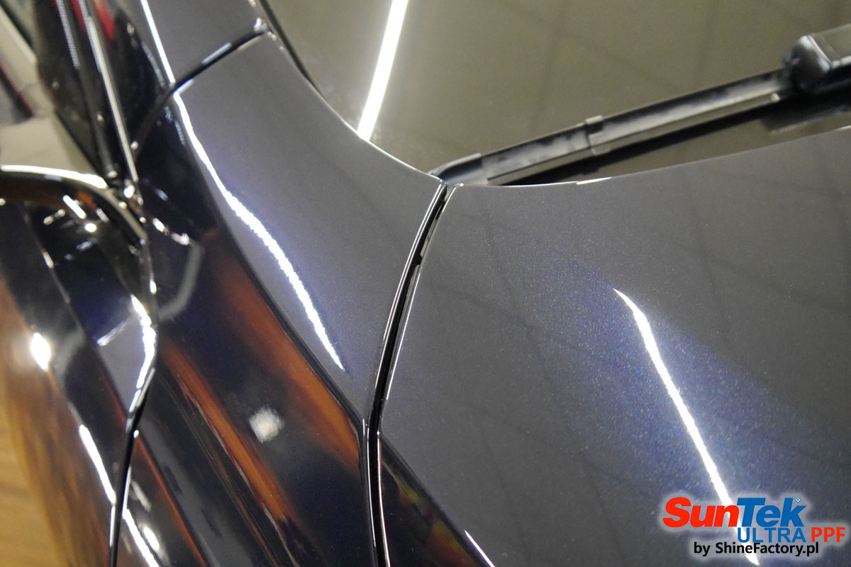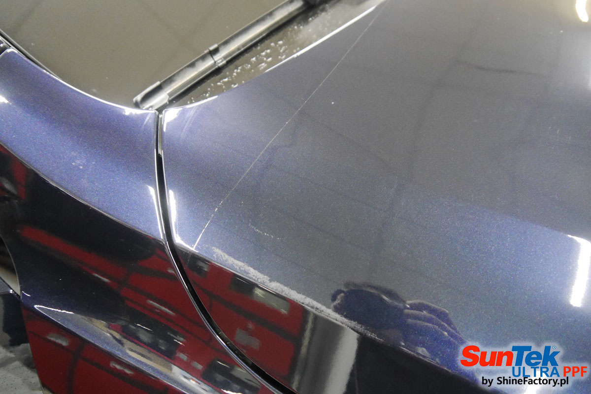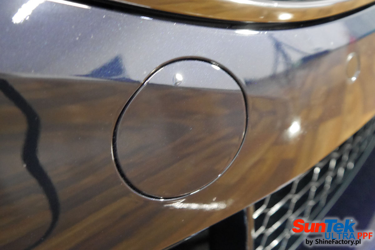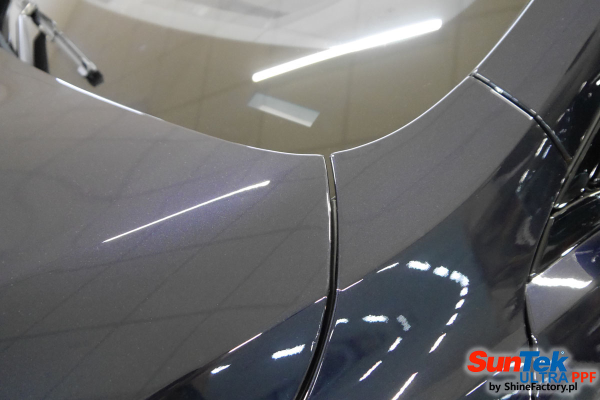 Oklejone zostało praktycznie całe auto w celu ochrony przed wszelkimi uszkodzeniami jak np. odpryski od kamieni, piaskowanie od żwiru drogowego, mocniejszymi rysami, obiciami czy nawet drobnymi obcierkami parkingowymi. Dokładnie oklejone zostały: