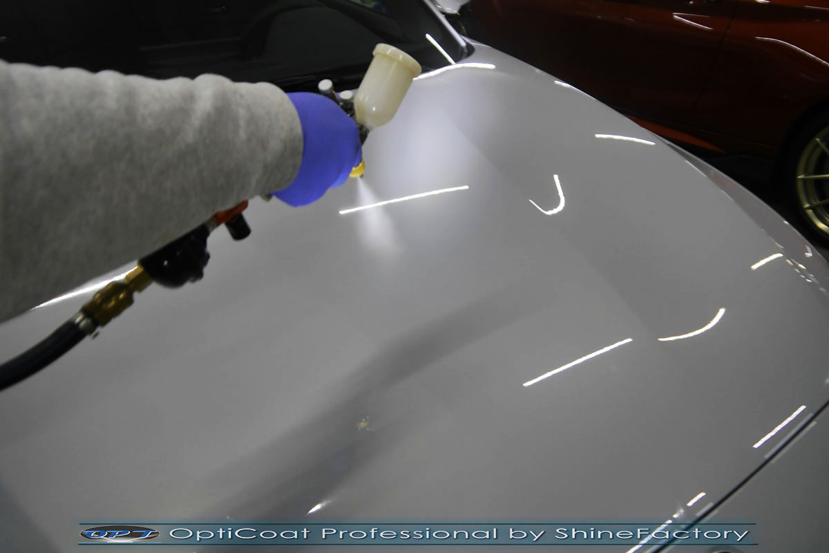 Zapraszamy Państwa do fotorelacji z naszego najczęściej wykonywanego pakietu prac dla nowego auta czyli zabezpieczenia nadwozia pakietem powłok ceramicznych. Najnowsze BMW M2 w wersji competition zostało nam oddane praktycznie prosto po wyjeździe z salonu. Prace nad nadwoziem rozpoczęliśmy od dokładnego oczyszczenia i odtłuszczenia, następnie lakier przeszedł delikatną korektę w celu usunięcia po fabrycznych oraz po salonowych niedoskonałości. Po tych czynnościach przeszliśmy do aplikacji powłok na wszelkie elementy jak lakier, szyby (bezapelacyjnie najlepszą powłoką Gtechniq G1), felgi (pancerny CQ DLUX), detale itp itd. Najważniejsze, na sam lakier zaaplikowaliśmy maksymalnie grubą natryskową warstwę kompozytu ceramicznego (100% powłoki na aucie) opartego na SiC- OptiCoat Professional połączoną z powłoką GlossCoat, która wzmocni lakier oraz zapewni ochronę, zminimalizowane brudzenie oraz ułatwione do maksimum mycie. Zajęliśmy się także wnętrzem którego elementy zostały zaimpregnowane (el. plastikowe, skórzane oraz z alkantary). Zapraszamy do szerokiej fotorelacji.