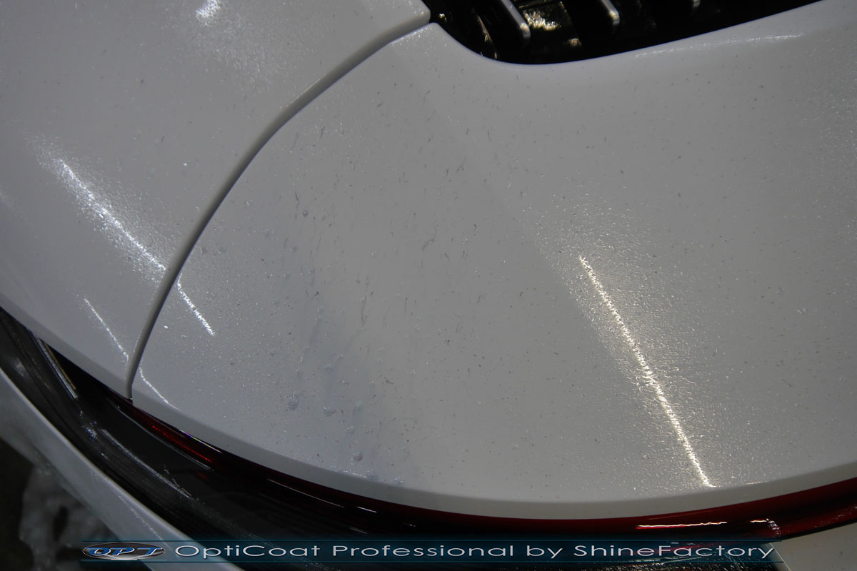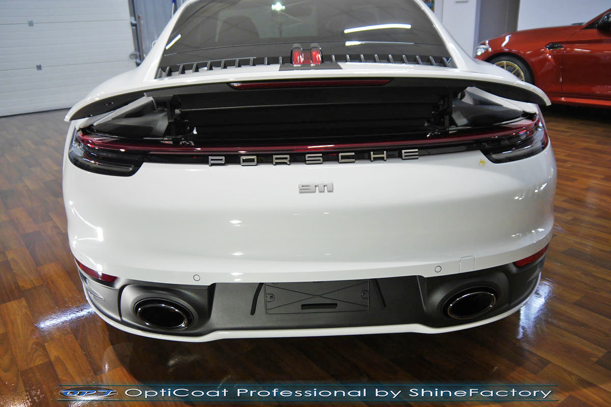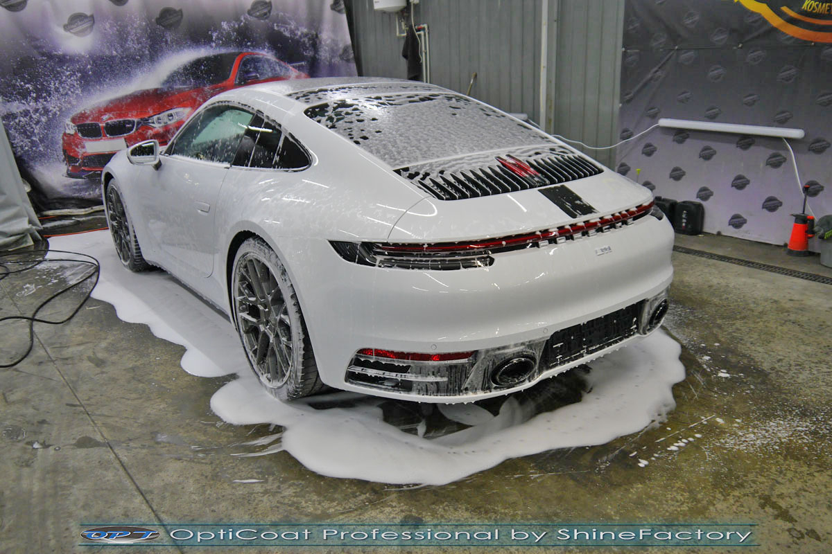 Połączenie bezbarwnych samo-regeneracyjnych folii oraz powłok ceramicznych staje się powoli standardem w idealnym zabezpieczeniu nowego auta. Tym razem mieliśmy przyjemność zająć się nowym Porsche 911. Auto zostało przez nas maksymalnie zabezpieczone przed wszystkimi możliwymi uszkodzeniami. Wykorzystane do tego zostały najlepsze na rynku bezbarwne folie ochronne SunTek Ultra PPF oraz natryskowa ceramika OptiCoat PRO. Oczywiście prace rozpoczęliśmy od dokładnego oczyszczenia całego nadwozia z naleciałości oraz delikatnej korekty lakieru. Następnie przystąpiliśmy do aplikacji bezbarwnych folii ochronnych na najbardziej narażone na mocne uszkodzenia el. auta, oczywiście zdecydowaliśmy się jak zawsze wybrać produkt bezkonkurencyjny i nowoczesny na rynku, czyli folie regeneracyjne SunTek Ultra PPF. Po aplikacji folii przeszliśmy do zabezpieczania wszelkich el. auta powłokami, zaaplikowaliśmy w natryskowy sposób grubą warstwę powłoki 9H+ Optimum OptiCoat Professional potwierdzoną testami TUV, pokrywając ją dla maksymalnego efektu wizualnego powłoką GlossCoat, która na końcu została utwardzona w odpowiedniej temp. lampami IR. Oczywiście zajęliśmy się, także zabezpieczeniem pakietem powłok wszelkich innych elementów jak szyby (Gtechniq G1), felgi (DLUX), lampy czy elementy nielakierowane. Dla dopełnienia zaimpregnowaliśmy wszelkie elementy wnętrza wraz z delikatnymi skórami. Po kilkudziesięciu godzinach pracy Porsche nabrało perfekcyjnego wyglądu, połysku oraz co najważniejsze najmocniejszej praktycznie pancernej ochrony na lata. Zapraszamy do szerokiej fotorelacji!