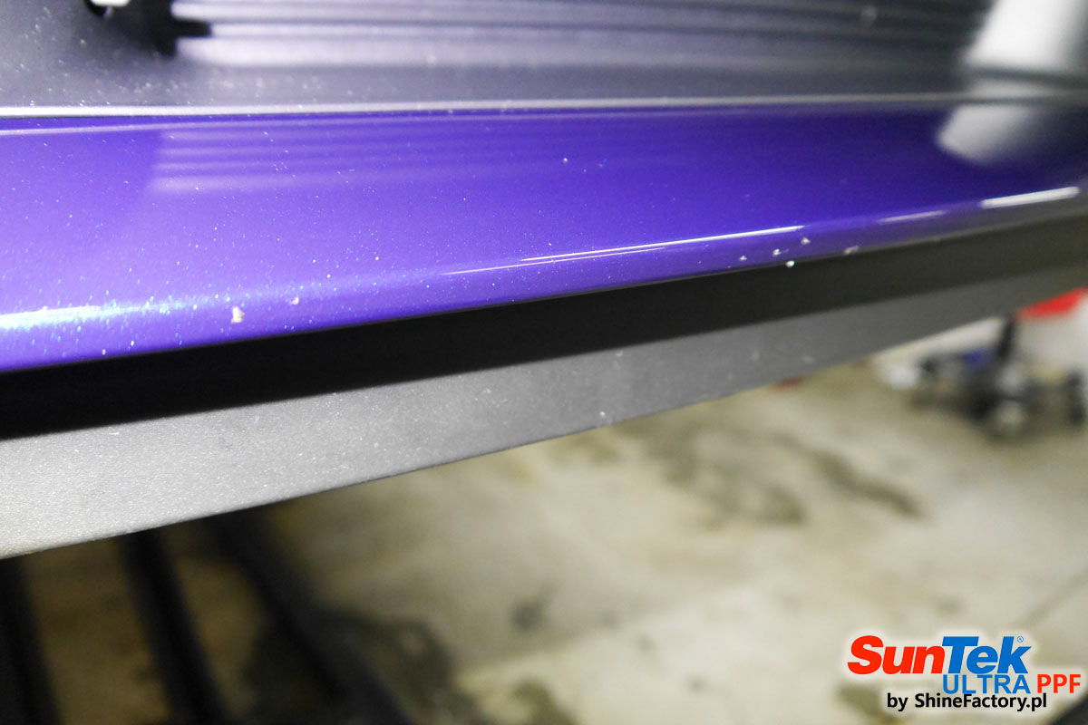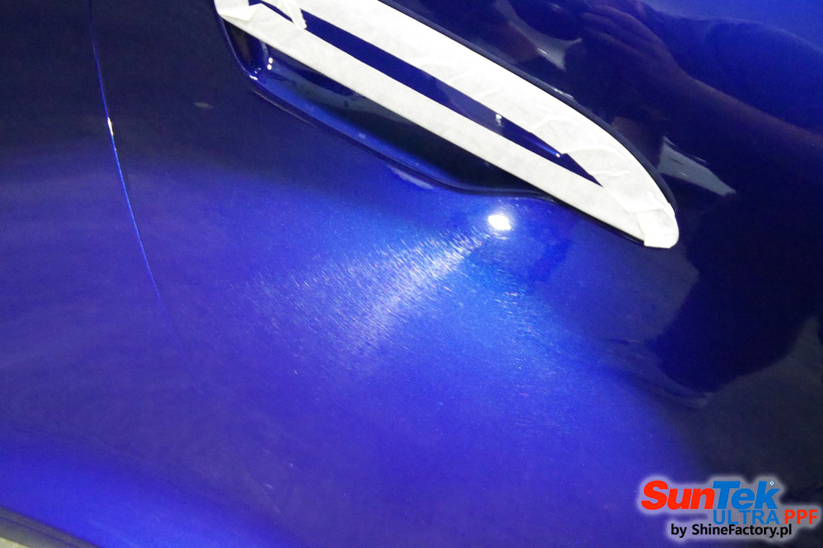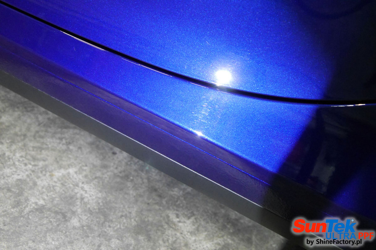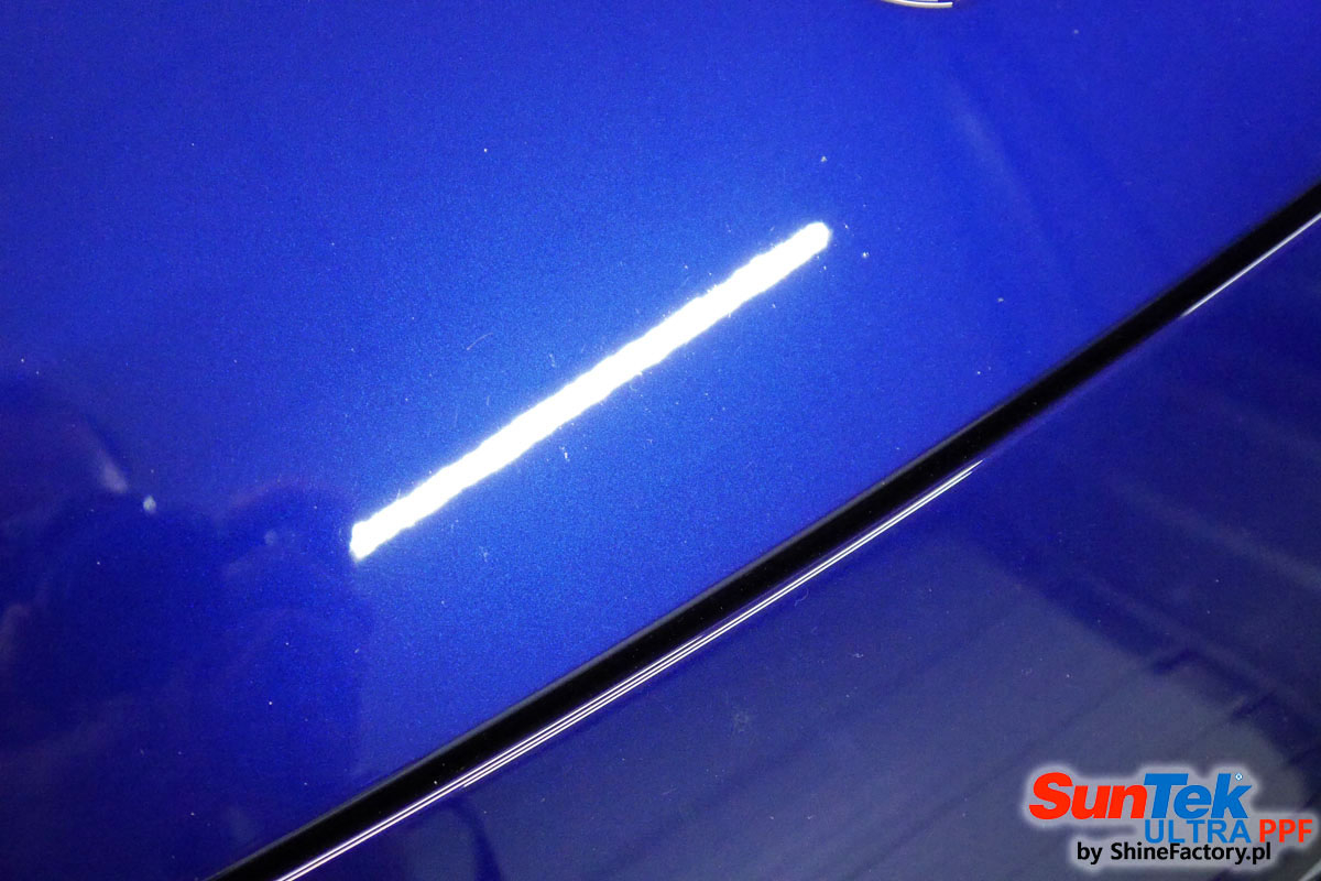 Oklejone zostało praktycznie całe auto w celu ochrony przed wszelkimi uszkodzeniami jak np. odpryski od kamieni, piaskowanie od żwiru drogowego, mocniejszymi rysami, obiciami czy nawet drobnymi obcierkami parkingowymi. Dokładnie oklejone zostały: