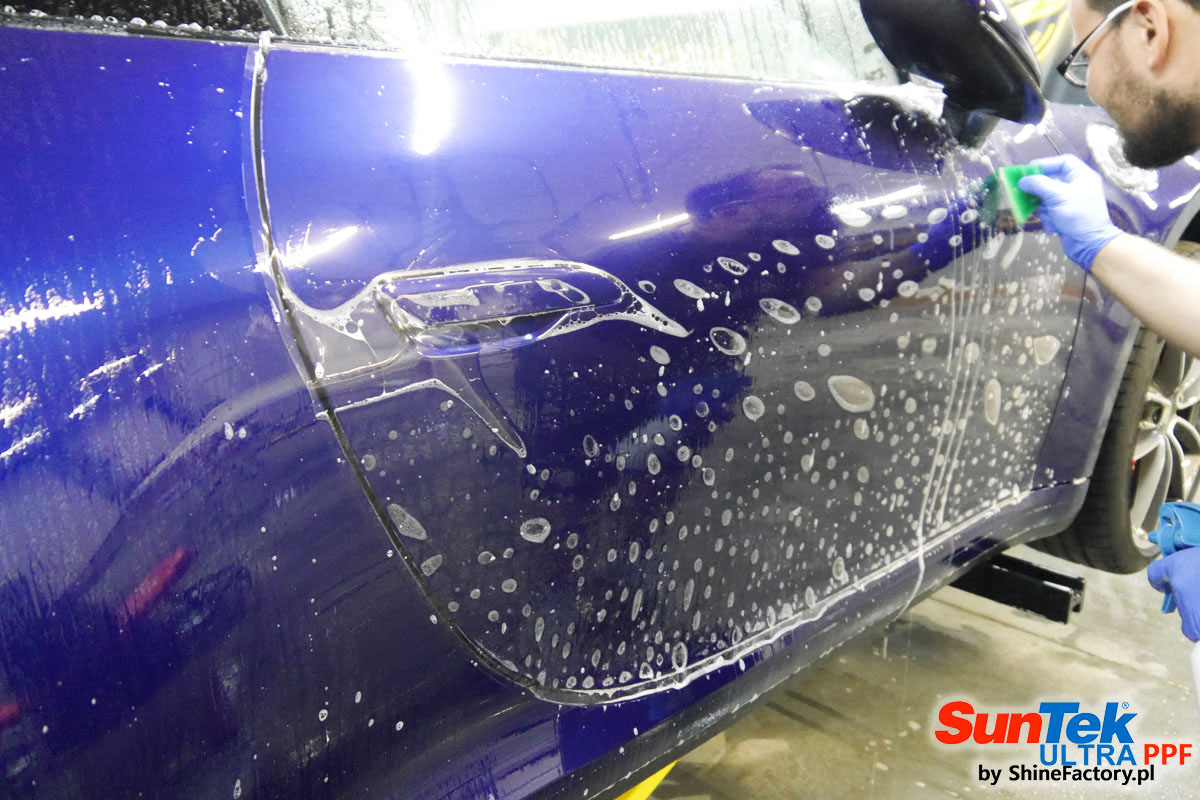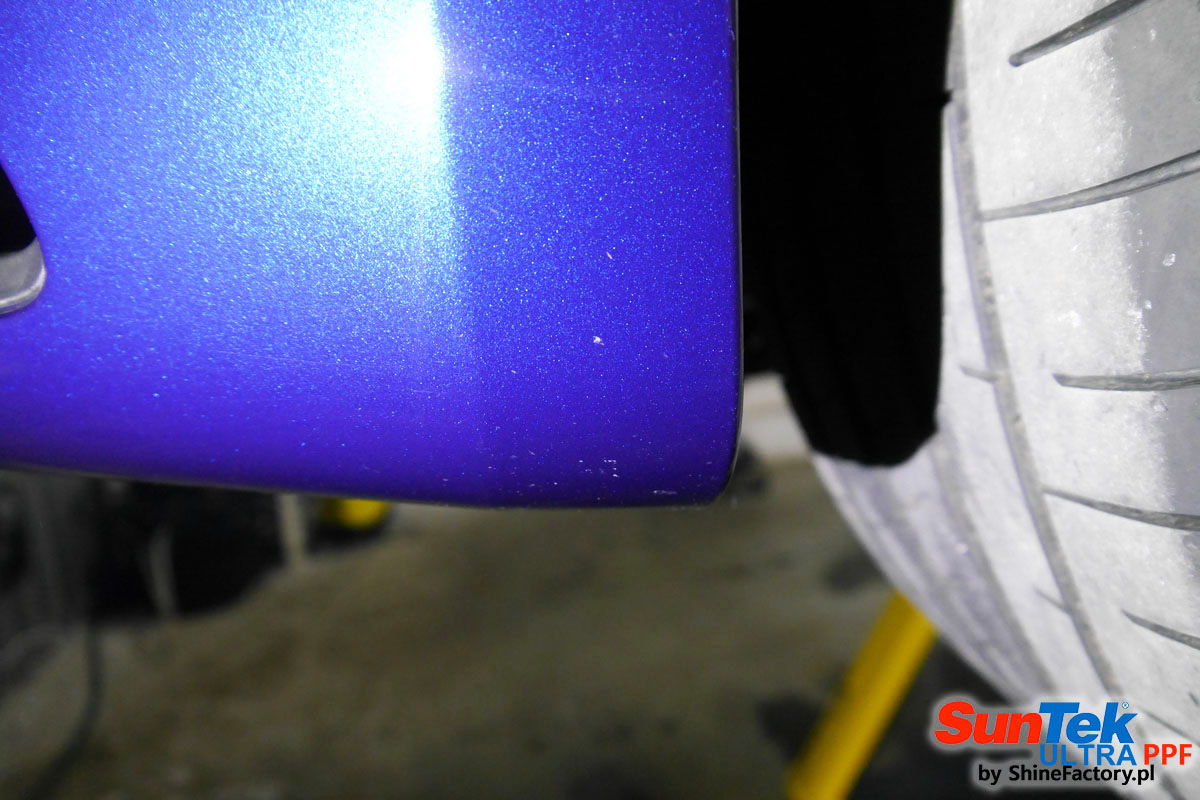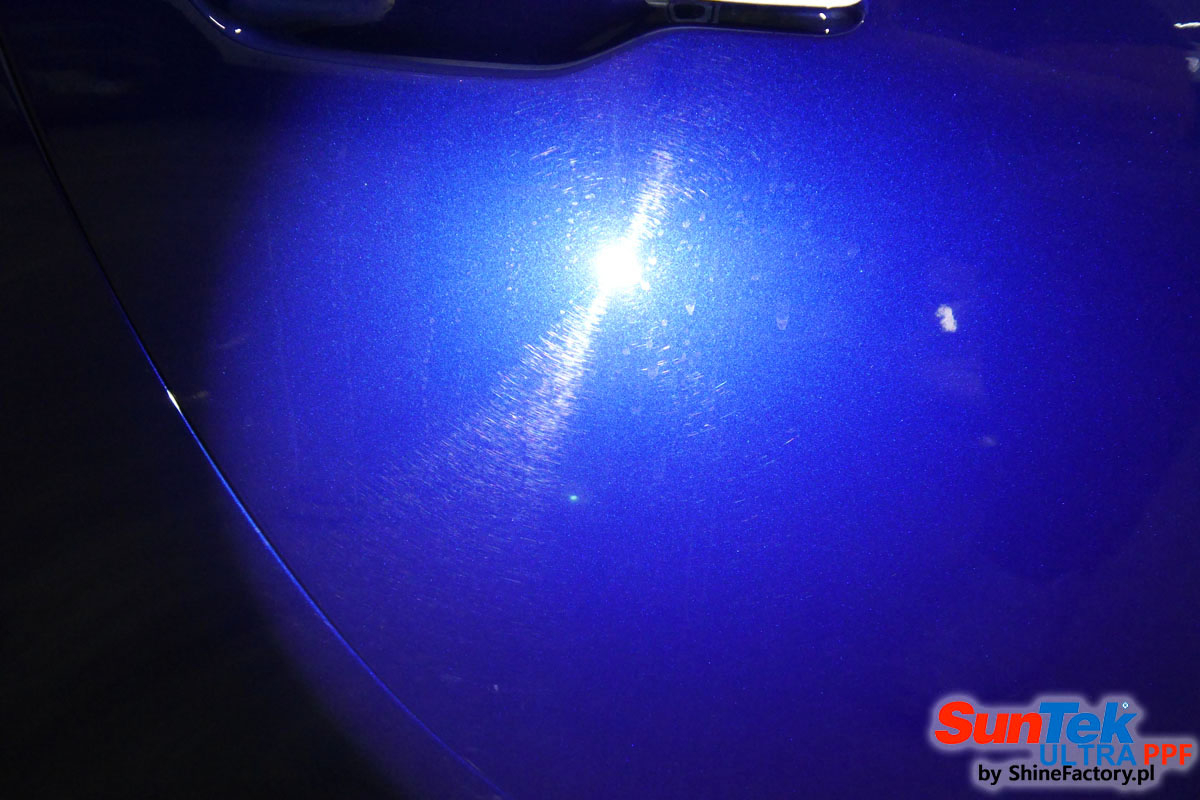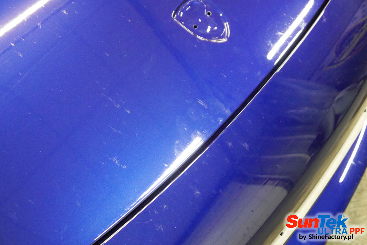 Oklejone zostało praktycznie całe auto w celu ochrony przed wszelkimi uszkodzeniami jak np. odpryski od kamieni, piaskowanie od żwiru drogowego, mocniejszymi rysami, obiciami czy nawet drobnymi obcierkami parkingowymi. Dokładnie oklejone zostały: