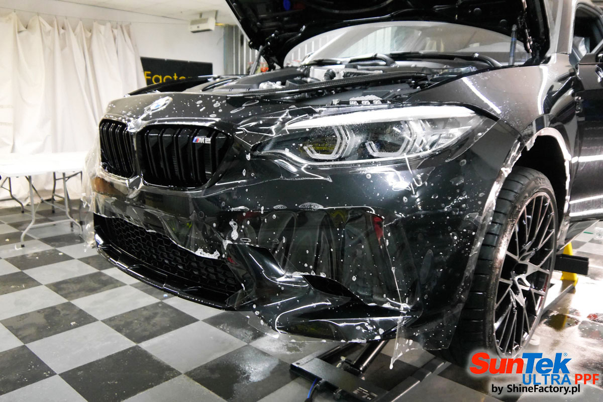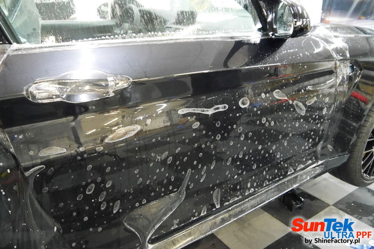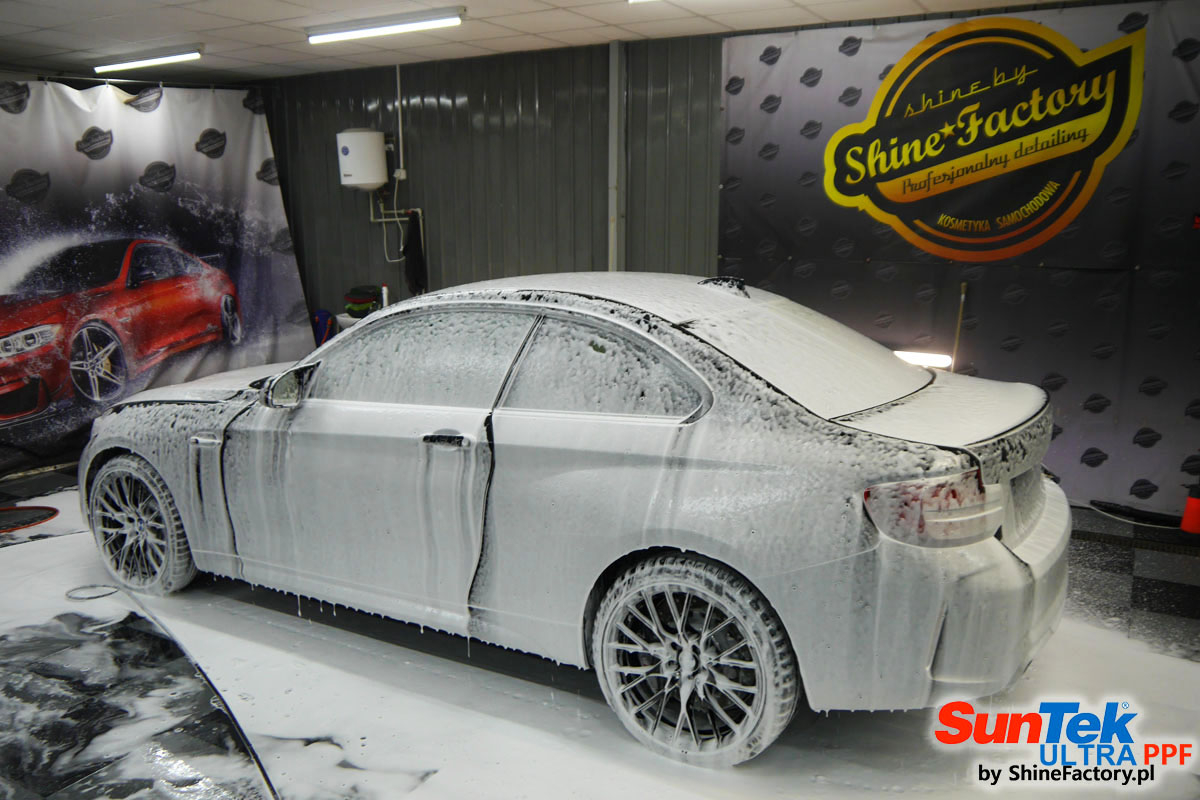 Zabezpieczenie frontów aut bezbarwnymi foliami ochronnymi staje się powoli standardem, coraz częściej także zabezpieczane w ten sposób są auta w całości co daje do tego czasu nieosiągalne perfekcyjne zabezpieczenie i efekt wizualny. Tym razem mieliśmy przyjemność zająć się BMW M2 naszego stałego klienta, auto trafiło do nas na lawecie wprost z salonu. Decyzja wz. z zabezpieczeniem padła oczywiście na połączanie znakomitych bezbarwnych folii ochronnych SunTek Ultra PPF z 10 letnią gwarancją oraz pakietu powłok ceramicznych. Standardowo prace zaczęliśmy od bardzo dokładnego oczyszczenia nadwozia z wszelkich naleciałości. Kolejno zajęliśmy się inspekcją lakieru i skorygowaniem oraz doprowadzeniem go do możliwej perfekcji z defektów posalonowych / potransportowych. Po przygotowaniu przeszliśmy do zabezpieczenia auta, najpierw aplikując bezbarwne folie ochronne. Folie zazwyczaj aplikuje się na najbardziej narażone el. auta jak przód, tym razem zdecydowaliśmy się praktycznie całe auto pokryć najlepszymi na świecie regeneracyjnymi foliami SunTek Ultra aby uzyskać 100% ochronę lakieru, który będzie całkowicie izolowany od środowiska zewnętrznego i nic nie będzie wstanie go uszkodzić. Po aplikacji folii przeszliśmy do zabezpieczania wszelkich el. auta powłokami, zaaplikowaliśmy pakiet powłok na całe auto, folie, szyby (Gtechniq G1), felgi (DLUX), elementy nielakierowane, a także całe wnętrze wraz z zaimpregnowaniem delikatnych skór. Po kilkudziesięciu godzinach pracy BMW nabrało perfekcyjnego wyglądu, połysku oraz co najważniejsze najmocniejszej praktycznie pancernej ochrony na lata. Zapraszamy do szerokiej fotorelacji!