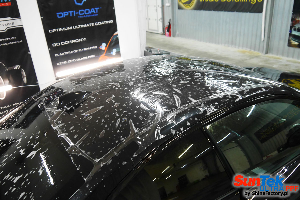 Oklejone zostało praktycznie całe auto w celu ochrony przed wszelkimi uszkodzeniami jak np. odpryski od kamieni, piaskowanie od żwiru drogowego, mocniejszymi rysami, obiciami czy nawet drobnymi obcierkami parkingowymi. Dokładnie oklejone zostały: