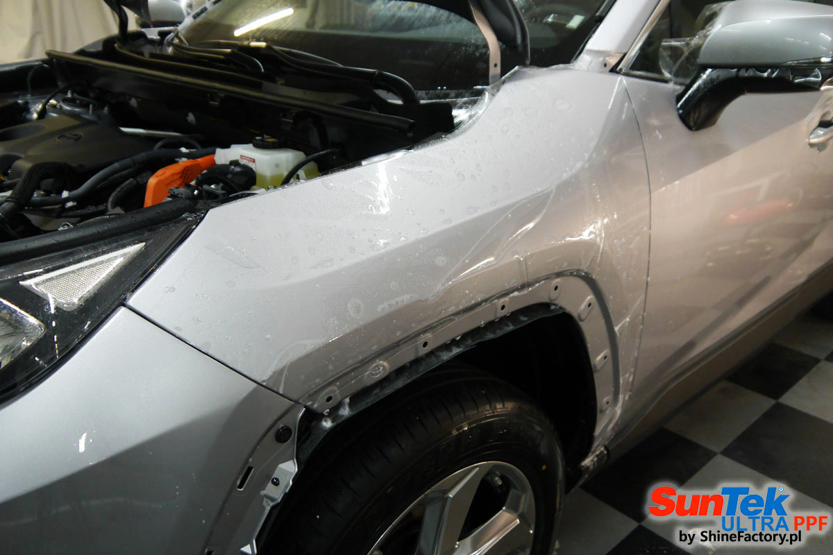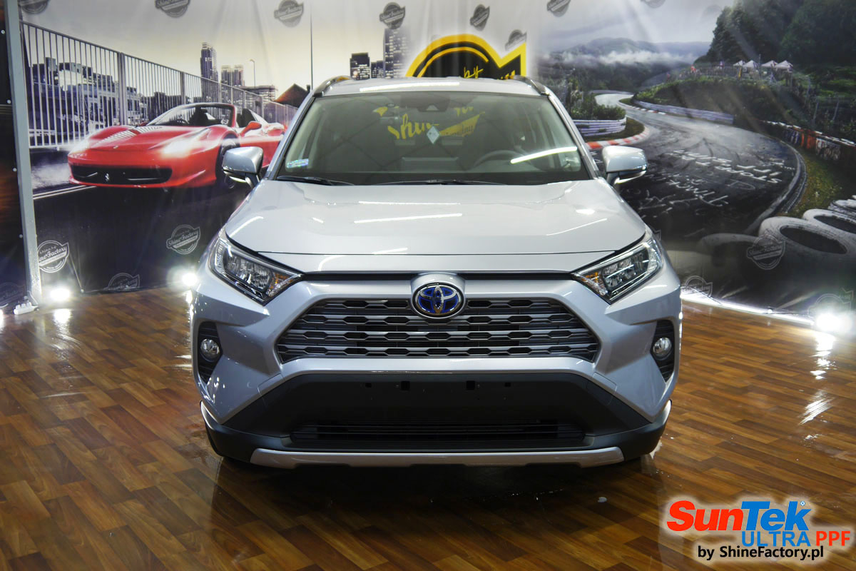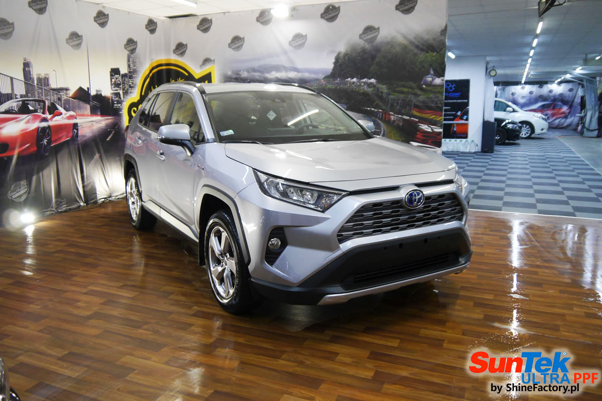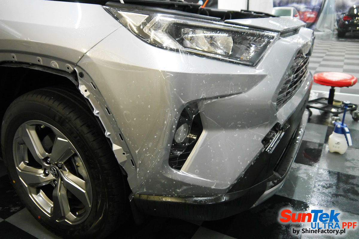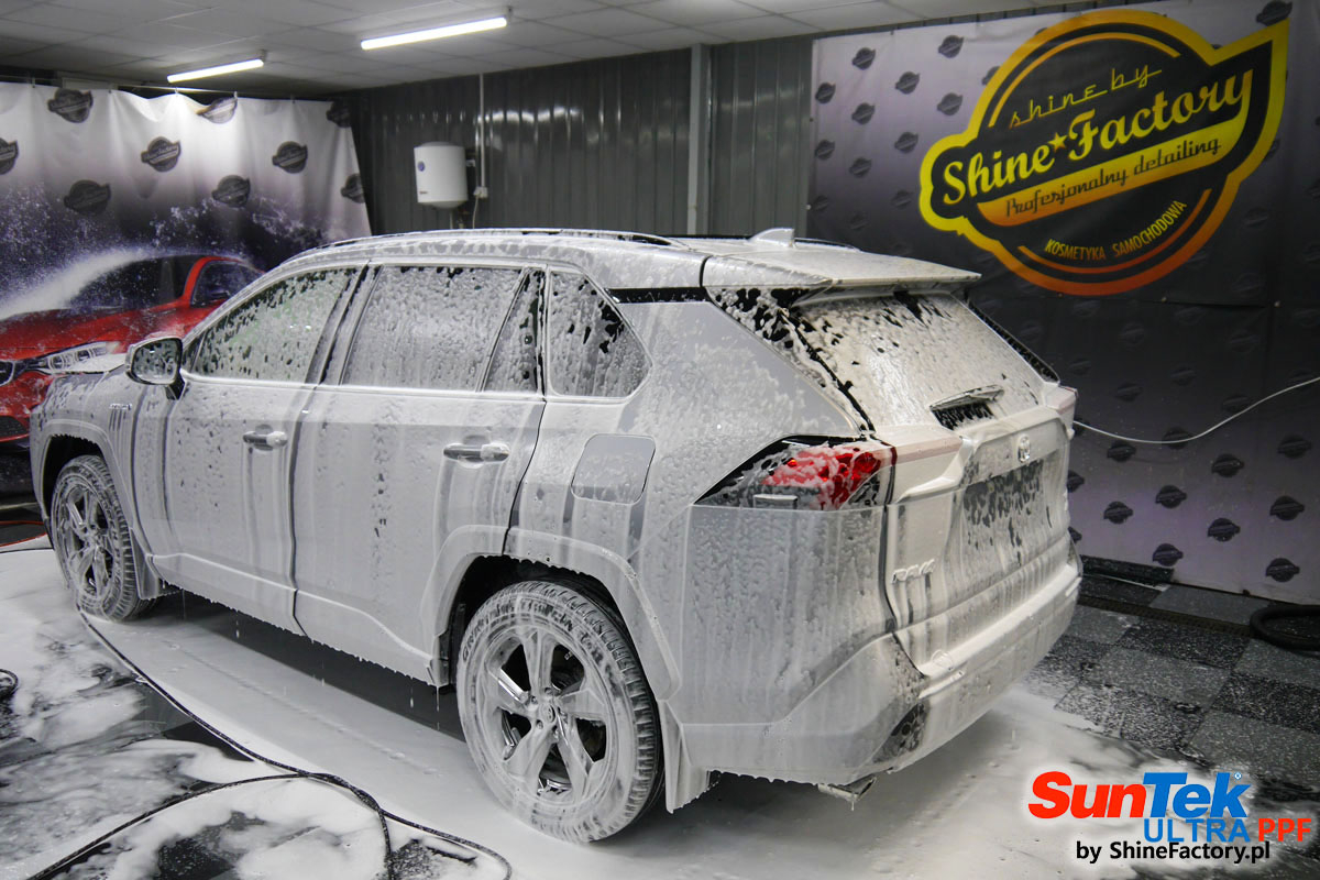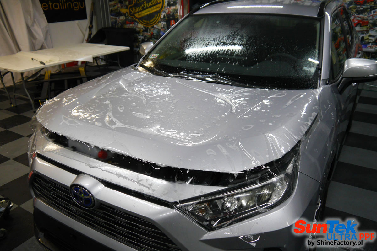 Oczywiście prace rozpoczęliśmy od dokładnego oczyszczenia całego nadwozia z naleciałości. Przeprowadziliśmy delikatną korektę i odtłuściliśmy planowane do oklejenia elementy auta. Następnie przystąpiliśmy do aplikacji bezbarwnych folii ochronnych na najbardziej narażone na mocne uszkodzenia el. auta, oczywiście zdecydowaliśmy się jak zawsze wybrać produkt bezkonkurencyjny i nowoczesny na rynku, czyli folie regeneracyjne SunTek Ultra PPF. Po kilkudziesięciu godzinach pracy Toyota nabrała perfekcyjnego wyglądu, połysku oraz co najważniejsze najmocniejszej praktycznie pancernej ochrony na lata. Zapraszamy do fotorelacji!