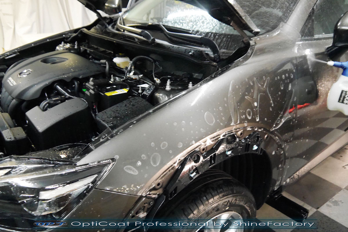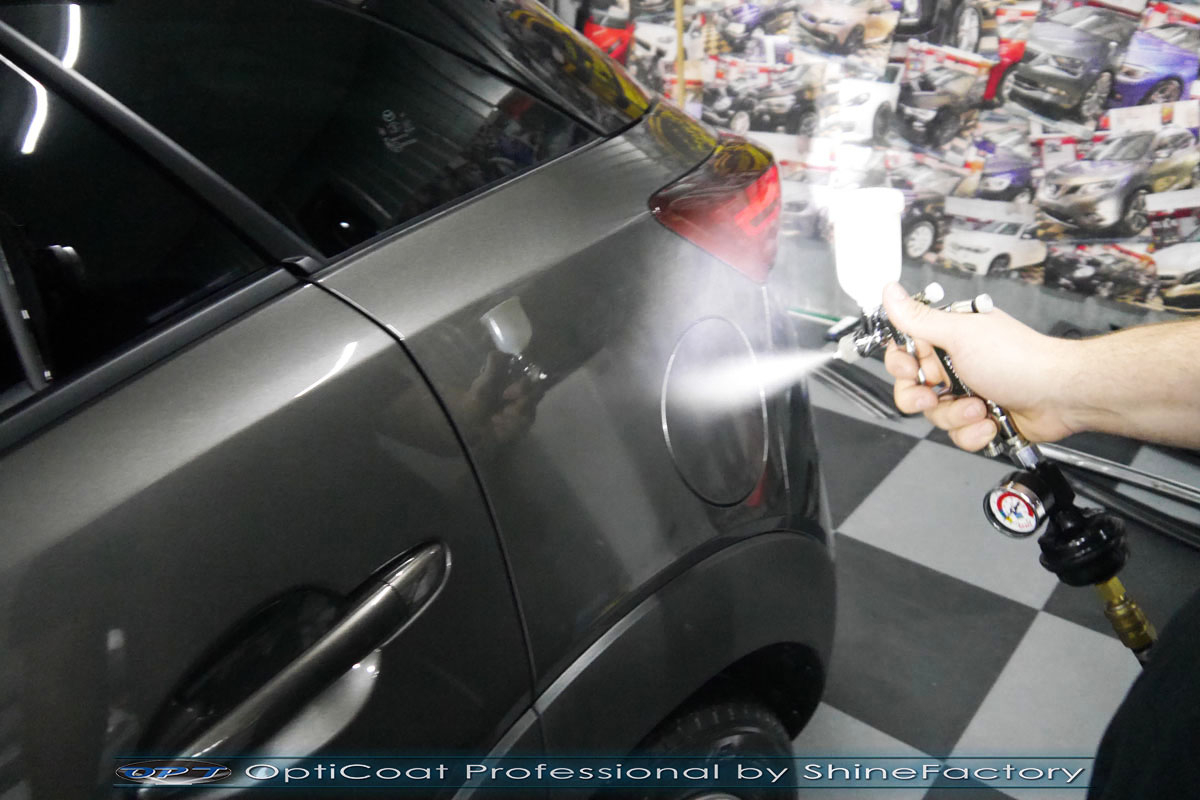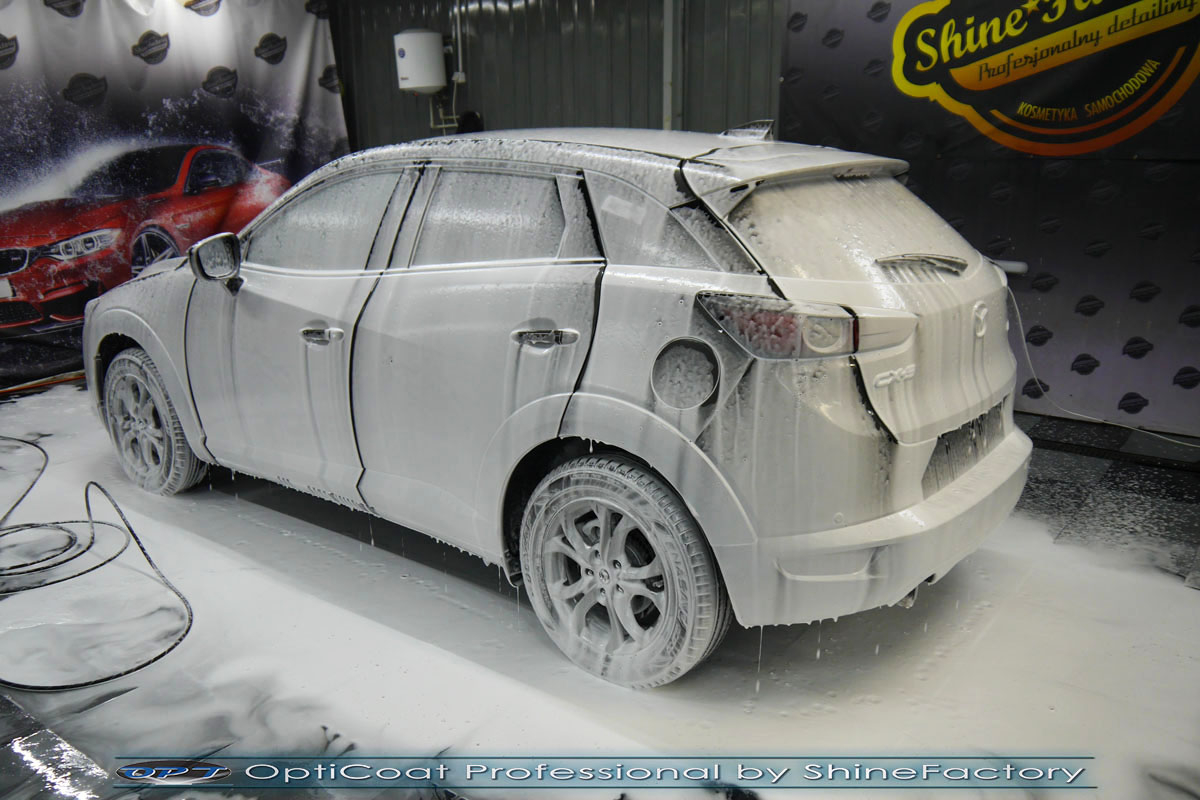 Połączenie bezbarwnych samo-regeneracyjnych folii oraz powłok ceramicznych staje się powoli standardem w idealnym zabezpieczeniu nowego auta. Tym razem mieliśmy przyjemność zająć się nową Mazda CX-3. Auto zostało przez nas maksymalnie zabezpieczone przed wszystkimi możliwymi uszkodzeniami. Wykorzystane do tego zostały najlepsze na rynku bezbarwne folie ochronne SunTek Ultra PPF oraz natryskowa ceramika OptiCoat PRO. Oczywiście prace rozpoczęliśmy od dokładnego oczyszczenia całego nadwozia z naleciałości oraz delikatnej korekty lakieru w celu usunięcia potransporotwych i posalonowych niedoskonałości. Następnie przystąpiliśmy do aplikacji bezbarwnych folii ochronnych na najbardziej narażone na mocne uszkodzenia el. auta, oczywiście zdecydowaliśmy się jak zawsze wybrać produkt bezkonkurencyjny i nowoczesny na rynku, czyli folie regeneracyjne SunTek Ultra PPF. Po aplikacji folii przeszliśmy do zabezpieczania wszelkich el. auta powłokami, zaaplikowaliśmy w natryskowy sposób grubą warstwę powłoki 9H+ Optimum OptiCoat Professional potwierdzoną testami TUV, pokrywając ją dla maksymalnego efektu wizualnego powłoką GlossCoat, która na końcu została utwardzona w odpowiedniej temp. lampami IR. Oczywiście zajęliśmy się, także zabezpieczeniem pakietem powłok wszelkich innych elementów jak szyby (Gtechniq G1), felgi (DLUX), lampy czy elementy nielakierowane. Po kilkudziesięciu godzinach pracy Mazda nabrała perfekcyjnego wyglądu, połysku oraz co najważniejsze najmocniejszej praktycznie pancernej ochrony na lata. Zapraszamy do szerokiej fotorelacji!