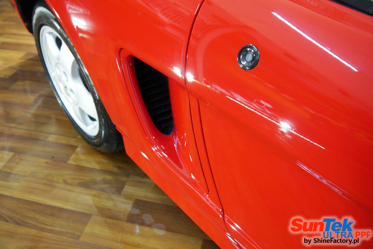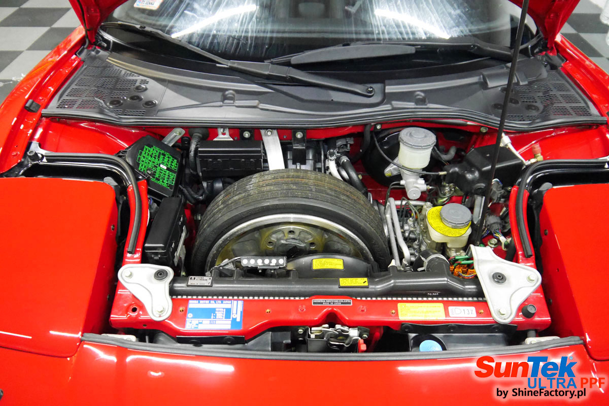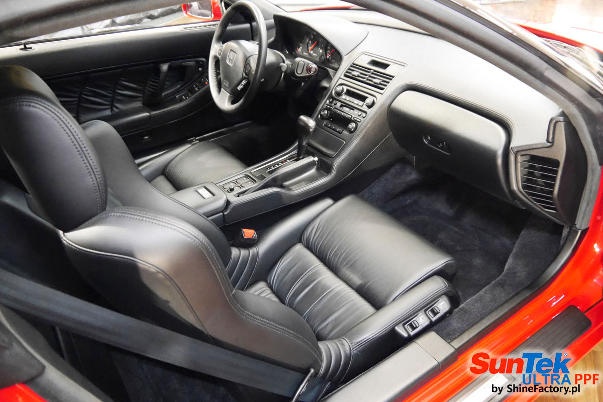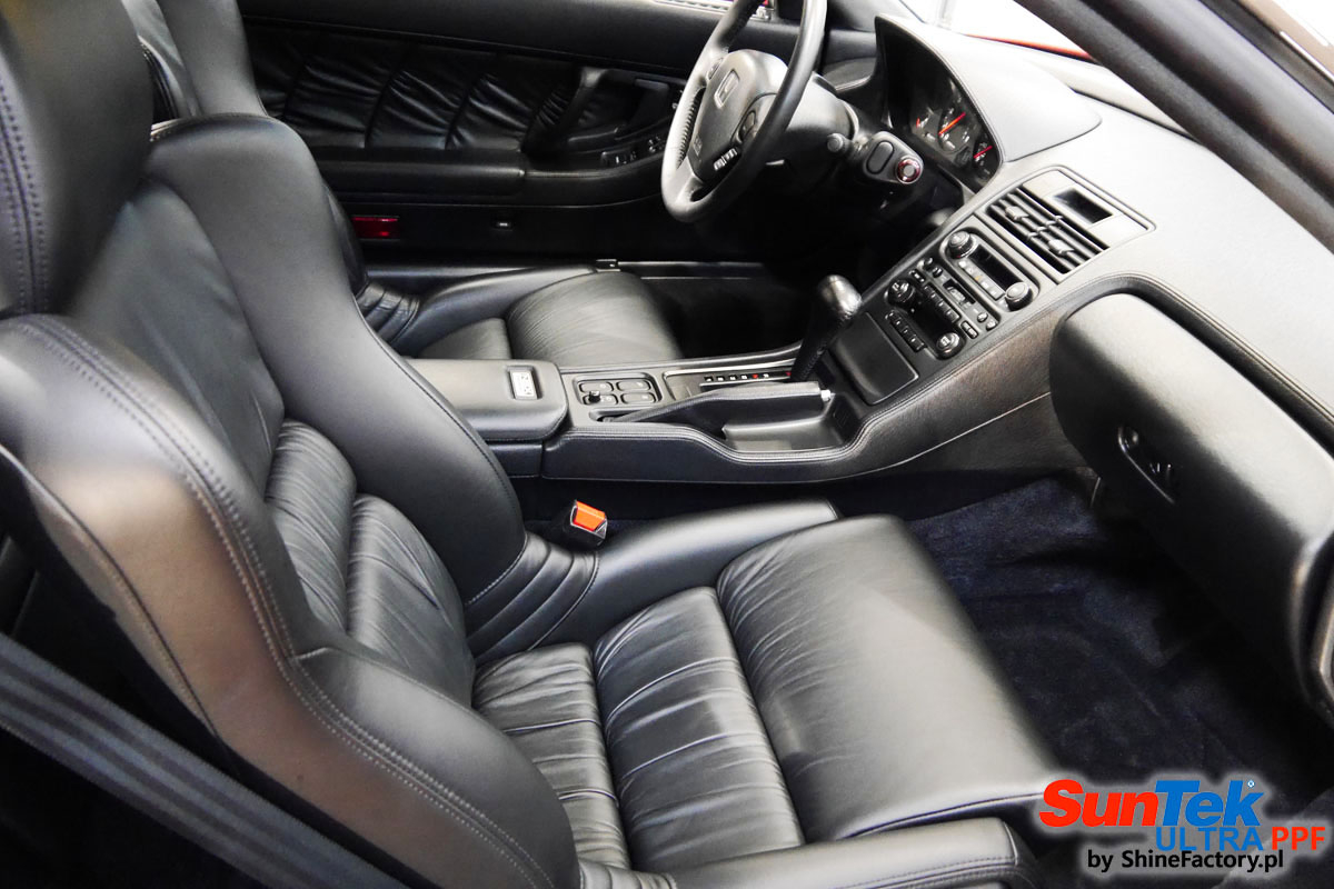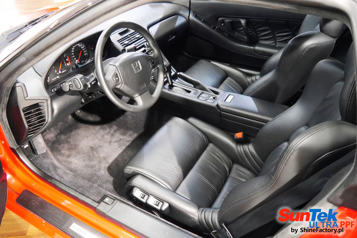 Zabezpieczenie frontów aut bezbarwnymi foliami ochronnymi staje się powoli standardem, coraz częściej także zabezpieczane w ten sposób są auta w całości co daje do tego czasu nieosiągalne perfekcyjne zabezpieczenie i efekt wizualny. Tym razem mieliśmy wyjątkową przyjemność zająć się niesamowitym autem jakim jest Honda NSX, auto trafiło do nas w perfekcyjnym stanie jak na swój wiek. Właściciel poprosił o perfekcyjne zabezpieczenie lakieru auta. Decyzja wz. z zabezpieczeniem padła oczywiście na połączanie znakomitych bezbarwnych folii ochronnych SunTek Ultra PPF z 10 letnią gwarancją oraz pakietu powłok ceramicznych. Standardowo prace zaczęliśmy od bardzo dokładnego oczyszczenia nadwozia z wszelkich naleciałości. Kolejno zajęliśmy się inspekcją lakieru i skorygowaniem oraz doprowadzeniem go do możliwej perfekcji z defektów posalonowych / potransportowych. Po przygotowaniu przeszliśmy do zabezpieczenia auta, najpierw aplikując bezbarwne folie ochronne. Folie zazwyczaj aplikuje się na najbardziej narażone el. auta jak przód, tym razem zdecydowaliśmy się praktycznie całe auto pokryć najlepszymi na świecie regeneracyjnymi foliami SunTek Ultra aby uzyskać 100% ochronę lakieru, który będzie całkowicie izolowany od środowiska zewnętrznego i nic nie będzie wstanie go uszkodzić. Po aplikacji folii przeszliśmy do zabezpieczania wszelkich el. auta powłokami, zaaplikowaliśmy pakiet powłok na całe auto, folie, szyby (Gtechniq G1), felgi (DLUX), elementy nielakierowane, a także całe wnętrze wraz z zaimpregnowaniem skór. Po kilkudziesięciu godzinach pracy Honda nabrała perfekcyjnego wyglądu, połysku oraz co najważniejsze najmocniejszej praktycznie pancernej ochrony na lata. Zapraszamy do szerokiej fotorelacji!