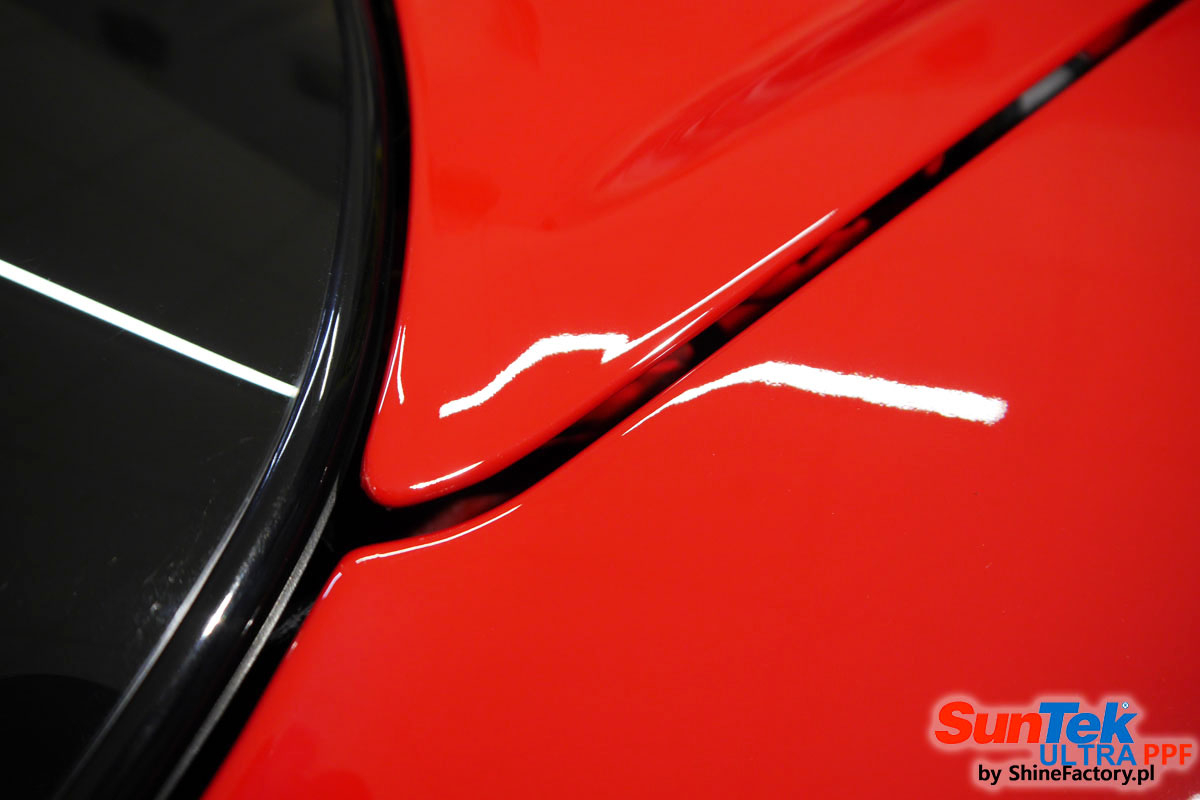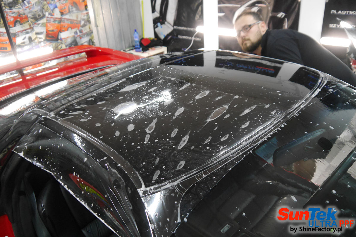Oklejone zostało praktycznie całe auto w celu ochrony przed wszelkimi uszkodzeniami jak np. odpryski od kamieni, piaskowaniem od żwiru drogowego, mocniejszymi rysami, obiciami czy nawet drobnymi obcierkami parkingowymi. Dokładnie oklejone zostały: