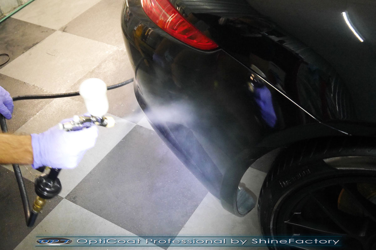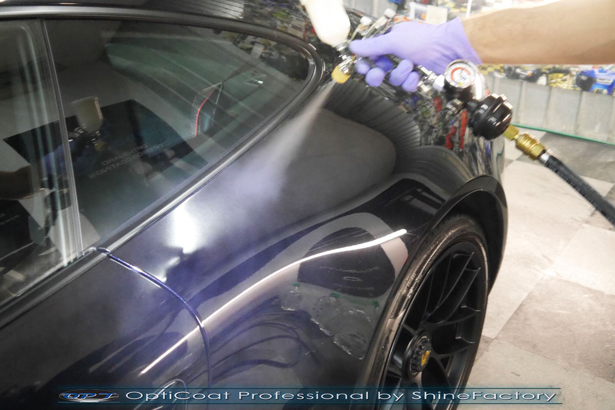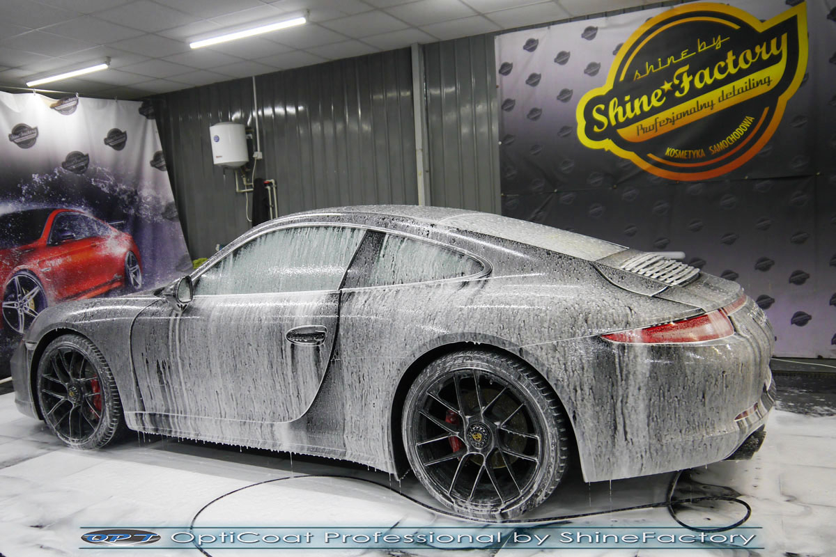 Połączenie bezbarwnych samo-regeneracyjnych folii oraz powłok ceramicznych staje się powoli standardem w idealnym zabezpieczeniu auta. Tym razem mieliśmy przyjemność zająć się Porsche 911. Auto trafiło do nas kiedy to po kilku tysiącach kilometrów przebiegu właściciel zauważył jak strasznie delikatny jest lakier jego auta.. Decyzja wz. z zabezpieczeniem padła oczywiście na połączanie znakomitych bezbarwnych folii ochronnych SunTek Ultra PPF z 10 letnią gwarancją oraz pakietu powłok ceramicznych. Auto zostało przez nas maksymalnie zabezpieczone przed wszystkimi możliwymi uszkodzeniami. Wykorzystane do tego zostały najlepsze na rynku bezbarwne folie ochronne SunTek Ultra PPF oraz natryskowa ceramika OptiCoat PRO. Oczywiście prace rozpoczęliśmy od dokładnego oczyszczenia całego nadwozia z naleciałości oraz korekty lakieru zniszczonego lakieru. Następnie przystąpiliśmy do aplikacji bezbarwnych folii ochronnych na najbardziej narażone na mocne uszkodzenia el. auta, oczywiście zdecydowaliśmy się jak zawsze wybrać produkt bezkonkurencyjny i nowoczesny na rynku, czyli folie regeneracyjne SunTek Ultra PPF. Po aplikacji folii przeszliśmy do zabezpieczania wszelkich el. auta powłokami, zaaplikowaliśmy w natryskowy sposób grubą warstwę powłoki 9H+ Optimum OptiCoat Professional potwierdzoną testami TUV, pokrywając ją dla maksymalnego efektu wizualnego powłoką GlossCoat, która na końcu została utwardzona w odpowiedniej temp. lampami IR. Oczywiście zajęliśmy się, także zabezpieczeniem pakietem powłok wszelkich innych elementów jak szyby (Gtechniq G1), felgi (DLUX), lampy czy elementy nielakierowane. Zajęliśmy się także wnętrzem, które zostało dokładnie oczyszczone / wyprane oraz zabezpieczone odżywkami w każdym elemencie Po kilkudziesięciu godzinach pracy Porsche nabrało perfekcyjnego wyglądu, połysku oraz co najważniejsze najmocniejszej praktycznie pancernej ochrony na lata. Zapraszamy do szerokiej fotorelacji!