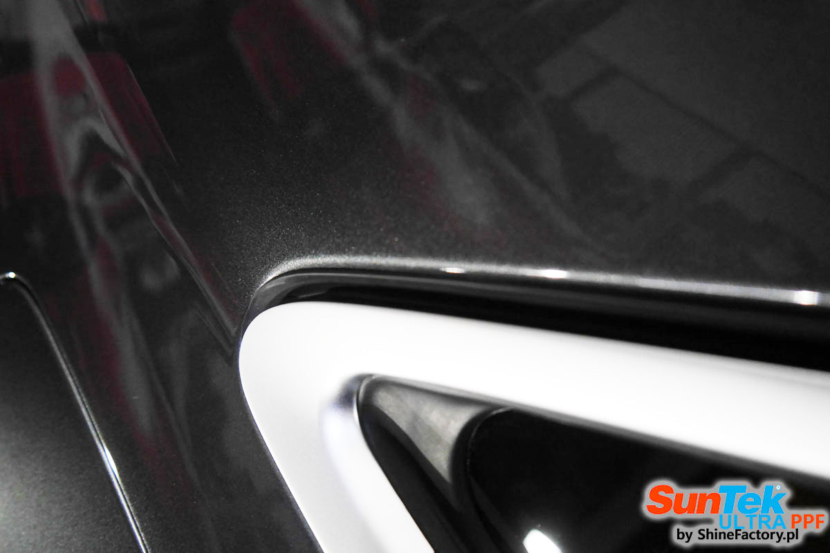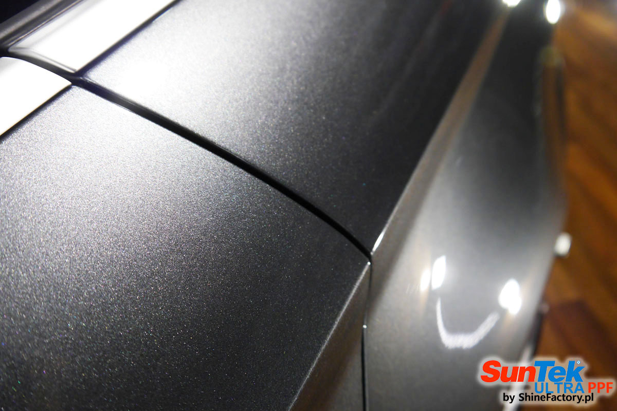 Oklejone zostało praktycznie całe auto w celu ochrony przed wszelkimi uszkodzeniami jak np. odpryski od kamieni, piaskowanie od żwiru drogowego, mocniejszymi rysami, obiciami czy nawet drobnymi obcierkami parkingowymi. Dokładnie oklejone zostały: