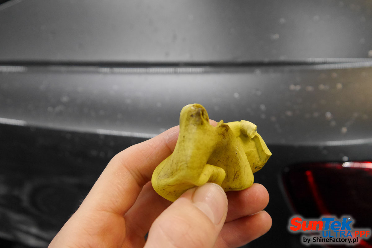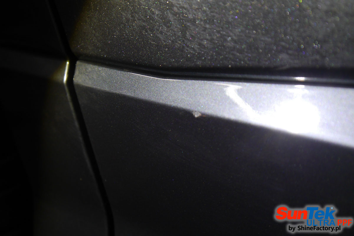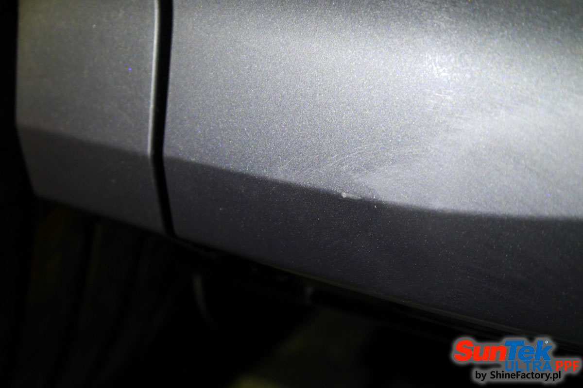 Oklejone zostało praktycznie całe auto w celu ochrony przed wszelkimi uszkodzeniami jak np. odpryski od kamieni, piaskowanie od żwiru drogowego, mocniejszymi rysami, obiciami czy nawet drobnymi obcierkami parkingowymi. Dokładnie oklejone zostały: