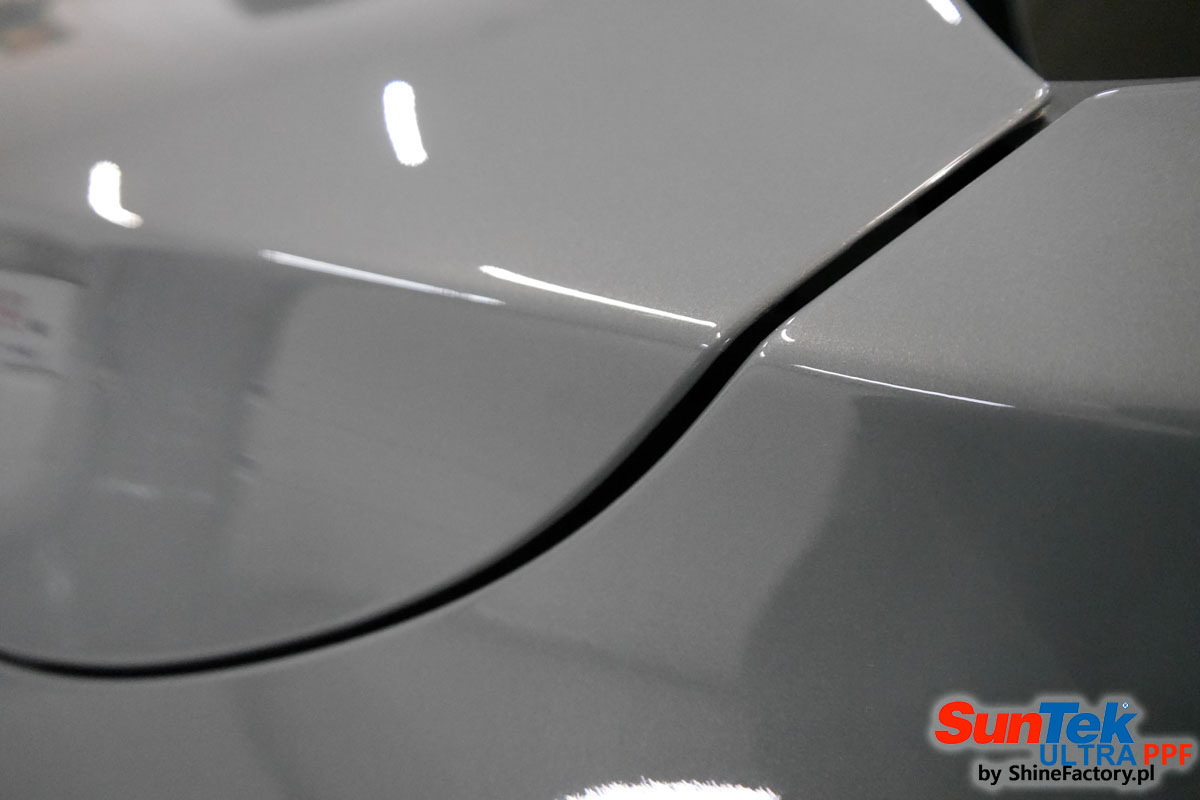Oklejone zostało praktycznie całe auto w celu ochrony przed wszelkimi uszkodzeniami jak np. odpryski od kamieni, piaskowanie od żwiru drogowego, mocniejszymi rysami, obiciami czy nawet drobnymi obcierkami parkingowymi.