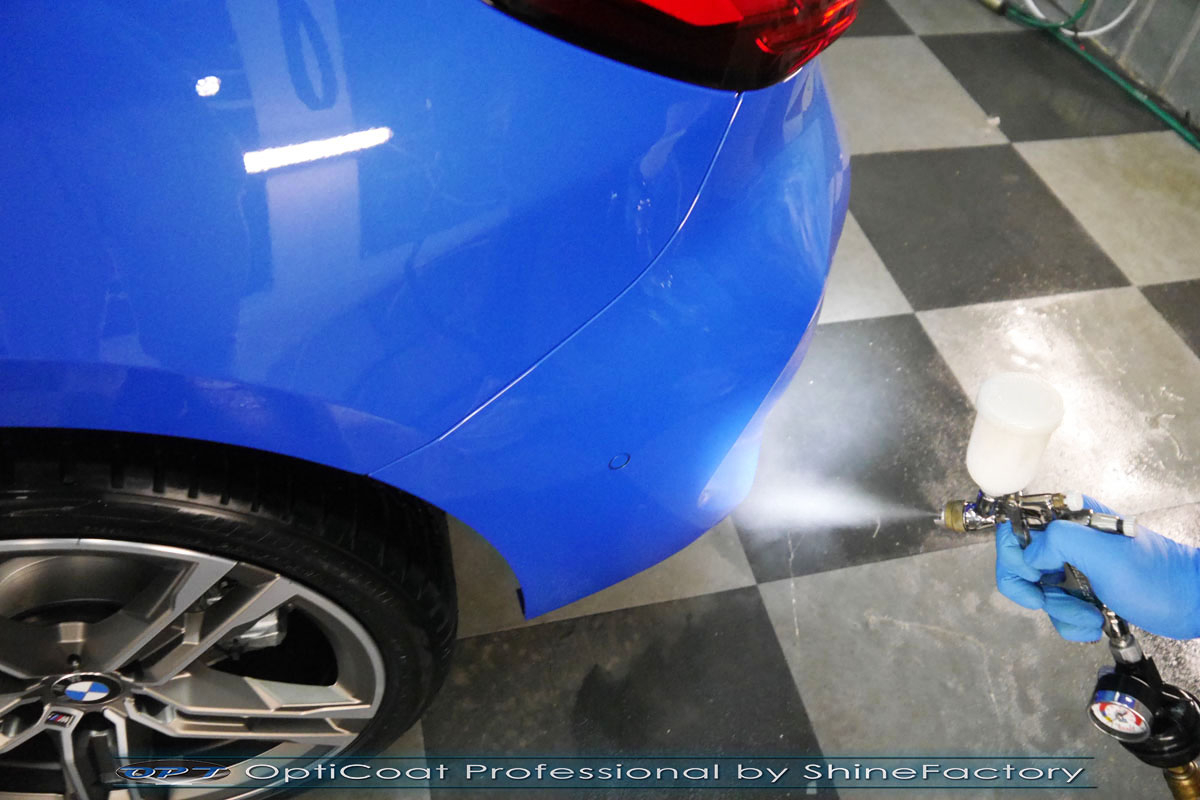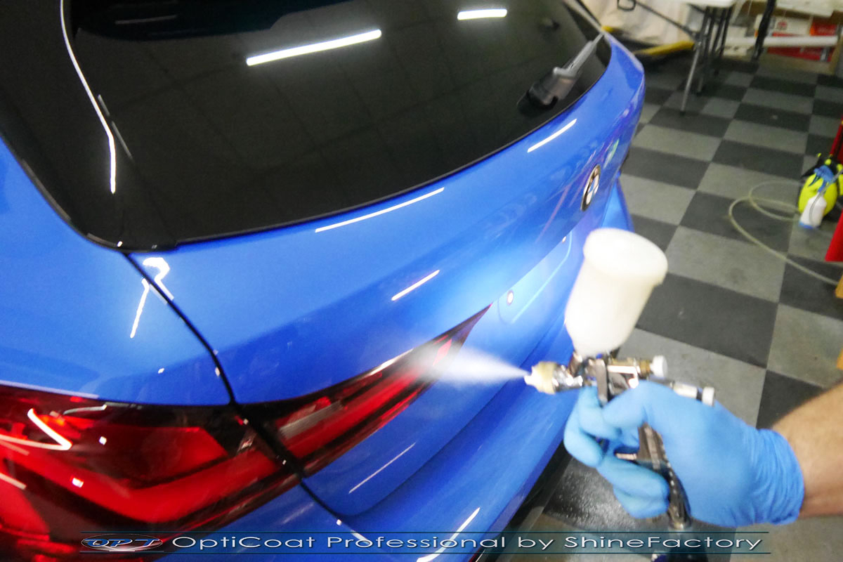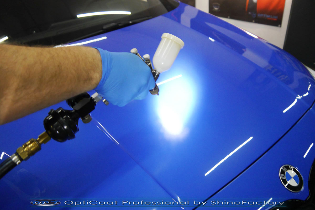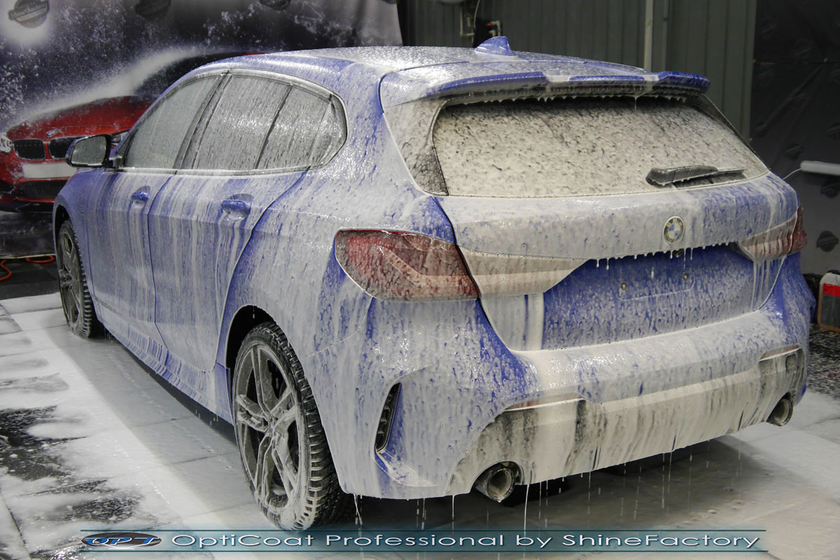 Zapraszamy Państwa do fotorelacji z zabezpieczenia nadwozia pakietem powłok ceramicznych oraz bezbarwnymi foliami ochronnymi PPF. Prace nad BMW rozpoczęliśmy od dokładnego oczyszczenia i odtłuszczenia, następnie lakier przeszedł delikatną korektę w celu usunięcia po salonowych niedoskonałości. Po tych czynnościach przeszliśmy do aplikacji folii ochronnych na boki auta aby właściciel nie martwił się typowo miejskimi uszkodzeniami jak obicia i otarcia na parkingach. Następnie zaaplikowaliśmy pakiet ceramicznych powłok na wszelkie elementy jak lakier, folie, szyby (bezapelacyjnie najlepszą powłoką Gtechniq G1), felgi (pancerny CQ DLUX), detale itp itd. Najważniejsze, na sam lakier zaaplikowaliśmy maksymalnie grubą natryskową warstwę kompozytu ceramicznego (100% powłoki na aucie) opartego na SiC- OptiCoat Professional połączoną z powłoką GlossCoat, która zapewni ochronę, zminimalizowane brudzenie oraz ułatwione do maksimum mycie.