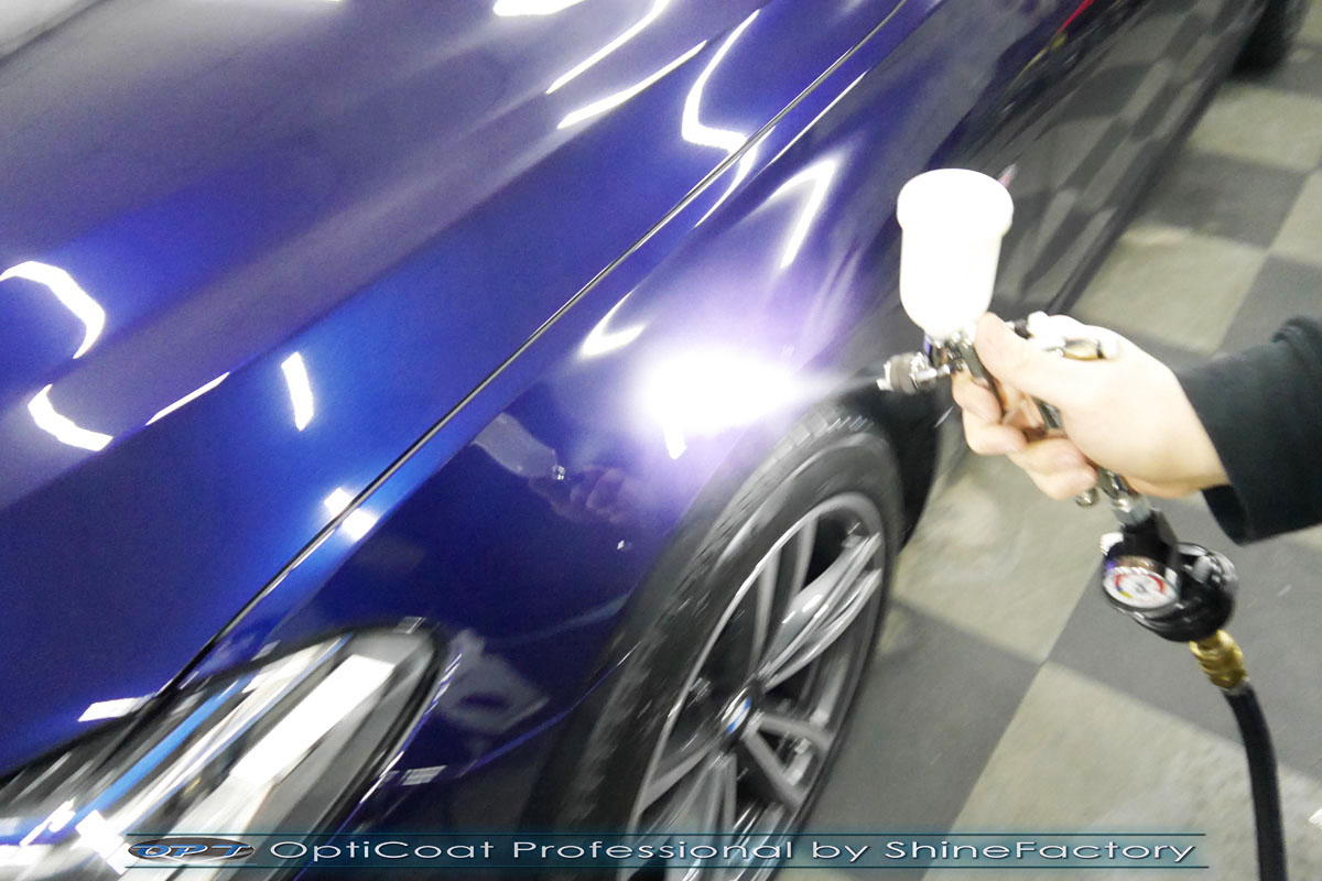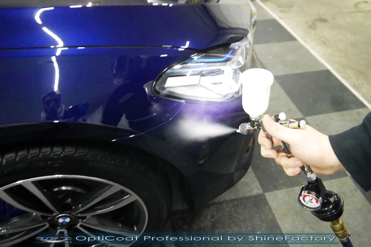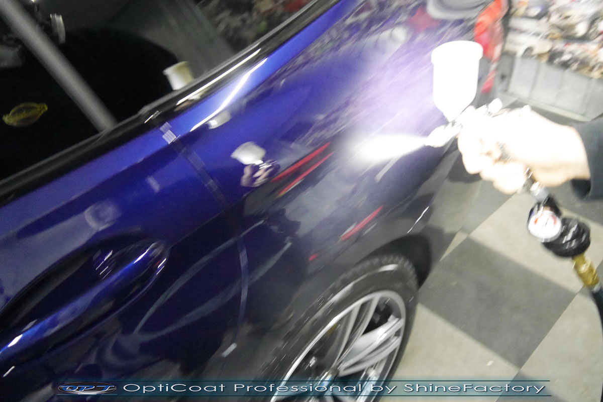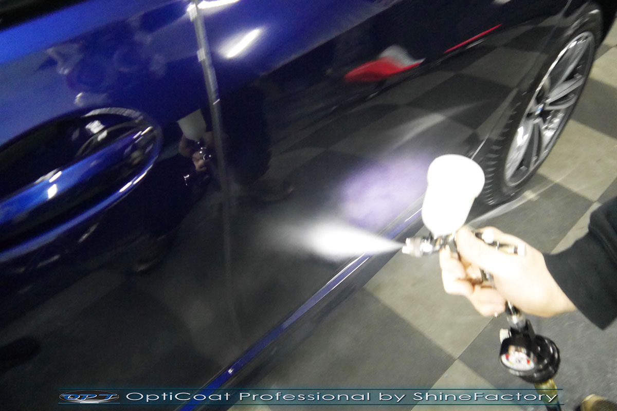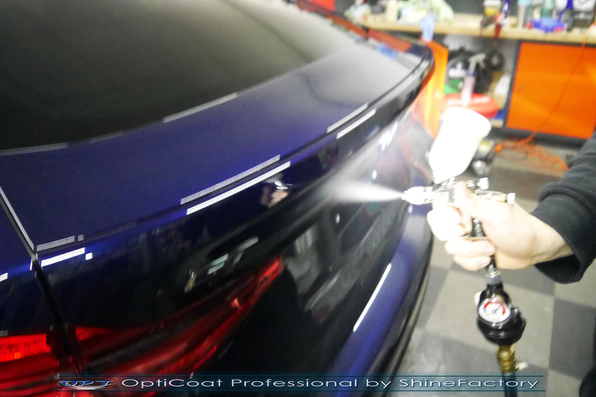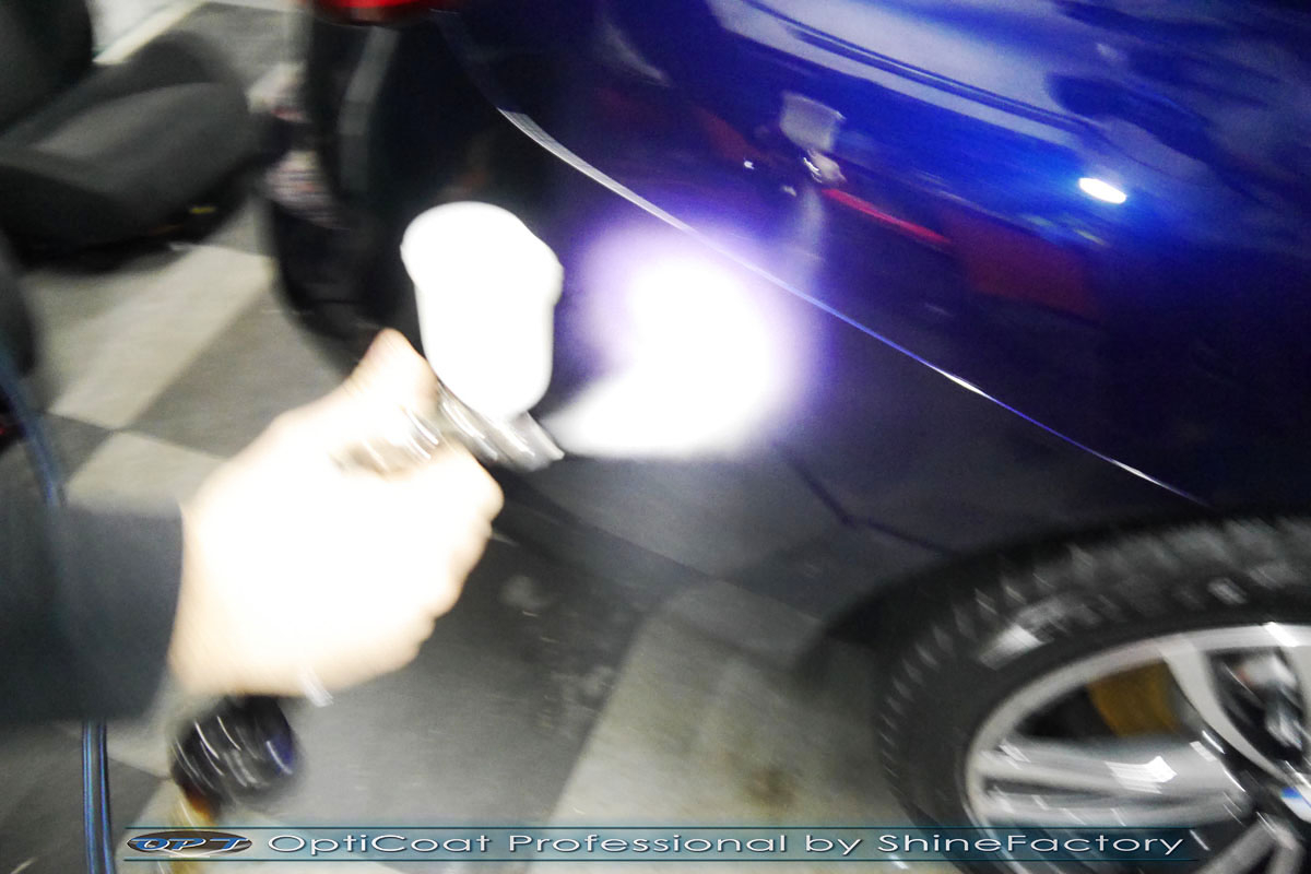 Zapraszamy Państwa do fotorelacji z naszego najczęściej wykonywanego pakietu prac czyli zabezpieczenia nadwozia pakietem powłok ceramicznych. BMW, które zostało nam oddane prosto po wyjeździe z salonu przeszło pakiet prac dla nowego auta. Prace nad nadwoziem rozpoczęliśmy od dokładnego oczyszczenia i odtłuszczenia, następnie lakier przeszedł delikatną korektę w celu usunięcia po salonowych niedoskonałości. Po tych czynnościach przeszliśmy do aplikacji powłok na wszelkie elementy jak lakier, szyby (bezapelacyjnie najlepszą powłoką Gtechniq G1), felgi (pancerny CQ DLUX), detale itp itd. Najważniejsze, na sam lakier zaaplikowaliśmy maksymalnie grubą natryskową warstwę kompozytu ceramicznego (100% powłoki na aucie) opartego na SiC- OptiCoat Professional połączoną z powłoką GlossCoat, która zapewni ochronę, zminimalizowane brudzenie oraz ułatwione do maksimum mycie.