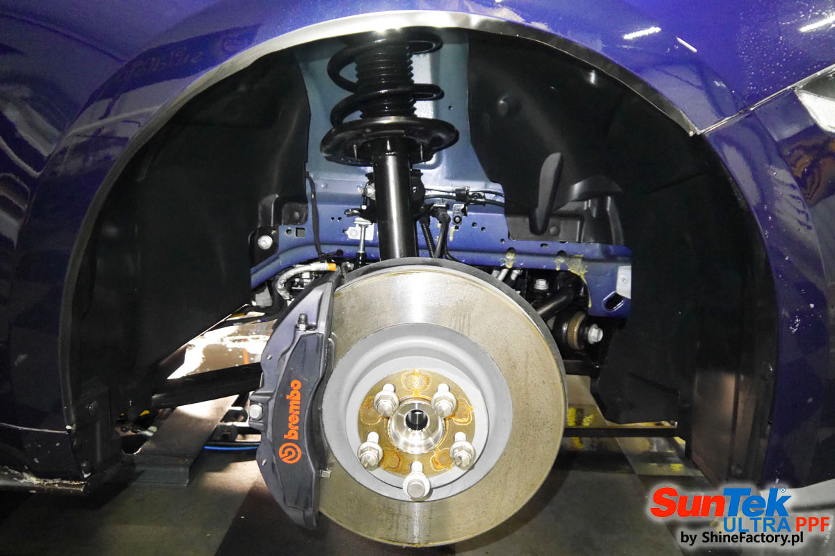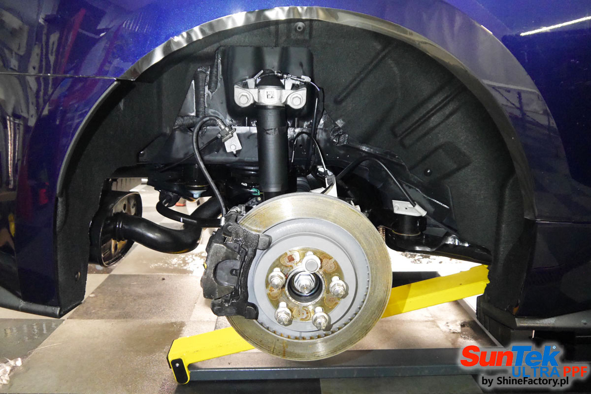 Oklejone zostało całe auto w celu ochrony przed wszelkimi uszkodzeniami jak np. odpryski od kamieni, piaskowanie od żwiru drogowego, mocniejszymi rysami, obiciami czy nawet drobnymi obcierkami parkingowymi. Dokładnie oklejone zostały: