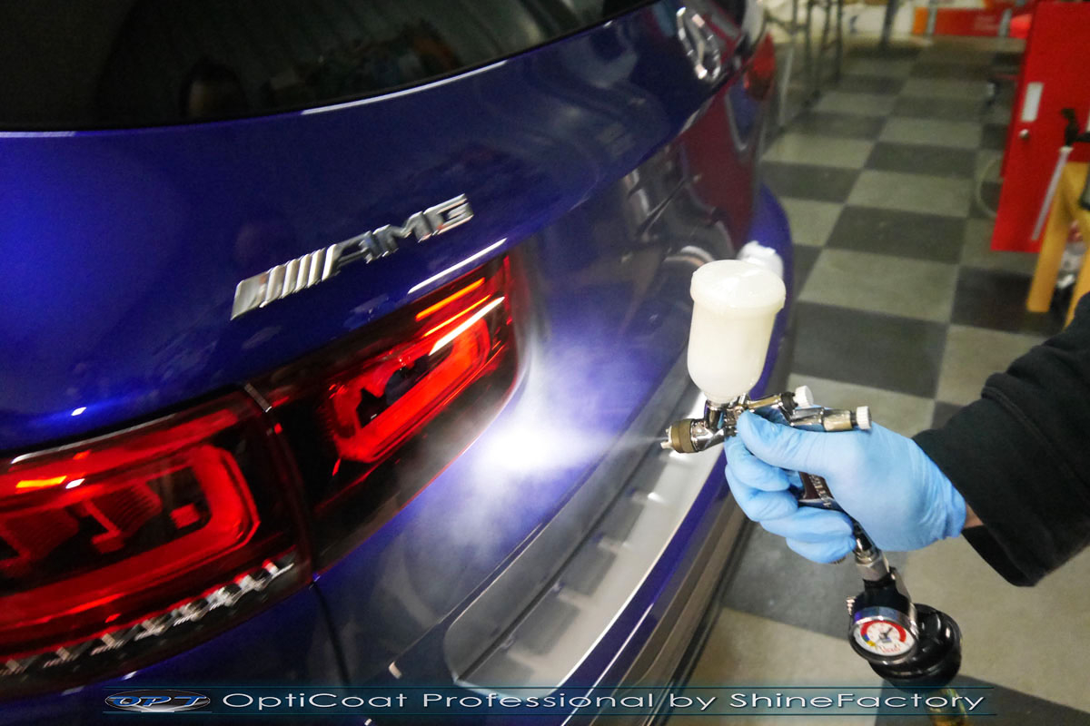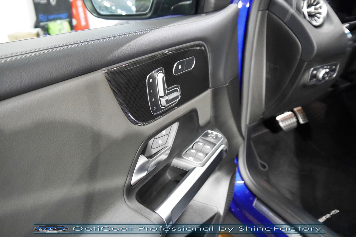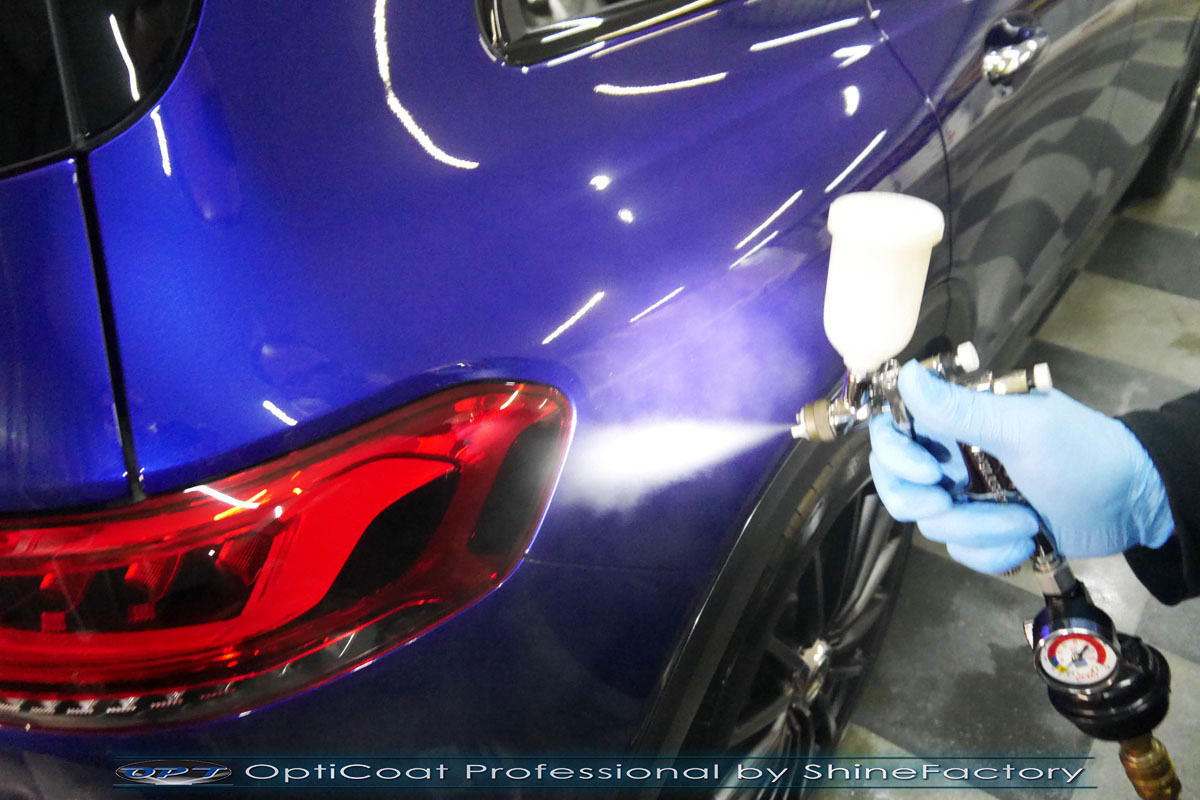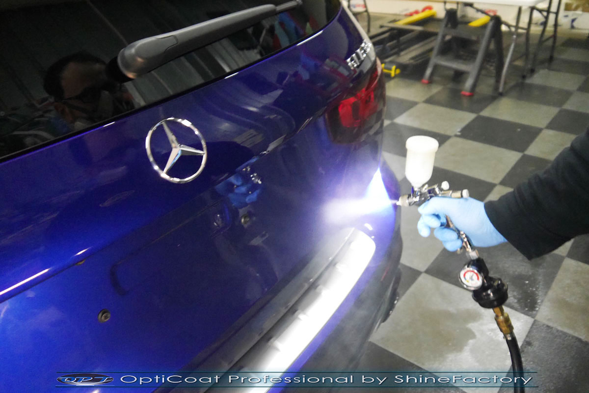 Połączenie bezbarwnych samo-regeneracyjnych folii oraz powłok ceramicznych staje się powoli standardem w idealnym zabezpieczeniu nowego auta. Tym razem mieliśmy przyjemność zająć się nowym Mercedesem GLB. Auto zostało przez nas maksymalnie zabezpieczone przed wszystkimi możliwymi uszkodzeniami. Wykorzystane do tego zostały najlepsze na rynku bezbarwne folie ochronne SunTek Ultra PPF oraz natryskowa ceramika OptiCoat PRO. Oczywiście prace rozpoczęliśmy od dokładnego oczyszczenia całego nadwozia z naleciałości oraz delikatnej korekty lakieru w celu usunięcia potransporotwych i posalonowych niedoskonałości. Następnie przystąpiliśmy do aplikacji bezbarwnych folii ochronnych na najbardziej narażone na mocne uszkodzenia el. auta, oczywiście zdecydowaliśmy się jak zawsze wybrać produkt bezkonkurencyjny i nowoczesny na rynku, czyli folie regeneracyjne SunTek Ultra PPF. Po aplikacji folii przeszliśmy do zabezpieczania wszelkich el. auta powłokami, zaaplikowaliśmy w natryskowy sposób grubą warstwę powłoki 9H+ Optimum OptiCoat Professional potwierdzoną testami TUV, pokrywając ją dla maksymalnego efektu wizualnego powłoką GlossCoat, która na końcu została utwardzona w odpowiedniej temp. lampami IR. Oczywiście zajęliśmy się, także zabezpieczeniem pakietem powłok wszelkich innych elementów jak szyby (Gtechniq G1), felgi (DLUX), lampy czy elementy nielakierowane, a także całe wnętrze wraz z zaimpregnowaniem delikatnych skór. Po kilkudziesięciu godzinach pracy Mercedes nabrał perfekcyjnego wyglądu, połysku oraz co najważniejsze najmocniejszej praktycznie pancernej ochrony na lata. Zapraszamy do szerokiej fotorelacji! Oklejone zostały przednie elementy auta głównie w celu ochrony przed mocnymi mechanicznymi uszkodzeniami jak np. odpryski od kamieni, piaskowanie od żwiru drogowego, mocniejszymi rysami, obiciami czy nawet drobnymi obcierkami parkingowymi.