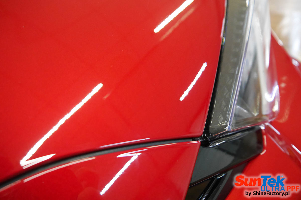 Zabezpieczenie frontów aut bezbarwnymi foliami ochronnymi staje się powoli standardem, coraz częściej także zabezpieczane w ten sposób są auta w całości co daje do tego czasu nieosiągalne perfekcyjne zabezpieczenie i efekt wizualny. Tym razem mieliśmy przyjemność zająć się nową Toyota Yaris naszego stałego klienta. Decyzja wz. z zabezpieczeniem padła na bezkompromisowe połączanie znakomitych bezbarwnych folii ochronnych SunTek Ultra PPF z 10 letnią gwarancją oraz pakietu powłok ceramicznych. Standardowo prace zaczęliśmy od bardzo dokładnego oczyszczenia nadwozia z wszelkich naleciałości. Kolejno zajęliśmy się inspekcją lakieru i skorygowaniem oraz doprowadzeniem go do możliwej perfekcji z defektów posalonowych / potransportowych. Po przygotowaniu przeszliśmy do zabezpieczenia każdego cm auta, najpierw aplikując bezbarwne folie ochronne. Folie zazwyczaj aplikuje się na najbardziej narażone el. auta jak przód, tym razem zdecydowaliśmy się praktycznie całe auto pokryć najlepszymi na świecie regeneracyjnymi foliami SunTek Ultra aby uzyskać 100% ochronę lakieru, który będzie całkowicie izolowany od środowiska zewnętrznego i nic nie będzie wstanie go uszkodzić. Po aplikacji folii przeszliśmy do zabezpieczania wszelkich el. auta powłokami, zaaplikowaliśmy pakiet powłok na całe auto, folie, szyby (Gtechniq G1), felgi (DLUX), elementy nielakierowane, a także całe wnętrze wraz z zaimpregnowaniem delikatnych skór. Po kilkudziesięciu godzinach pracy Toyota nabrała perfekcyjnego wyglądu, połysku oraz co najważniejsze najmocniejszej praktycznie pancernej ochrony na lata. Zapraszamy do szerokiej fotorelacji!
