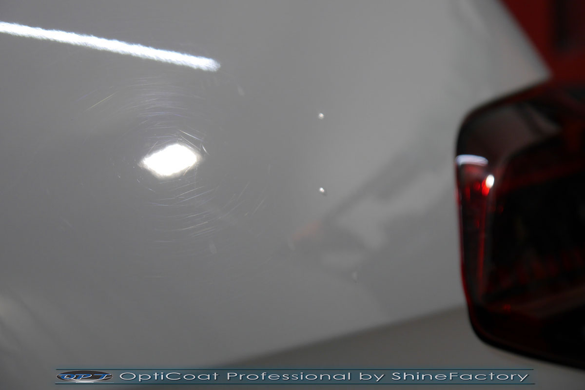 Połączenie bezbarwnych samo-regeneracyjnych folii oraz powłok ceramicznych staje się powoli standardem w idealnym zabezpieczeniu auta. Tym razem mieliśmy przyjemność zająć się używanym VW Golf'em. Auto trafiło do nas w celu odświeżenia i zabezpieczenia pakietem powłok ceramicznych aby przywrócić idealny wygląd lakieru oraz zabezpieczyć go na przyszłe lata użytkowania. Decyzja wz. z zabezpieczeniem padła oczywiście na połączanie znakomitych bezbarwnych folii ochronnych SunTek Ultra PPF z 10 letnią gwarancją oraz pakietu powłok ceramicznych. Auto zostało przez nas maksymalnie zabezpieczone przed wszystkimi możliwymi uszkodzeniami. Wykorzystane do tego zostały najlepsze na rynku bezbarwne folie ochronne SunTek Ultra PPF oraz natryskowa ceramika OptiCoat PRO. Oczywiście prace rozpoczęliśmy od dokładnego oczyszczenia całego nadwozia z naleciałości oraz korekty i polerowania zniszczonego lakieru. Następnie przystąpiliśmy do aplikacji bezbarwnych folii ochronnych na najbardziej narażone na mocne uszkodzenia el. auta, oczywiście zdecydowaliśmy się jak zawsze wybrać produkt bezkonkurencyjny i nowoczesny na rynku, czyli folie regeneracyjne SunTek Ultra PPF. Po aplikacji folii przeszliśmy do zabezpieczania wszelkich el. auta powłokami, zaaplikowaliśmy w natryskowy sposób grubą warstwę powłoki 9H+ Optimum OptiCoat Professional potwierdzoną testami TUV, pokrywając ją dla maksymalnego efektu wizualnego powłoką GlossCoat, która na końcu została utwardzona w odpowiedniej temp. lampami IR. Oczywiście zajęliśmy się, także zabezpieczeniem pakietem powłok wszelkich innych elementów jak szyby (Gtechniq G1), felgi (DLUX), lampy czy elementy nielakierowane. Po kilkudziesięciu godzinach pracy VW nabrał perfekcyjnego wyglądu, połysku oraz co najważniejsze najmocniejszej praktycznie pancernej ochrony na lata. Zapraszamy do szerokiej fotorelacji!