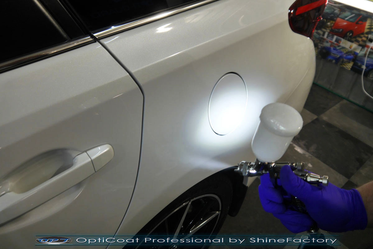 Połączenie bezbarwnych samo-regeneracyjnych folii oraz powłok ceramicznych staje się powoli standardem w idealnym zabezpieczeniu auta. Tym razem mieliśmy przyjemność zająć się używaną Toyota Auris. Auto trafiło do nas w celu odświeżenia i zabezpieczenia pakietem powłok ceramicznych aby przywrócić idealny wygląd lakieru oraz zabezpieczyć go na przyszłe lata użytkowania. Decyzja wz. z zabezpieczeniem padła oczywiście na połączanie znakomitych bezbarwnych folii ochronnych SunTek Ultra PPF z 10 letnią gwarancją oraz pakietu powłok ceramicznych. Auto zostało przez nas maksymalnie zabezpieczone przed wszystkimi możliwymi uszkodzeniami. Wykorzystane do tego zostały najlepsze na rynku bezbarwne folie ochronne SunTek Ultra PPF oraz natryskowa ceramika OptiCoat PRO. Oczywiście prace rozpoczęliśmy od dokładnego oczyszczenia całego nadwozia z naleciałości oraz korekty i polerowania zniszczonego lakieru. Następnie przystąpiliśmy do aplikacji bezbarwnych folii ochronnych na najbardziej narażone na mocne uszkodzenia el. auta, oczywiście zdecydowaliśmy się jak zawsze wybrać produkt bezkonkurencyjny i nowoczesny na rynku, czyli folie regeneracyjne SunTek Ultra PPF. Po aplikacji folii przeszliśmy do zabezpieczania wszelkich el. auta powłokami, zaaplikowaliśmy w natryskowy sposób grubą warstwę powłoki 9H+ Optimum OptiCoat Professional potwierdzoną testami TUV, pokrywając ją dla maksymalnego efektu wizualnego powłoką GlossCoat, która na końcu została utwardzona w odpowiedniej temp. lampami IR. Oczywiście zajęliśmy się, także zabezpieczeniem pakietem powłok wszelkich innych elementów jak szyby (Gtechniq G1), felgi (DLUX), lampy czy elementy nielakierowane. Po kilkudziesięciu godzinach pracy Toyota nabrała perfekcyjnego wyglądu, połysku oraz co najważniejsze najmocniejszej praktycznie pancernej ochrony na lata.