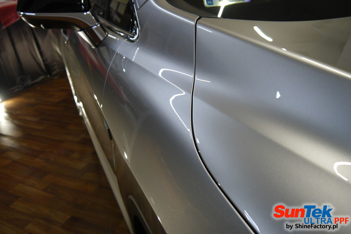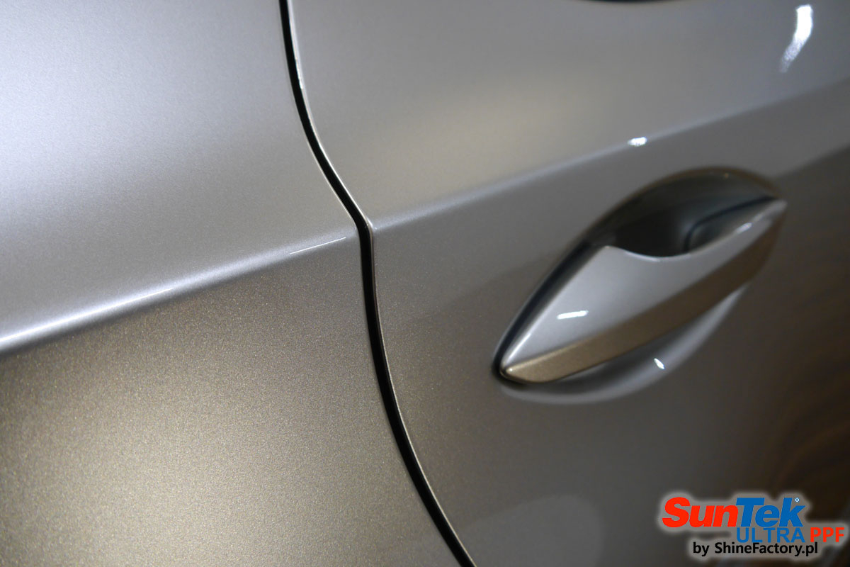Oklejone zostało praktycznie całe auto w celu ochrony przed wszelkimi uszkodzeniami jak np. odpryski od kamieni, piaskowanie od żwiru drogowego, mocniejszymi rysami, obiciami czy nawet drobnymi obcierkami parkingowymi.