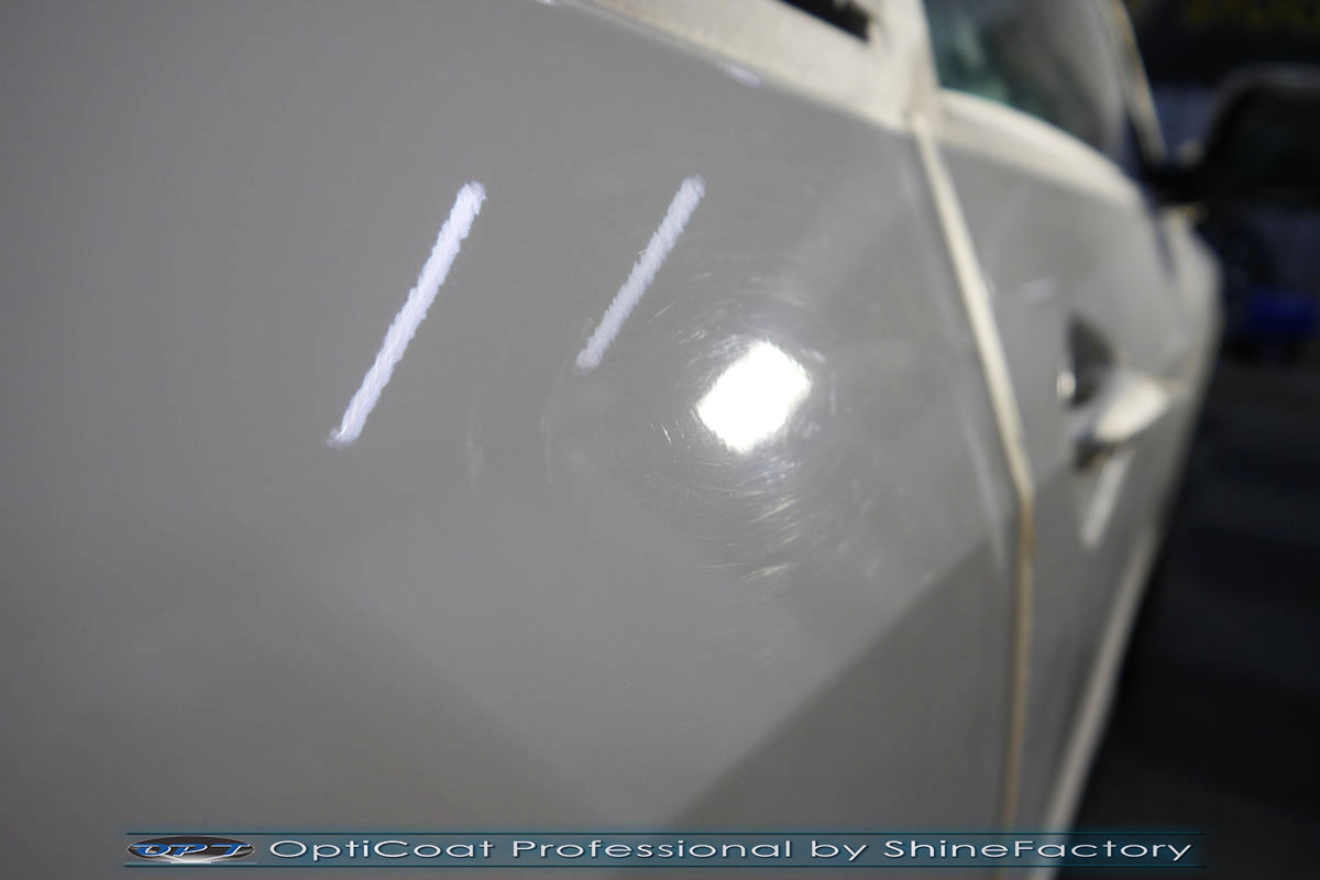Witamy. Tym razem chcemy przedstawić fotorelację z prac nad używaną genialną Honda Civic w najostrzejszej wersji TypeR! Auto trafiło do nas w celu odświeżenia po kilku latach użytkowania. Naszym zadaniem było odświeżenie oraz pokrycie powłoką ceramiczną aby przywrócić idealny wygląd oraz zabezpieczyć lakier na przyszłe lata użytkowania. Zaczęliśmy od oczyszczenia kół oraz dogłębnego oczyszczenia nadwozia. Następnie przystąpiliśmy do najbardziej czasochłonnego i najważniejszego etapu prac czyli polerowania zniszczonego lakieru. Po kilku dniach prac Honda była gotowa do zabezpieczania powłoką ceramiczną. Finalnie zdecydowaliśmy się zabezpieczyć każdy element (lakier, felgi, szyby itp) najlepszymi powłokami ceramicznymi/kwarcowymi z rynku, sam lakier testowaną w laboratoryjny sposób przez TUV powłoką ceramiczną OptiCoat Professional/GlossCoat w innowacyjny natryskowy sposób co zapewnia maksymalny połysk i grubą ochronę lakieru na bardzo długi czas. Finalnie pakiet powłok został wygrzany w odpowiedniej temperaturze lampami IR. Nie zapomnieliśmy także zająć się całym wnętrzem, materiały zostały wyprane, skóry i plastiki wyczyszczone i zaimpregnowane, dzięki temu wyglądało ponownie jak nowe. Dzięki detailingowi oraz finalnemu pokryciu ceramiką auto odmieniło się nie do poznania oraz przez długi czas będzie cieszyło oko idealną prezentacją lakieru i maksymalnym blaskiem. Zapraszamy do szerokiej fotorelacji i zdjęć efektu końcowego!
