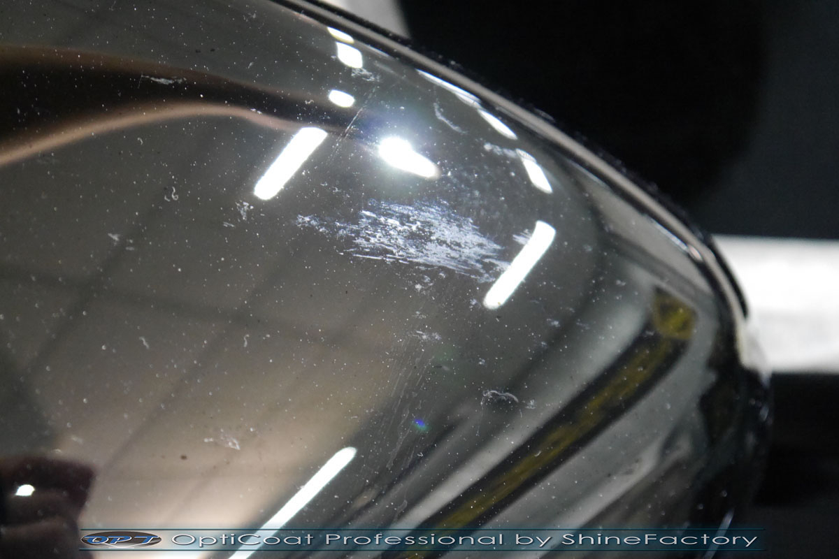 Połączenie bezbarwnych samo-regeneracyjnych folii oraz powłok ceramicznych staje się powoli standardem w idealnym zabezpieczeniu nowego auta. Tym razem mieliśmy przyjemność zająć się KIA Stinger z niewielkim przebiegiem. Auto zostało przez nas maksymalnie zabezpieczone przed wszystkimi możliwymi uszkodzeniami. Wykorzystane do tego zostały najlepsze na rynku bezbarwne folie ochronne SunTek Ultra PPF oraz natryskowa ceramika OptiCoat PRO. Oczywiście prace rozpoczęliśmy od dokładnego oczyszczenia całego nadwozia z naleciałości oraz już dość mocnej korekty lakieru (wżery po owadach na przodzie oraz miejscowe zmatowienia całego auta). Następnie przystąpiliśmy do aplikacji bezbarwnych folii ochronnych na najbardziej narażone na mocne uszkodzenia el. auta, oczywiście zdecydowaliśmy się jak zawsze wybrać produkt bezkonkurencyjny i nowoczesny na rynku, czyli folie regeneracyjne SunTek Ultra PPF. Po aplikacji folii przeszliśmy do zabezpieczania wszelkich el. auta powłokami, zaaplikowaliśmy w natryskowy sposób grubą warstwę powłoki 9H+ Optimum OptiCoat Professional potwierdzoną testami TUV, pokrywając ją dla maksymalnego efektu wizualnego powłoką GlossCoat, która na końcu została utwardzona w odpowiedniej temp. lampami IR. Oczywiście zajęliśmy się, także zabezpieczeniem pakietem powłok wszelkich innych elementów jak szyby (Gtechniq G1), felgi (DLUX), lampy czy elementy nielakierowane, a także całe wnętrze wraz z zaimpregnowaniem delikatnych skór. Po kilkudziesięciu godzinach pracy KIA nabrała perfekcyjnego wyglądu, połysku oraz co najważniejsze najmocniejszej praktycznie pancernej ochrony na lata. Zapraszamy do szerokiej fotorelacji! Oklejone zostały elementy auta głównie w celu ochrony przed mocnymi mechanicznymi uszkodzeniami jak np. odpryski od kamieni, piaskowanie od żwiru drogowego, mocniejszymi rysami, obiciami czy nawet drobnymi obcierkami parkingowymi.