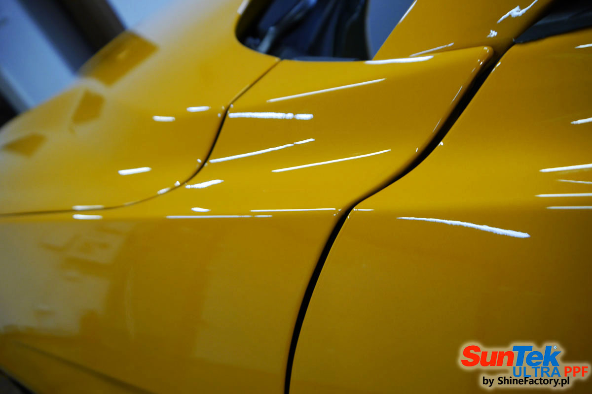 Oklejone zostało całe auto w celu ochrony przed wszelkimi uszkodzeniami jak np. odpryski od kamieni, piaskowanie od żwiru drogowego, mocniejszymi rysami, obiciami czy nawet drobnymi obcierkami parkingowymi. Dokładnie oklejone zostały:
