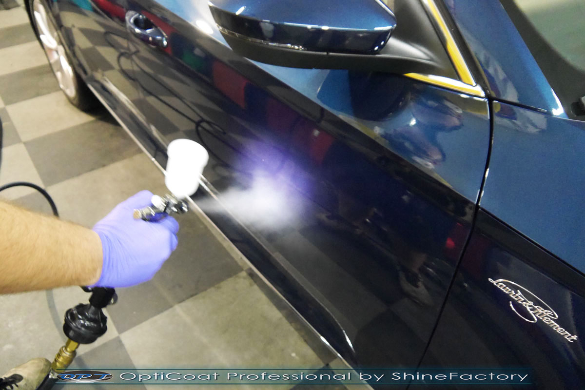 Połączenie bezbarwnych samo-regeneracyjnych folii oraz powłok ceramicznych staje się powoli standardem w idealnym zabezpieczeniu nowego auta. Tym razem mieliśmy przyjemność zająć się Skoda Superb z niewielkim przebiegiem. Auto zostało przez nas maksymalnie zabezpieczone przed wszystkimi możliwymi uszkodzeniami. Wykorzystane do tego zostały najlepsze na rynku bezbarwne folie ochronne SunTek Ultra PPF oraz natryskowa ceramika OptiCoat PRO. Oczywiście prace rozpoczęliśmy od dokładnego oczyszczenia całego nadwozia z naleciałości oraz delikatnej korekty lakieru w celu usunięcia powstałych już niedoskonałości lakieru. Następnie przystąpiliśmy do aplikacji bezbarwnych folii ochronnych na najbardziej narażone na mocne uszkodzenia el. auta, oczywiście zdecydowaliśmy się jak zawsze wybrać produkt bezkonkurencyjny i nowoczesny na rynku, czyli folie regeneracyjne SunTek Ultra PPF. Po aplikacji folii przeszliśmy do zabezpieczania wszelkich el. auta powłokami, zaaplikowaliśmy w natryskowy sposób grubą warstwę powłoki 9H+ Optimum OptiCoat Professional potwierdzoną testami TUV, pokrywając ją dla maksymalnego efektu wizualnego powłoką GlossCoat, która na końcu została utwardzona w odpowiedniej temp. lampami IR. Oczywiście zajęliśmy się, także zabezpieczeniem pakietem powłok wszelkich innych elementów jak szyby (Gtechniq G1), felgi (DLUX), lampy czy elementy nielakierowane, a także całe wnętrze wraz z zaimpregnowaniem delikatnych skór. Po kilkudziesięciu godzinach pracy Skoda nabrała perfekcyjnego wyglądu, połysku oraz co najważniejsze najmocniejszej praktycznie pancernej ochrony na lata. Zapraszamy do szerokiej fotorelacji! Oklejone zostały przednie elementy auta głównie w celu ochrony przed mocnymi mechanicznymi uszkodzeniami jak np. odpryski od kamieni, piaskowanie od żwiru drogowego, mocniejszymi rysami, obiciami czy nawet drobnymi obcierkami parkingowymi.