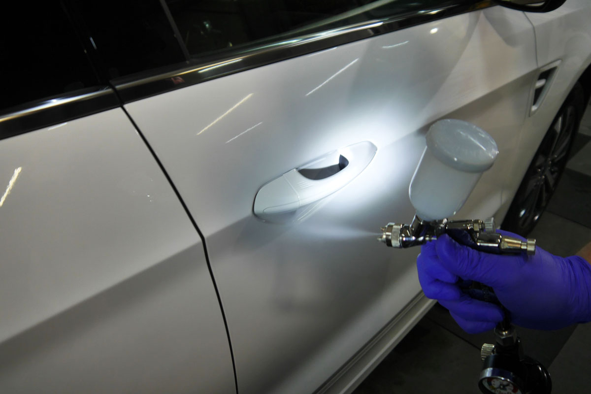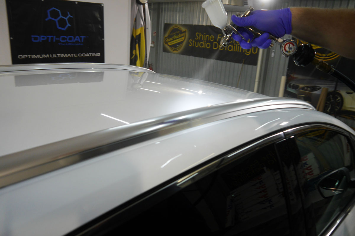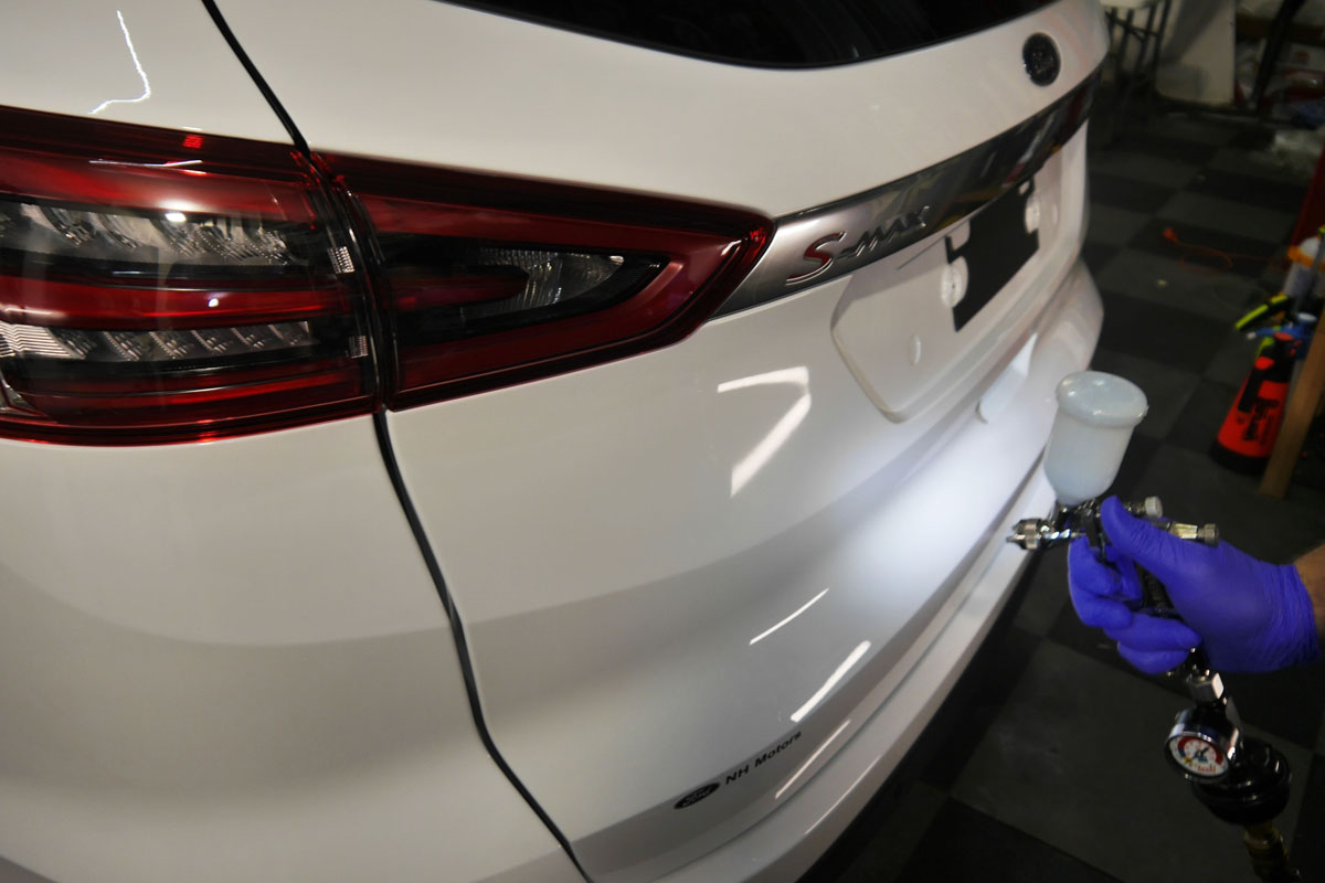 Połączenie bezbarwnych samo-regeneracyjnych folii oraz powłok ceramicznych staje się powoli standardem w idealnym zabezpieczeniu nowego auta. Tym razem mieliśmy przyjemność zająć się nowym Fordem S max. Auto zostało przez nas maksymalnie zabezpieczone przed wszystkimi możliwymi uszkodzeniami. Wykorzystane do tego zostały najlepsze na rynku bezbarwne folie ochronne SunTek Ultra PPF oraz natryskowa ceramika OptiCoat PRO. Oczywiście prace rozpoczęliśmy od dokładnego oczyszczenia całego nadwozia z naleciałości oraz delikatnej korekty lakieru w celu usunięcia potransporotwych i posalonowych niedoskonałości. Następnie przystąpiliśmy do aplikacji bezbarwnych folii ochronnych na najbardziej narażone na mocne uszkodzenia el. auta, oczywiście zdecydowaliśmy się jak zawsze wybrać produkt bezkonkurencyjny i nowoczesny na rynku, czyli folie regeneracyjne SunTek Ultra PPF. Po aplikacji folii przeszliśmy do zabezpieczania wszelkich el. auta powłokami, zaaplikowaliśmy w natryskowy sposób grubą warstwę powłoki 9H+ Optimum OptiCoat Professional potwierdzoną testami TUV, pokrywając ją dla maksymalnego efektu wizualnego powłoką GlossCoat, która na końcu została utwardzona w odpowiedniej temp. lampami IR. Oczywiście zajęliśmy się, także zabezpieczeniem pakietem powłok wszelkich innych elementów jak szyby (Gtechniq G1), felgi (DLUX), lampy czy elementy nielakierowane, a także całe wnętrze wraz z zaimpregnowaniem delikatnych skór. Po kilkudziesięciu godzinach pracy Ford nabrał perfekcyjnego wyglądu, połysku oraz co najważniejsze najmocniejszej praktycznie pancernej ochrony na lata. Zapraszamy do szerokiej fotorelacji! Oklejone zostały przednie elementy auta głównie w celu ochrony przed mocnymi mechanicznymi uszkodzeniami jak np. odpryski od kamieni, piaskowanie od żwiru drogowego, mocniejszymi rysami, obiciami czy nawet drobnymi obcierkami parkingowymi.