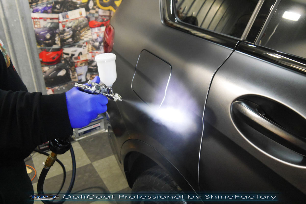 Witamy. Tym razem chcemy przedstawić fotorelację z prac nad salonowo nowym BMW X7, które trafiło do nas w celu zabezpieczenia delikatnego matowego lakieru pakietem powłok ceramicznych, szczególnie na zbliżające się coraz gorsze warunki atmosferyczne oraz sól na drogach. Prace nad nadwoziem rozpoczęliśmy od dokładnego oczyszczenia i odtłuszczenia. Po tych czynnościach przeszliśmy do aplikacji powłok na wszelkie elementy jak lakier, szyby (bezapelacyjnie najlepszą powłoką Gtechniq G1), felgi (pancerny CQ DLUX), detale itp itd. Najważniejsze, na sam lakier zaaplikowaliśmy maksymalnie grubą natryskową warstwę kompozytu ceramicznego (100% powłoki na aucie) opartego na SiC- OptiCoat Professional połączoną z powłoką GlossCoat, która zapewni ochronę, zminimalizowane brudzenie oraz ułatwione do maksimum mycie. Całe wnętrze zostało zaimpregnowane kosmetykami najwyższej ligi, z naciskiem na el. plastikowe, delikatne skóry i el. z alkantary. Dzięki detailingowi oraz finalnemu pokryciu ceramiką auto przez długi czas będzie cieszyło oko idealną prezentacją lakieru. Zapraszamy do szerokiej fotorelacji i zdjęć efektu końcowego!