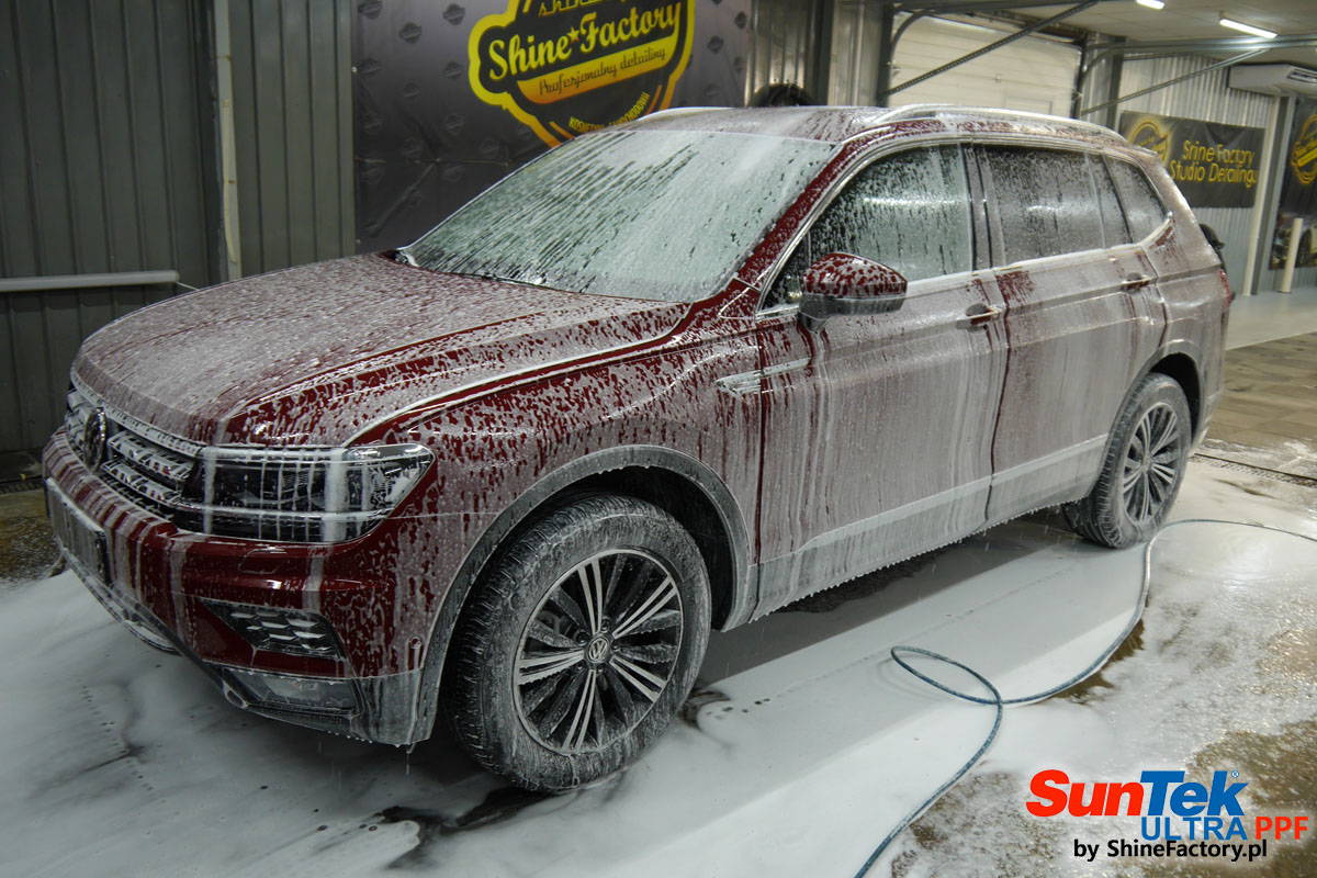 Oczywiście prace rozpoczęliśmy od dokładnego oczyszczenia całego nadwozia z naleciałości. Przeprowadziliśmy delikatną korektę i odtłuściliśmy planowane do oklejenia elementy auta. Następnie przystąpiliśmy do aplikacji bezbarwnych folii ochronnych na najbardziej narażone na mocne uszkodzenia el. auta, oczywiście zdecydowaliśmy się jak zawsze wybrać produkt bezkonkurencyjny i nowoczesny na rynku, czyli folie regeneracyjne SunTek Ultra PPF. Po kilkudziesięciu godzinach pracy VW nabrał perfekcyjnego wyglądu, połysku oraz co najważniejsze najmocniejszej praktycznie pancernej ochrony na lata. Zapraszamy do fotorelacji!