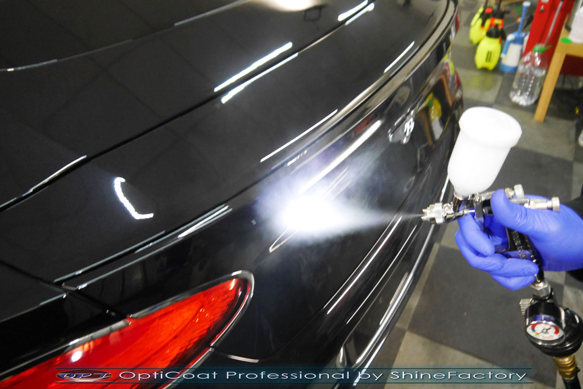 Połączenie bezbarwnych samo-regeneracyjnych folii oraz powłok ceramicznych staje się powoli standardem w idealnym zabezpieczeniu nowego auta. Tym razem mieliśmy przyjemność zająć się Bentley'em Continetal z niedużym przebiegiem. Auto zostało maksymalnie zabezpieczone przed wszystkimi możliwymi uszkodzeniami. Wykorzystane do tego zostały najlepsze na rynku bezbarwne folie ochronne oraz natryskowa ceramika OptiCoat PRO. Oczywiście prace rozpoczęliśmy od dokładnego oczyszczenia całego nadwozia z naleciałości oraz korekty lakieru w celu usunięcia niedoskonałości (takich jak zmatowienia, mikrorysy, wżery po ostrej chemii). Nie tylko cały front został zabezpieczony foliami. Pokryliśmy nią dodatkowo szybę czołową w celu ochrony przed opryskami od kamieni. Po polerowaniu na wszelkie el. auta zaaplikowaliśmy powłoki ceramiczne, na lakier zaaplikowaliśmy w natryskowy sposób grubą warstwę powłoki 9H+ Optimum OptiCoat Professional potwierdzoną testami TUV, pokrywając ją dla maksymalnego efektu wizualnego powłoką GlossCoat, która na końcu została utwardzona w odpowiedniej temp. lampami IR. Oczywiście zajęliśmy się, także zabezpieczeniem pakietem powłok wszelkich innych elementów jak szyby (Gtechniq G1), felgi (DLUX), lampy czy elementy nielakierowane, a także całe wnętrze wraz z zaimpregnowaniem delikatnych skór. Po kilkudziesięciu godzinach pracy Bentley nabrał perfekcyjnego wyglądu, połysku oraz co najważniejsze najmocniejszej praktycznie pancernej ochrony na lata. Zapraszamy do szerokiej fotorelacji! Oklejone zostały przednie elementy auta głównie w celu ochrony przed mocnymi mechanicznymi uszkodzeniami jak np. odpryski od kamieni, piaskowanie od żwiru drogowego, mocniejszymi rysami, obiciami czy nawet drobnymi obcierkami parkingowymi.